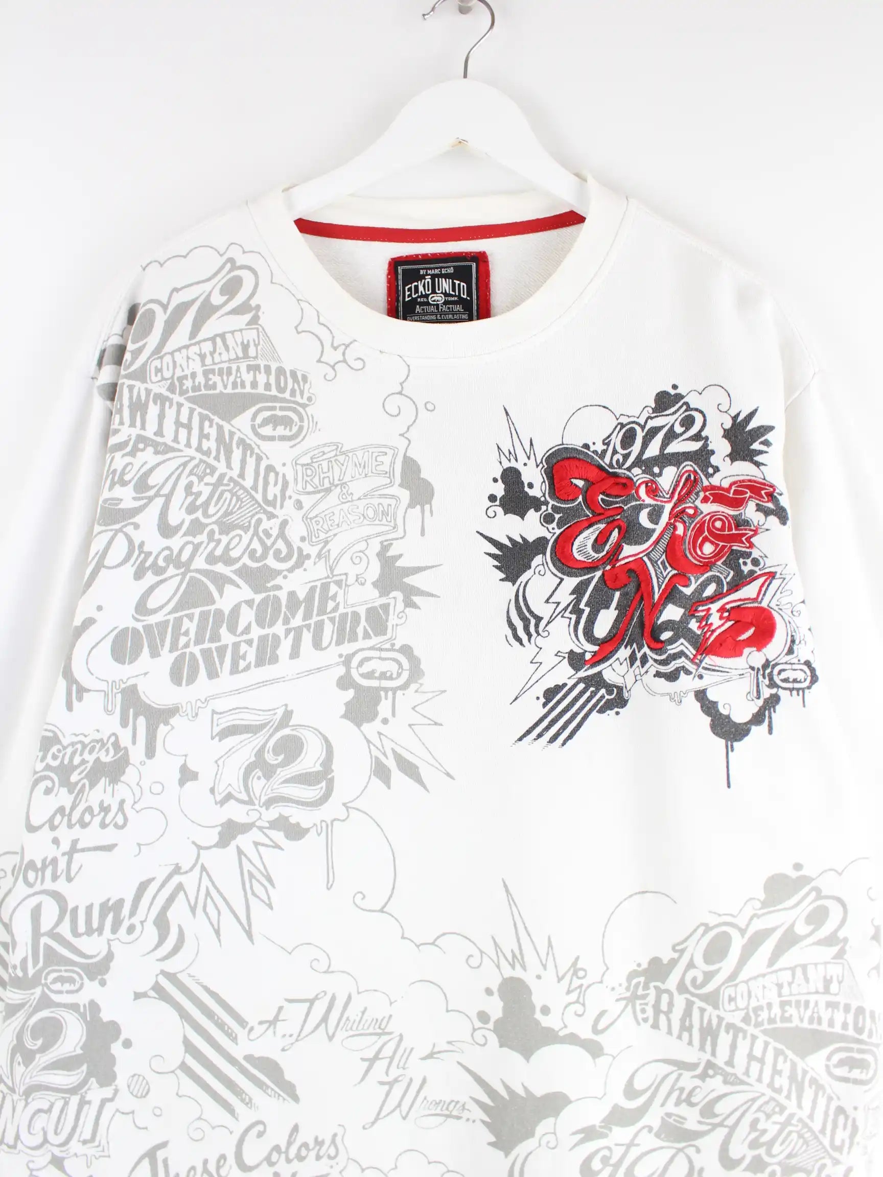 Weißer Sweater vom Brand Ecko in Größe XXL. Er ist aus einer Baumwollmischung gemacht und in gutem Zustand in Stock. Mit tollem undefined Print.