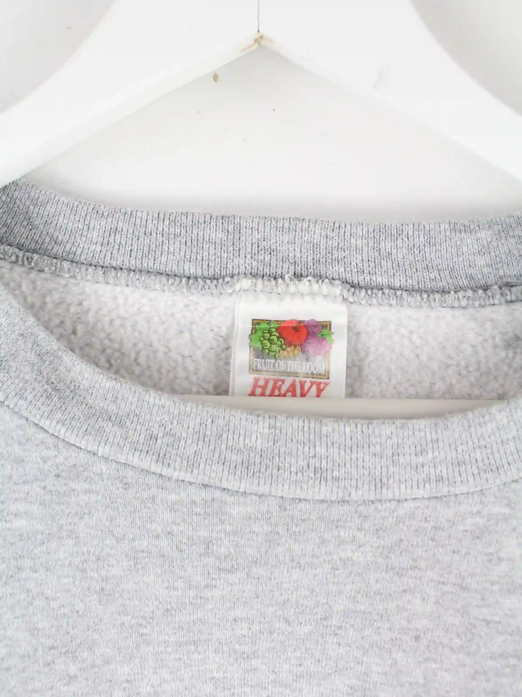 Sweater des Labels Fruit of the Loom mit gestickten Motiven in Größe XXL. Er ist aus einer Baumwollmischung hergestellt und in Grau bei uns vorrätig.