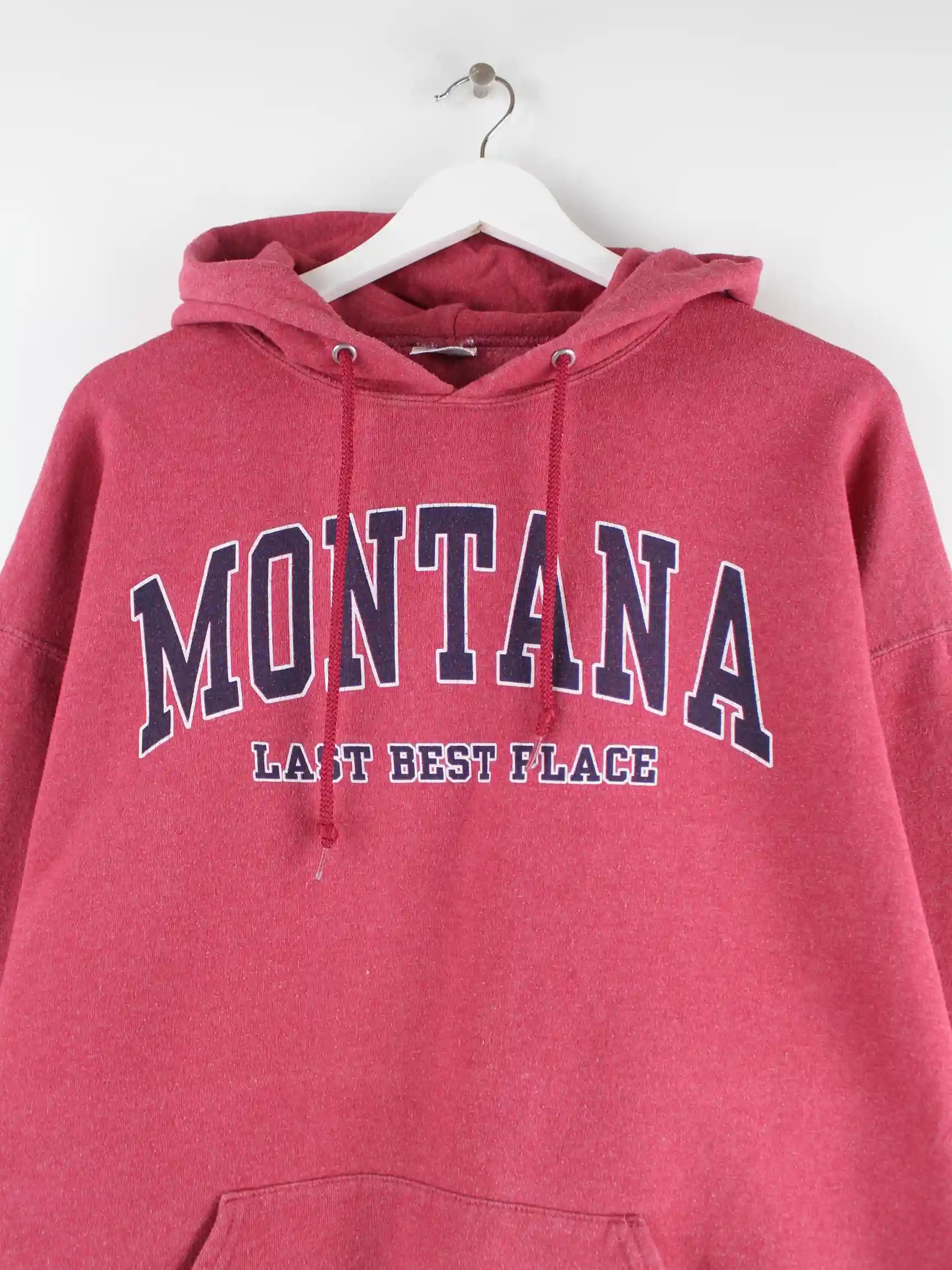 Roter Hoodie der Marke Jerzees in Größe XXL. Er ist aus einer Baumwollmischung gemacht und in gutem Zustand auf Lager. Mit tollem Mountain Print.