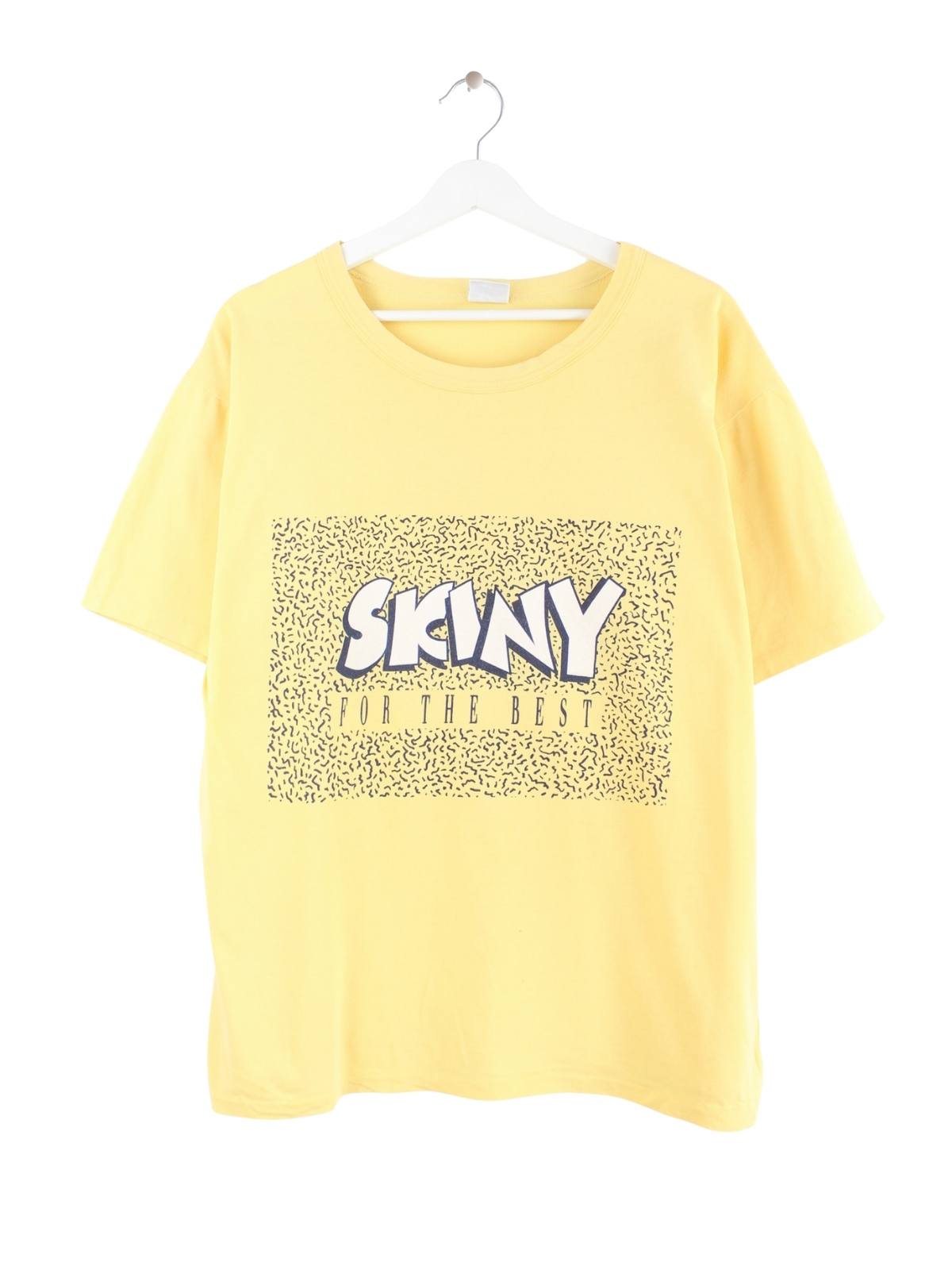 Vintage Damen 90s Skiny Print Single Stitch T-Shirt Gelb XL