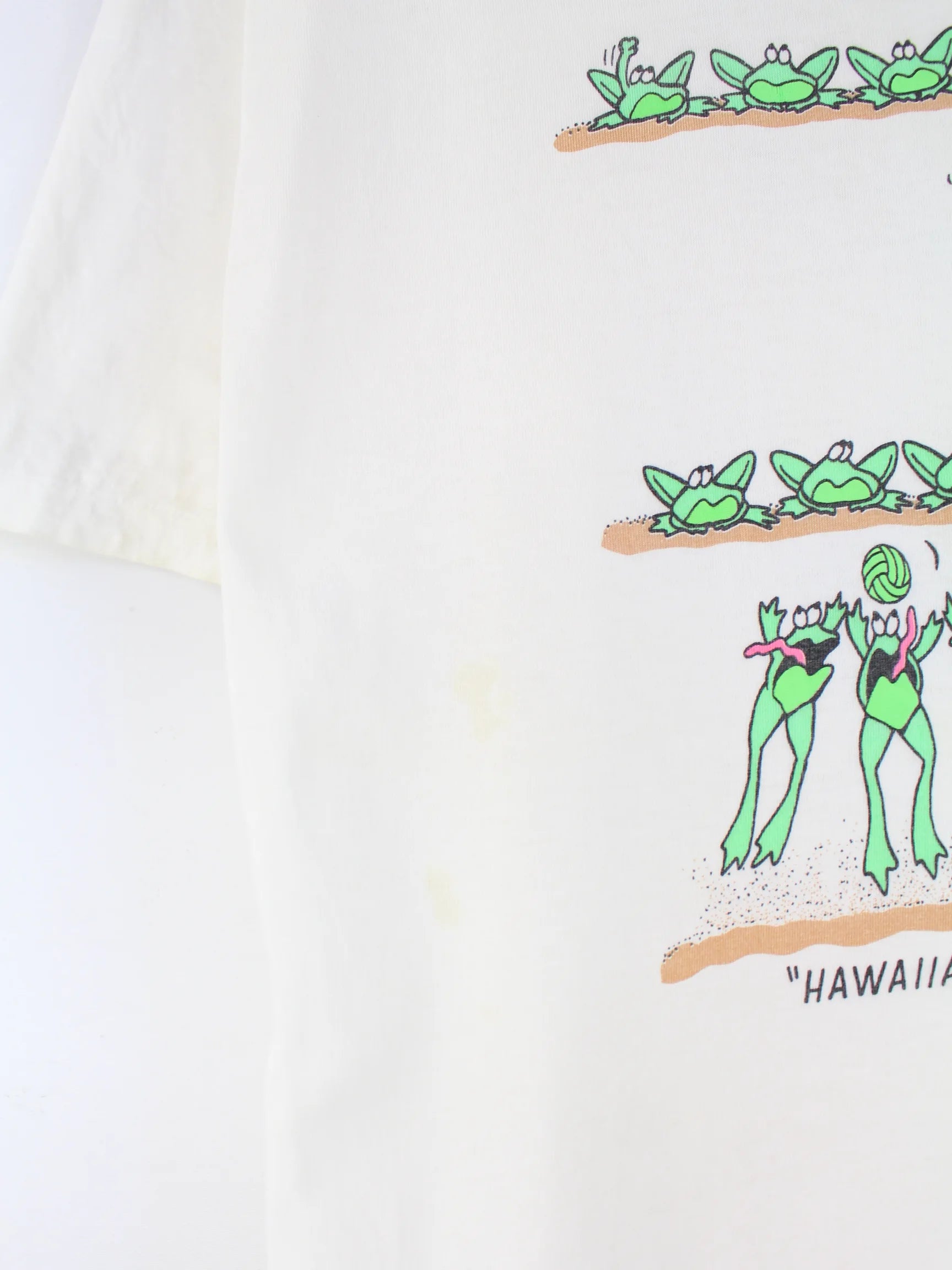 Vintage 90s Hawaiian Frog Print Single Stitch T-Shirt Beige XL