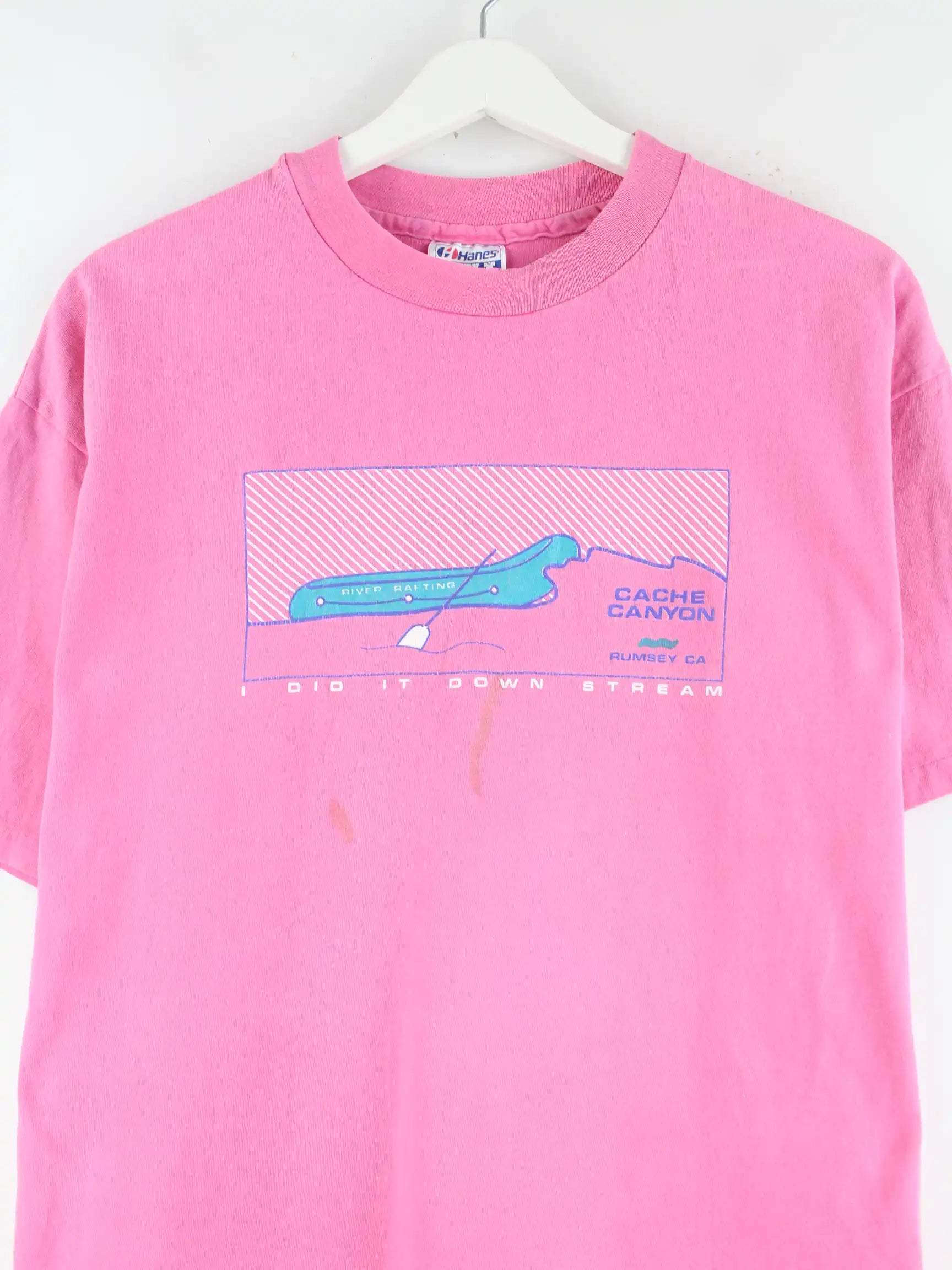 Hanes 90s Cache Canyon Print Single Stitch T-Shirt Pink XL