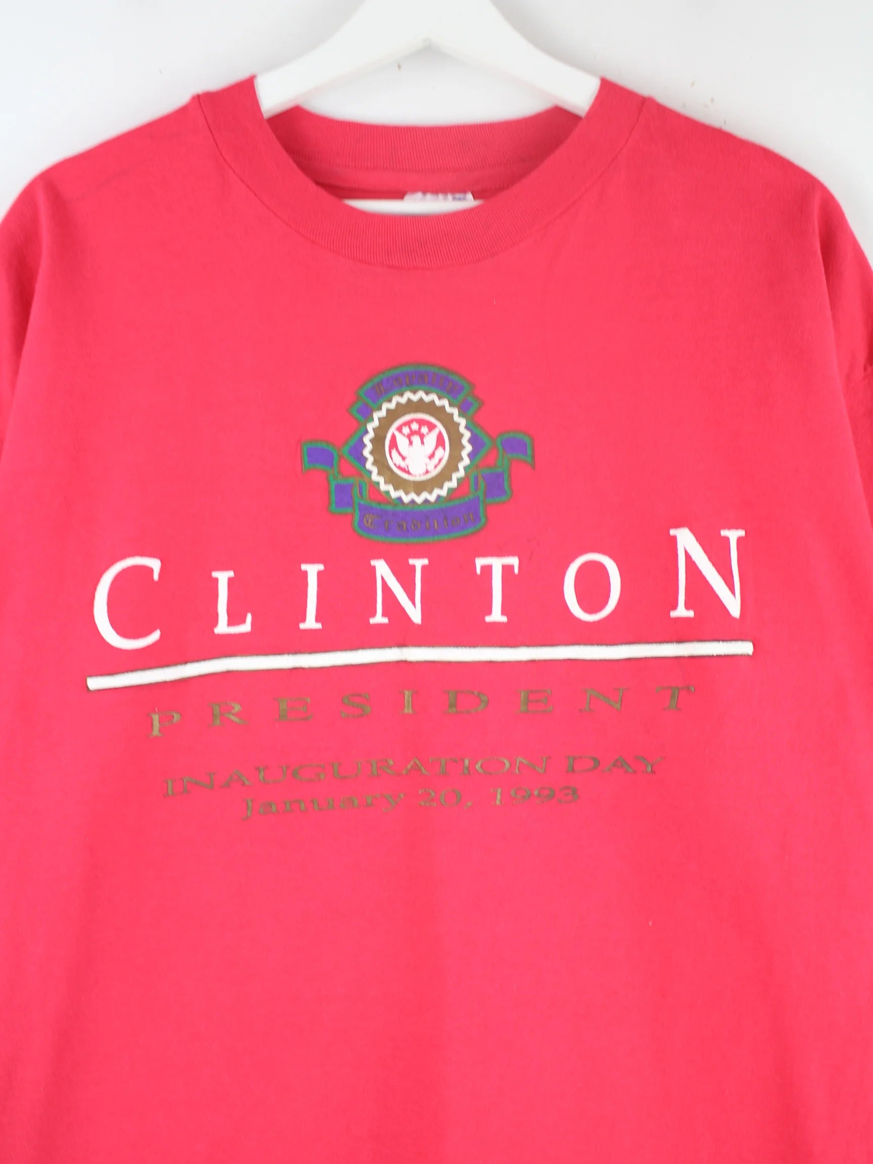 Hanes 90s Vintage Bill Clinton Print Single Stitch T-Shirt Rot XXL