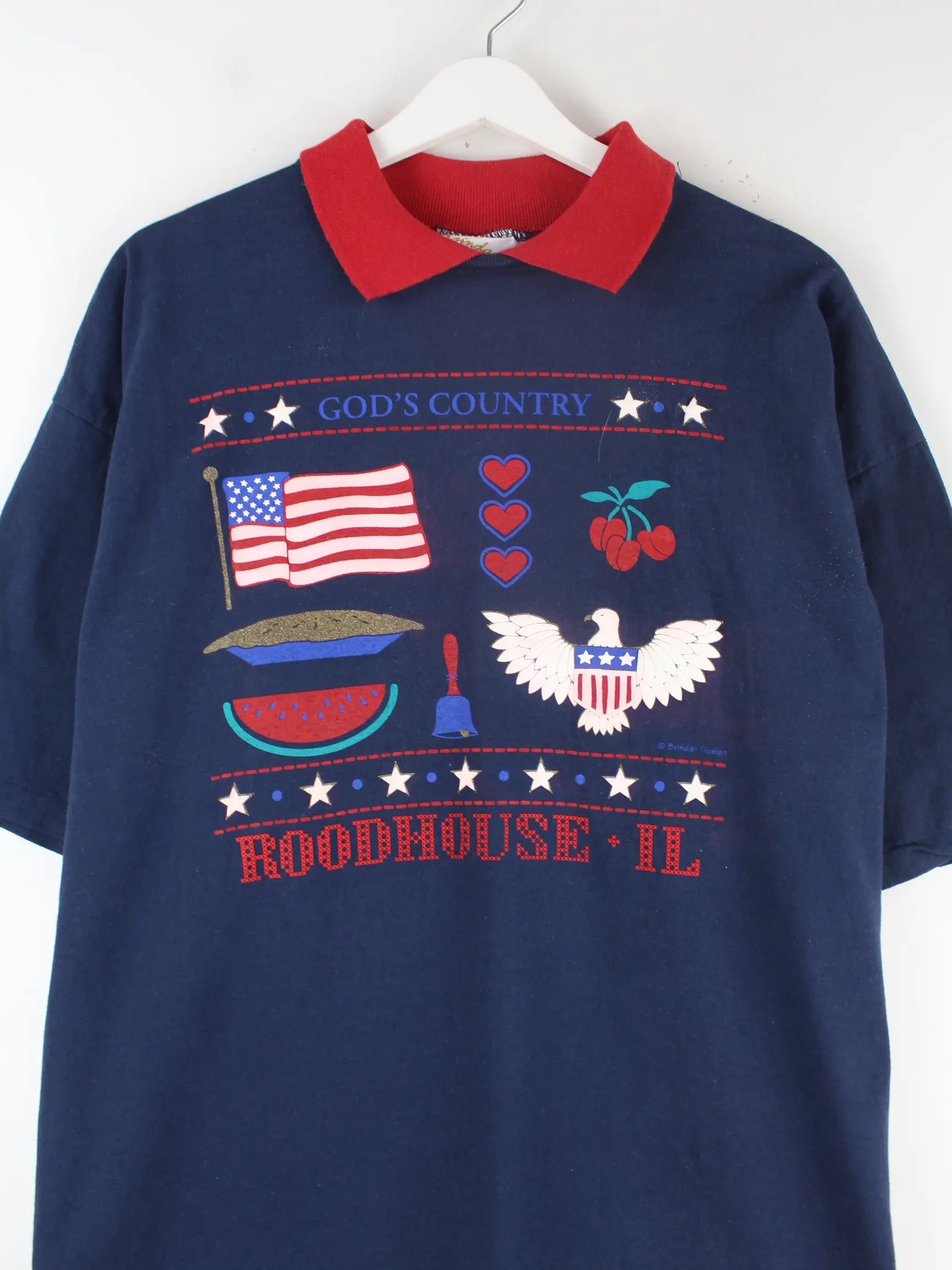Vintage 90s USA Print Single Stitch T-Shirt Blau XL
