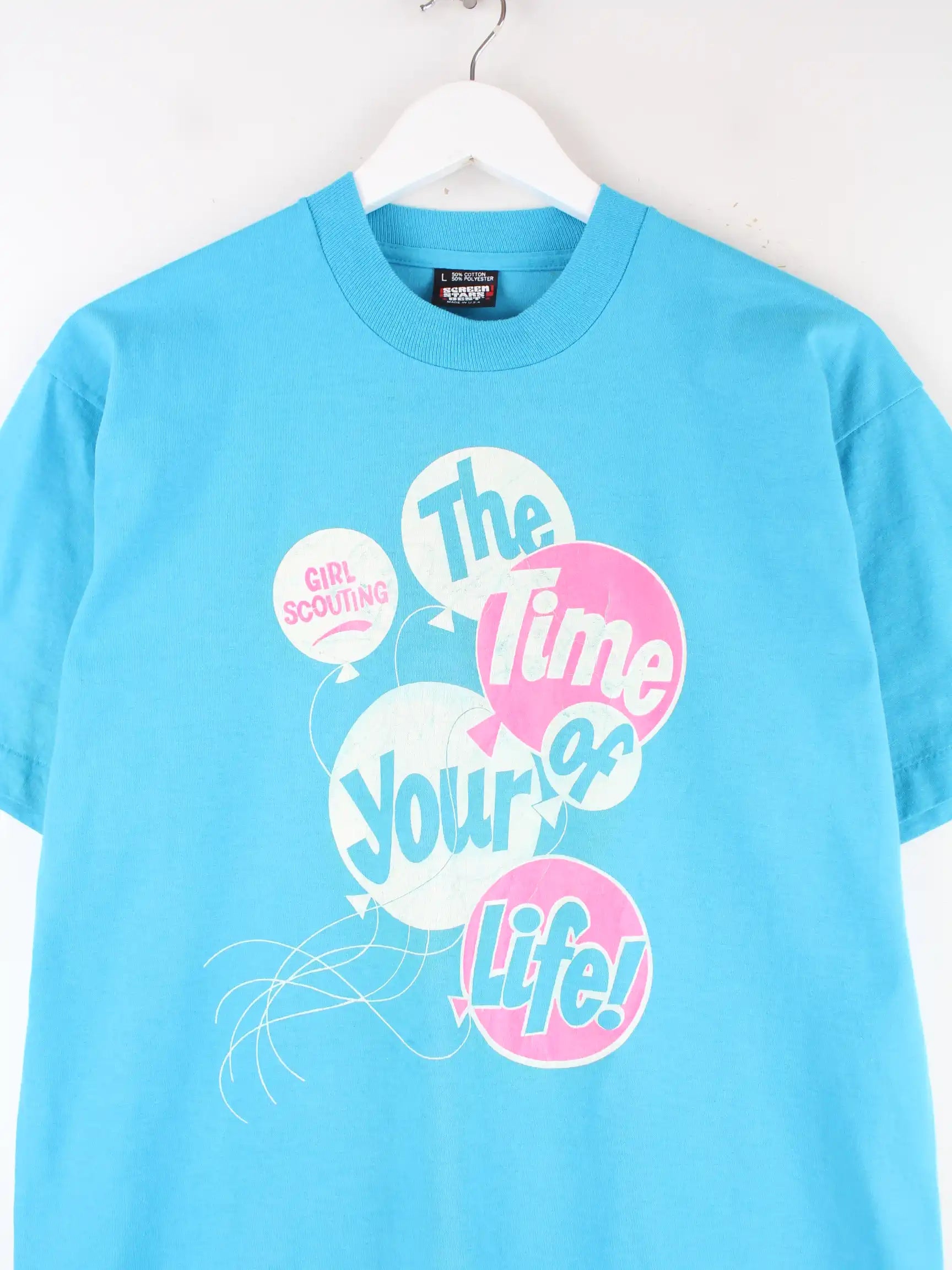 Screen Stars 90s Vintage Time Of Life Print Single Stitch T-Shirt Blau L