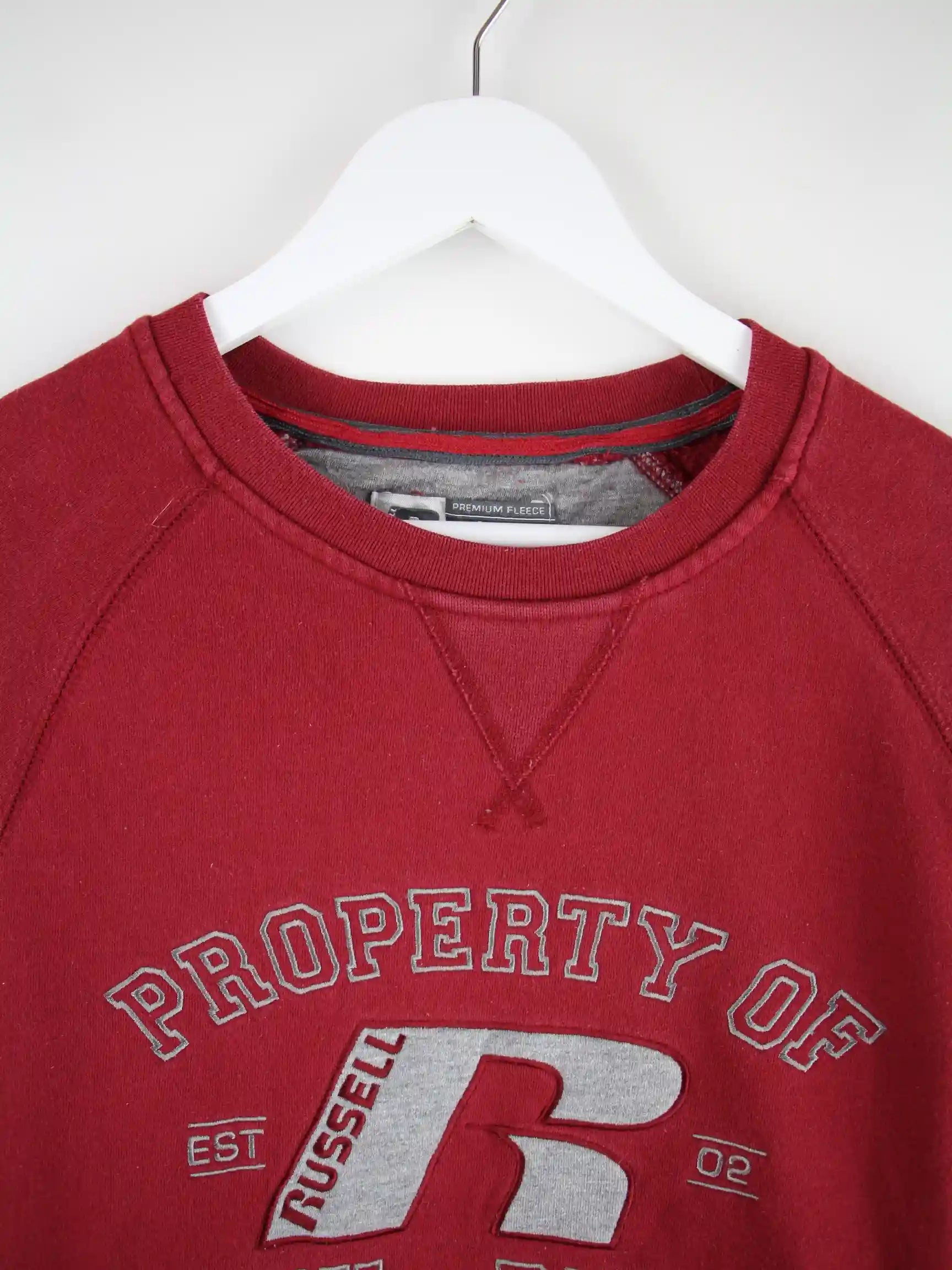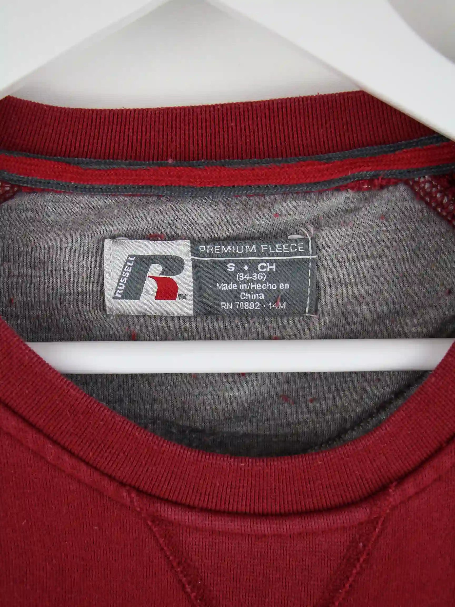 Roter Sweater vom Brand Russell Athletic in Größe M. Er ist aus einer Baumwollmischung gemacht und in sehr gutem Zustand auf Lager.
