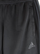 Schwarze Track Pants des Labels Adidas in Größe S. Sie sind aus Synthetik hergestellt. Den Zustand würden wir als 'In Ordnung' bezeichnen (vergl. Bilder).