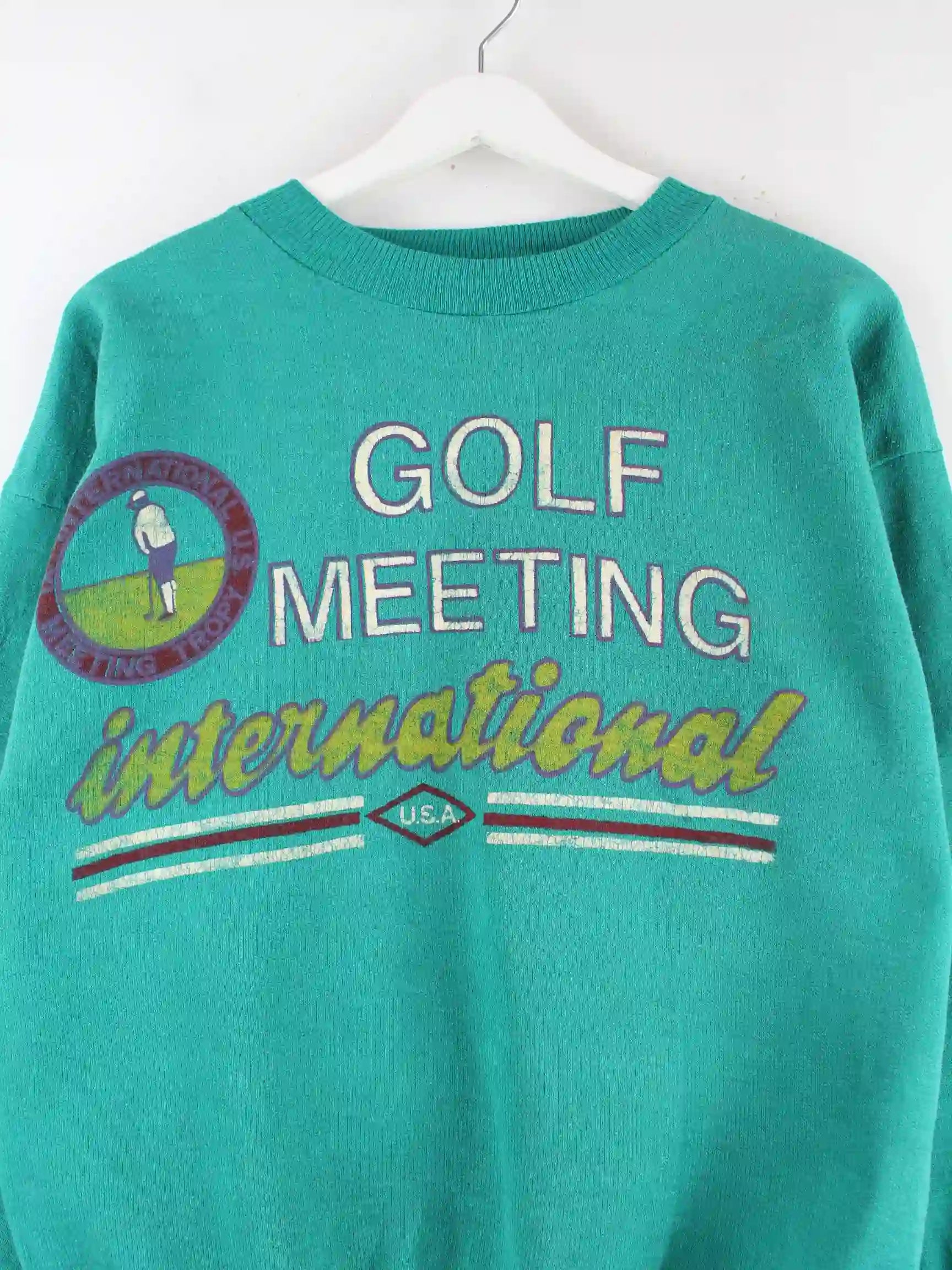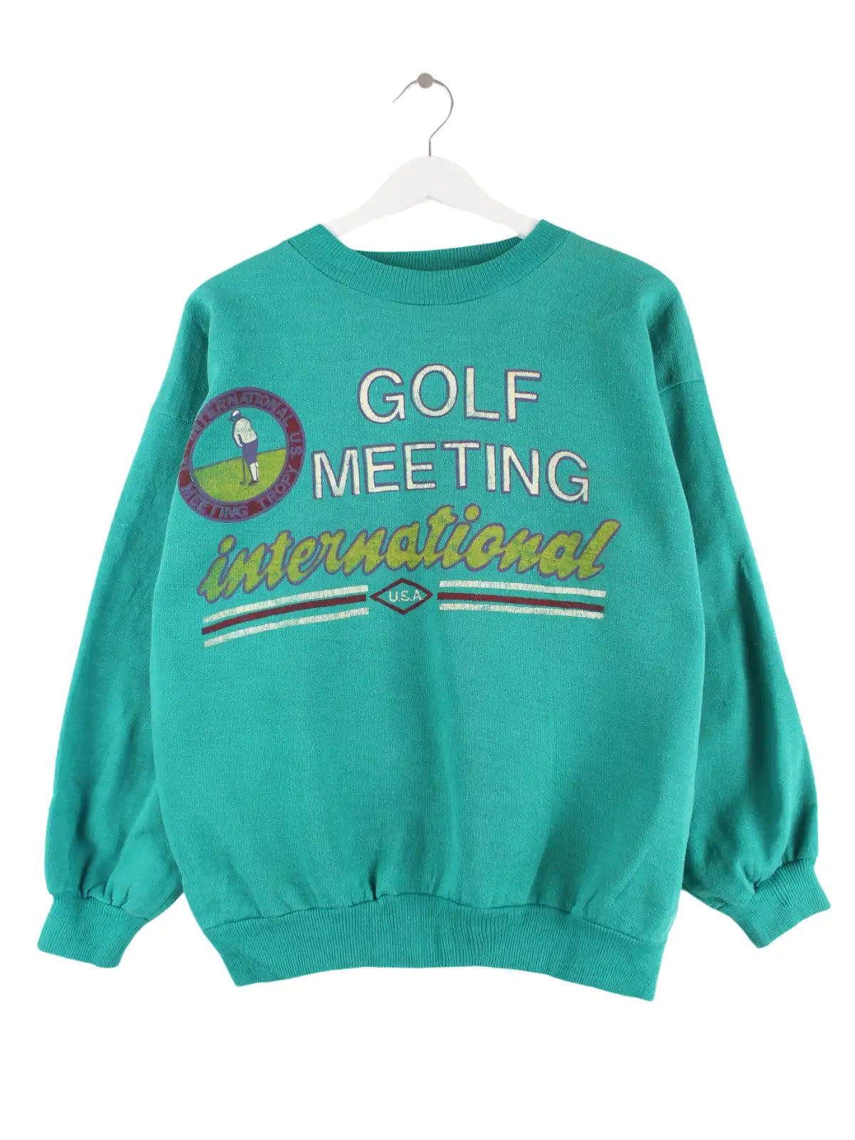 Vintage 80s Fun Hot Music Print Sweater Grün XL