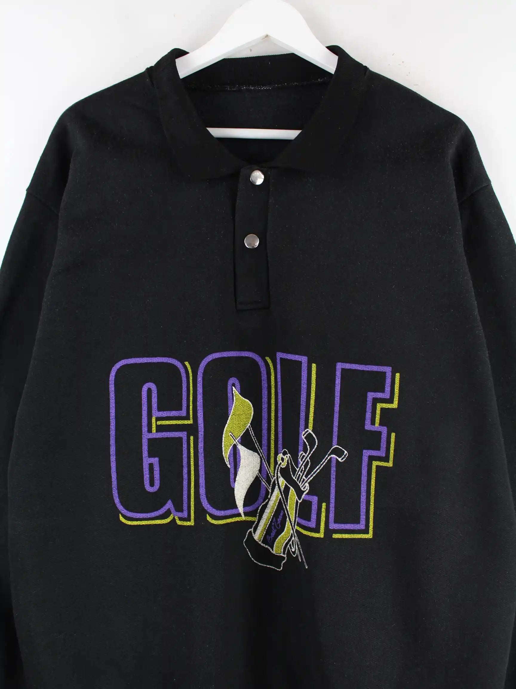 Vintage 80s Golf Embroidered Polo Sweater Schwarz M
