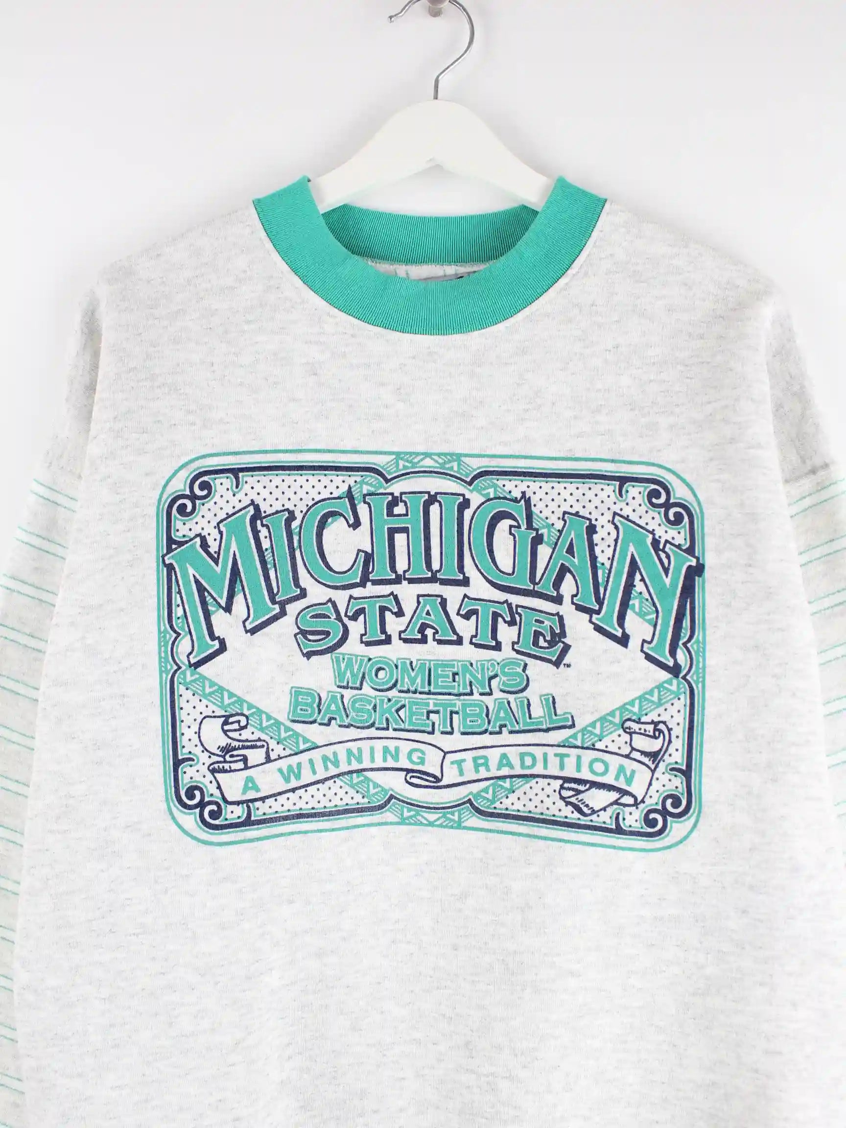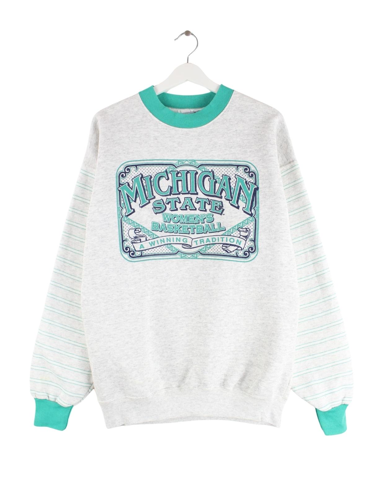 Vintage 90s Michigan Spartans Print Sweater Grau 3XL