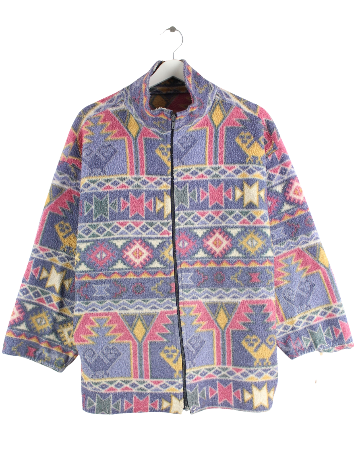 Vintage 90s Navajo Crazy Pattern Fleece Jacke Mehrfarbig L