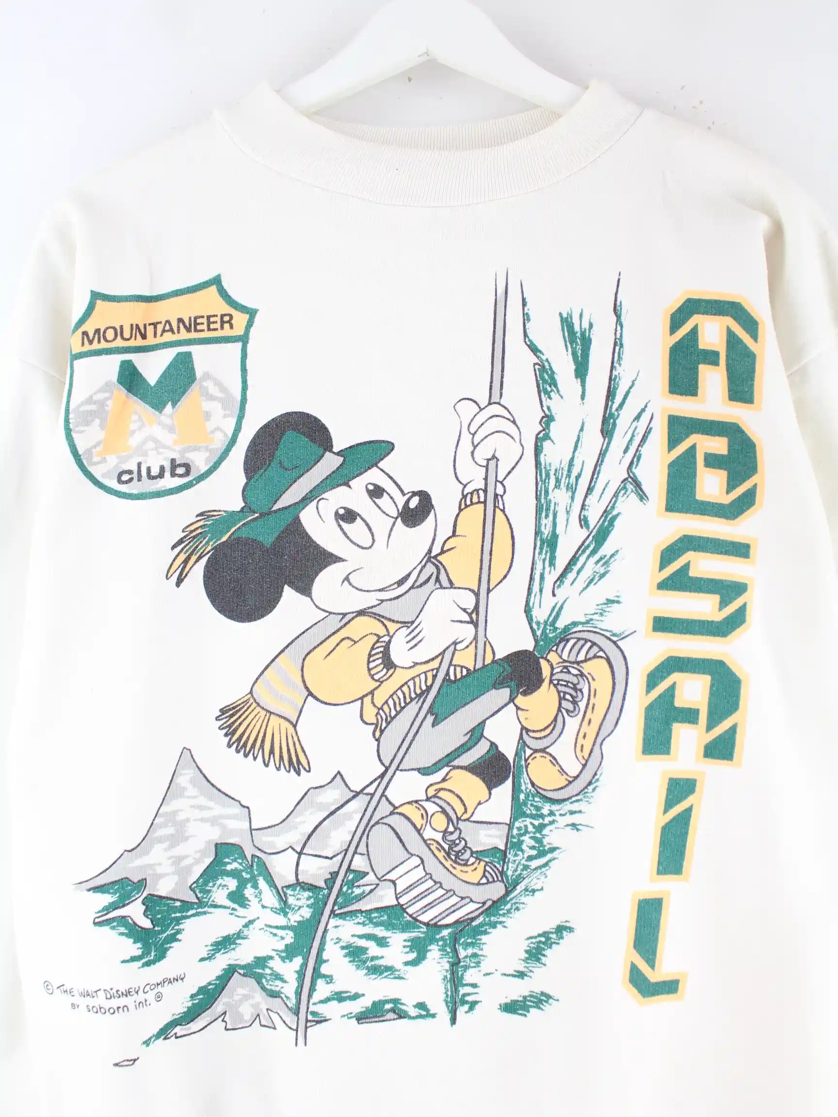 Vintage 90s Mickey Mouse Hitchhike Print Sweater Weiß M
