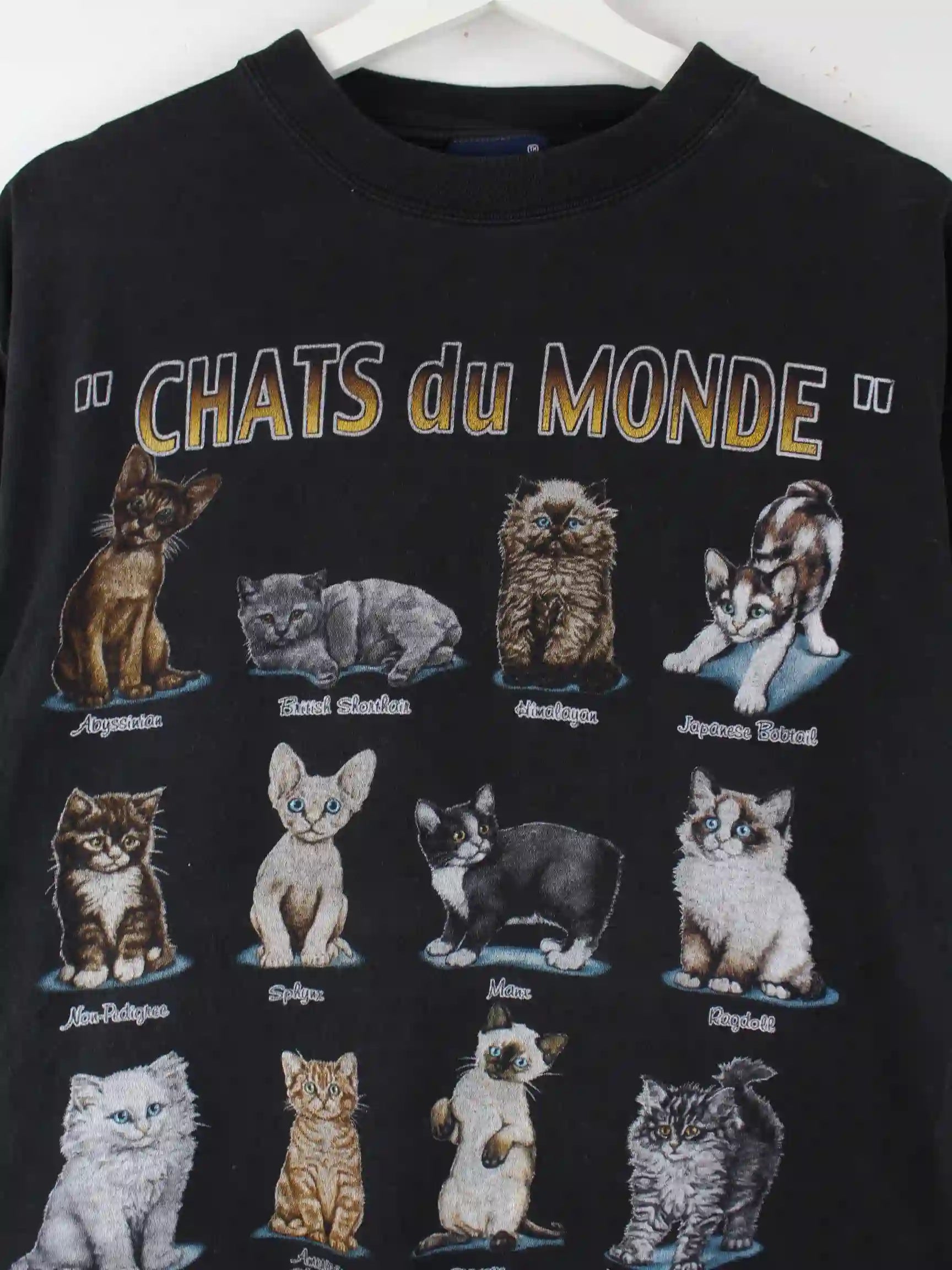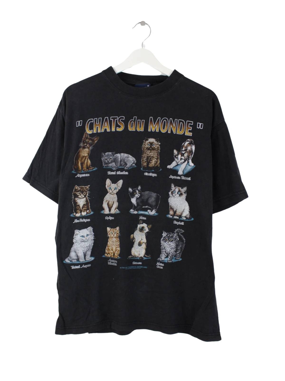 Vintage Cat Pattern Hawaii Shirt Blue M