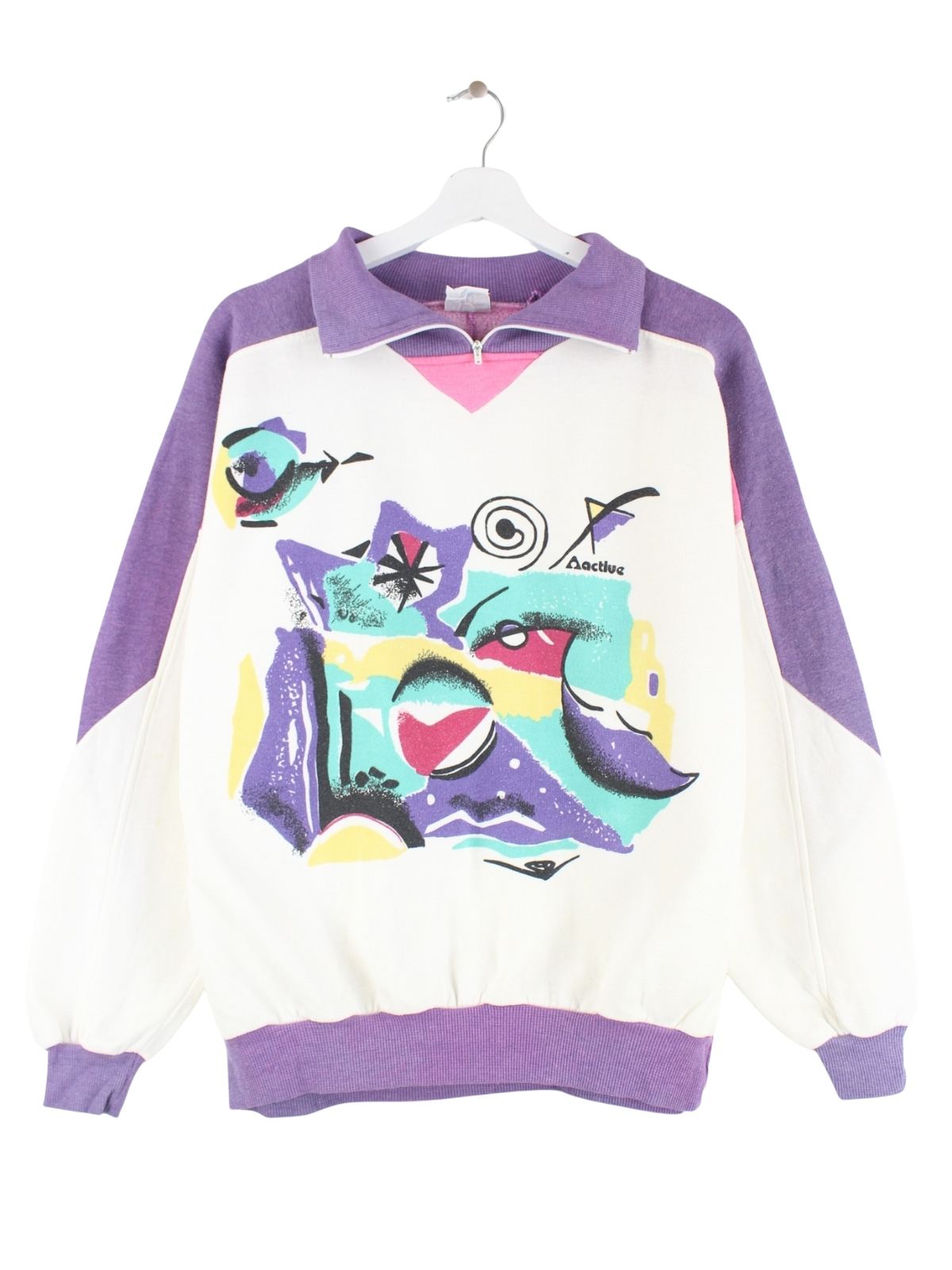 Active Swiss 80s Vintage Print Half Zip Sweater Weiß M