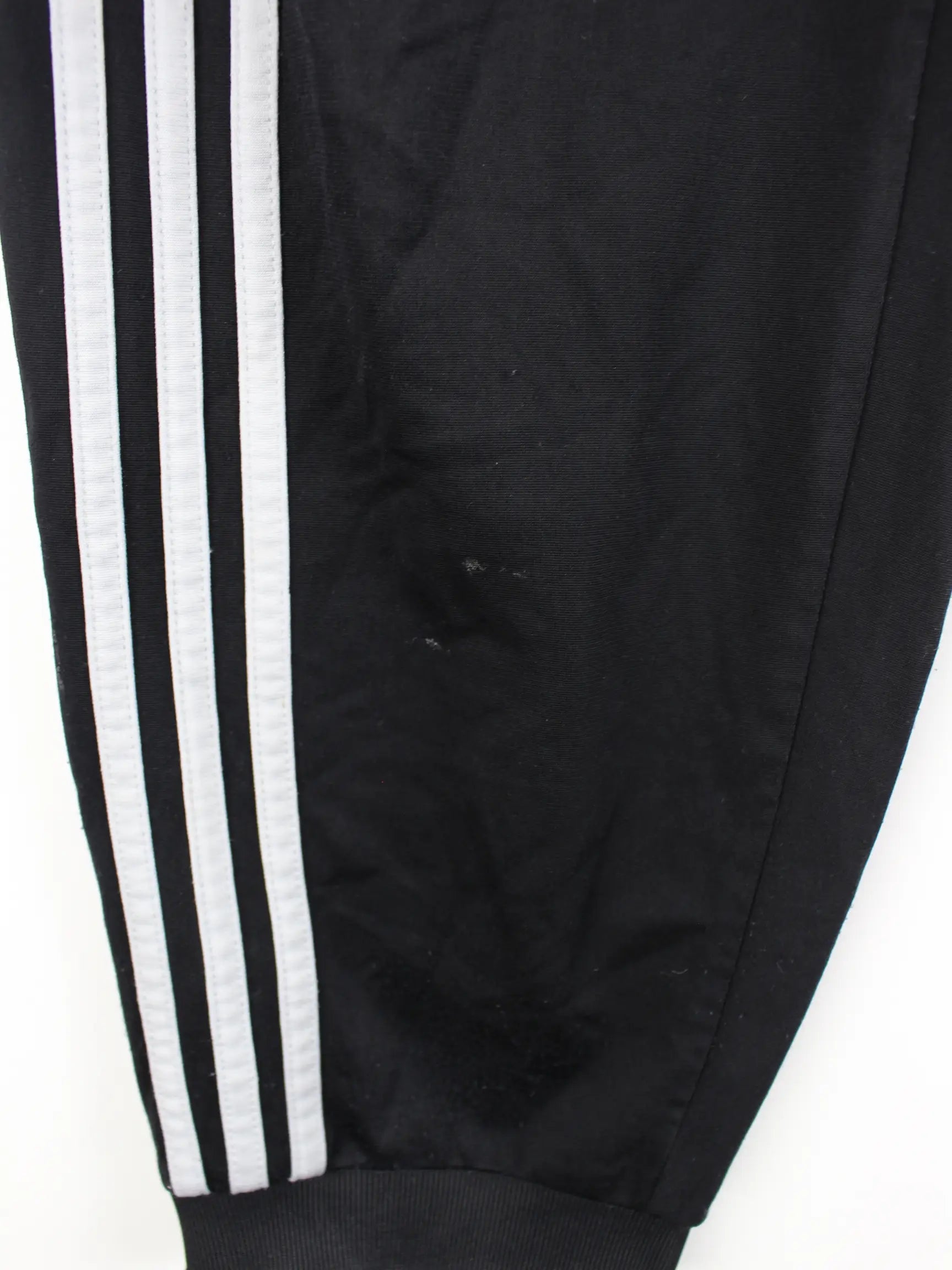 Schwarze Track Pants des Labels Adidas in Größe XL. Sie sind aus Synthetik angefertigt. Den Zustand würden wir als 'In Ordnung' bezeichnen (vergl. Bilder).