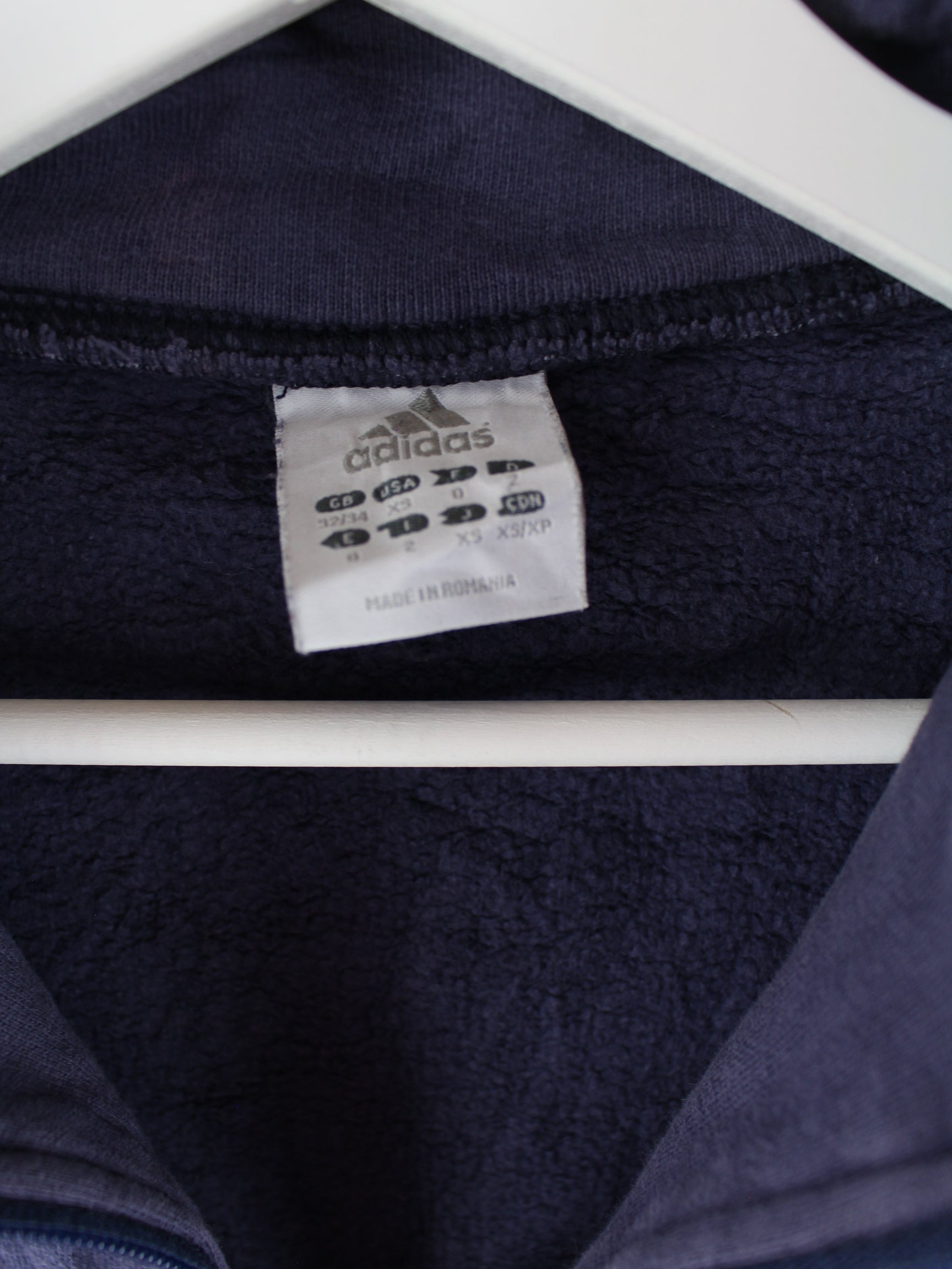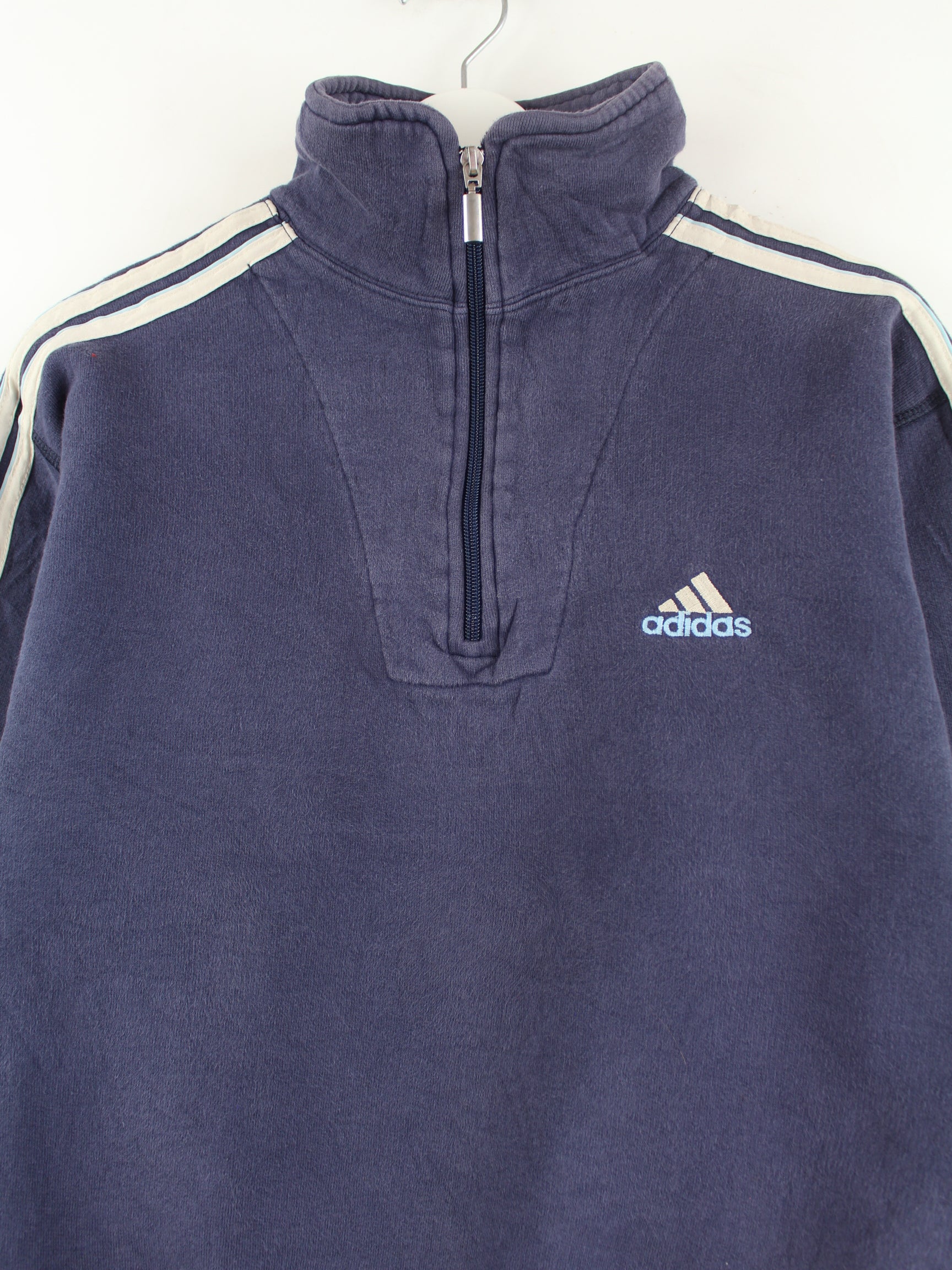 Sweater from the brand Adidas with half zip in size XS. It is made from a cotton blend and is available in blue.