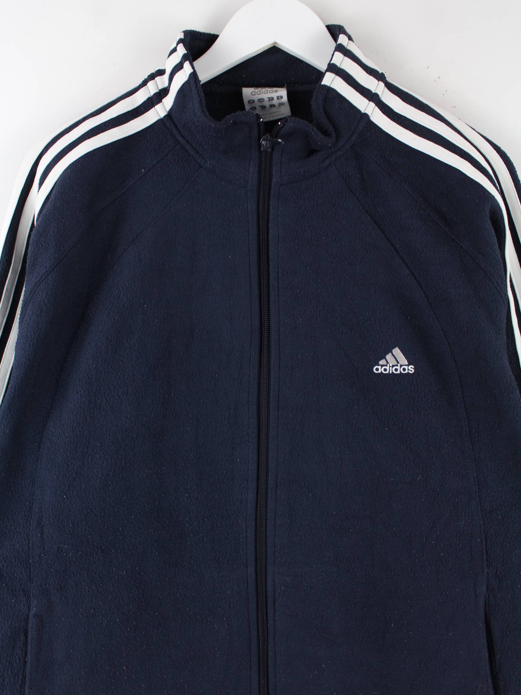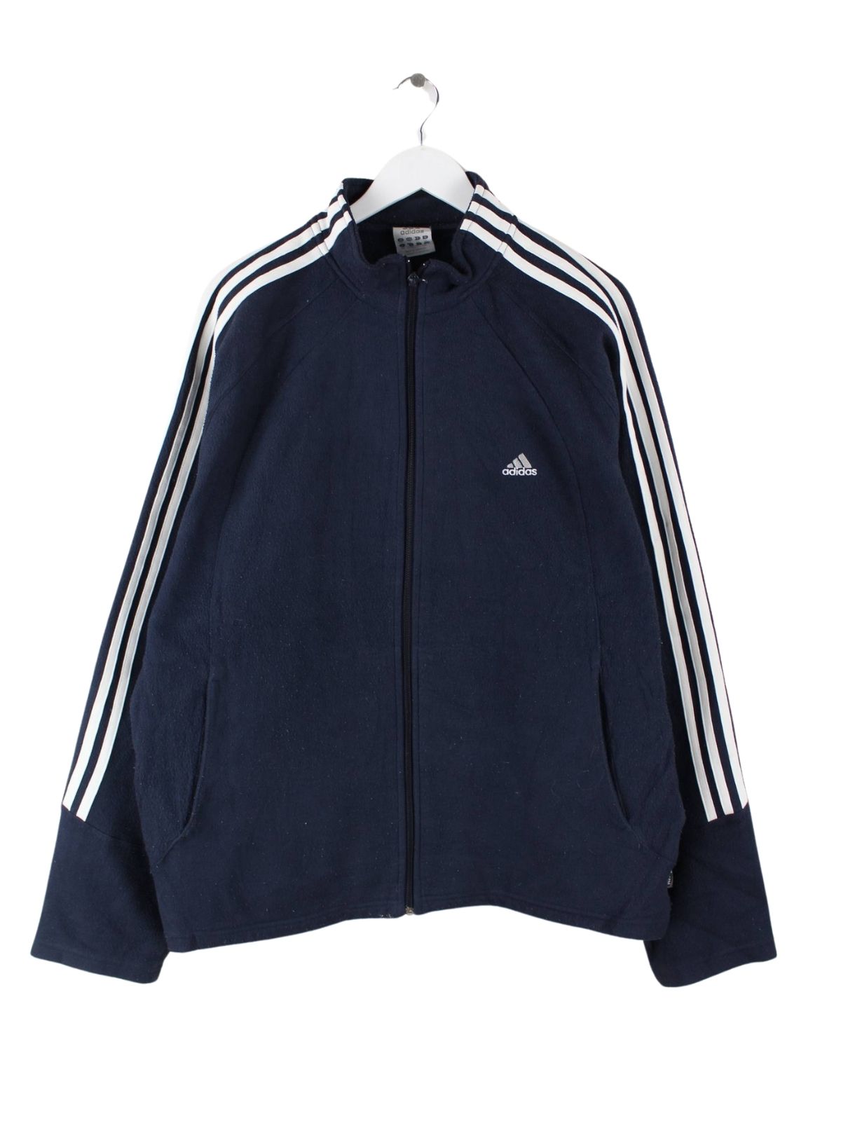 Leichte Jacke der Brand Adidas in Größe XXL. Sie ist aus kuscheligem Fleece produziert und in Blau im Bestand.