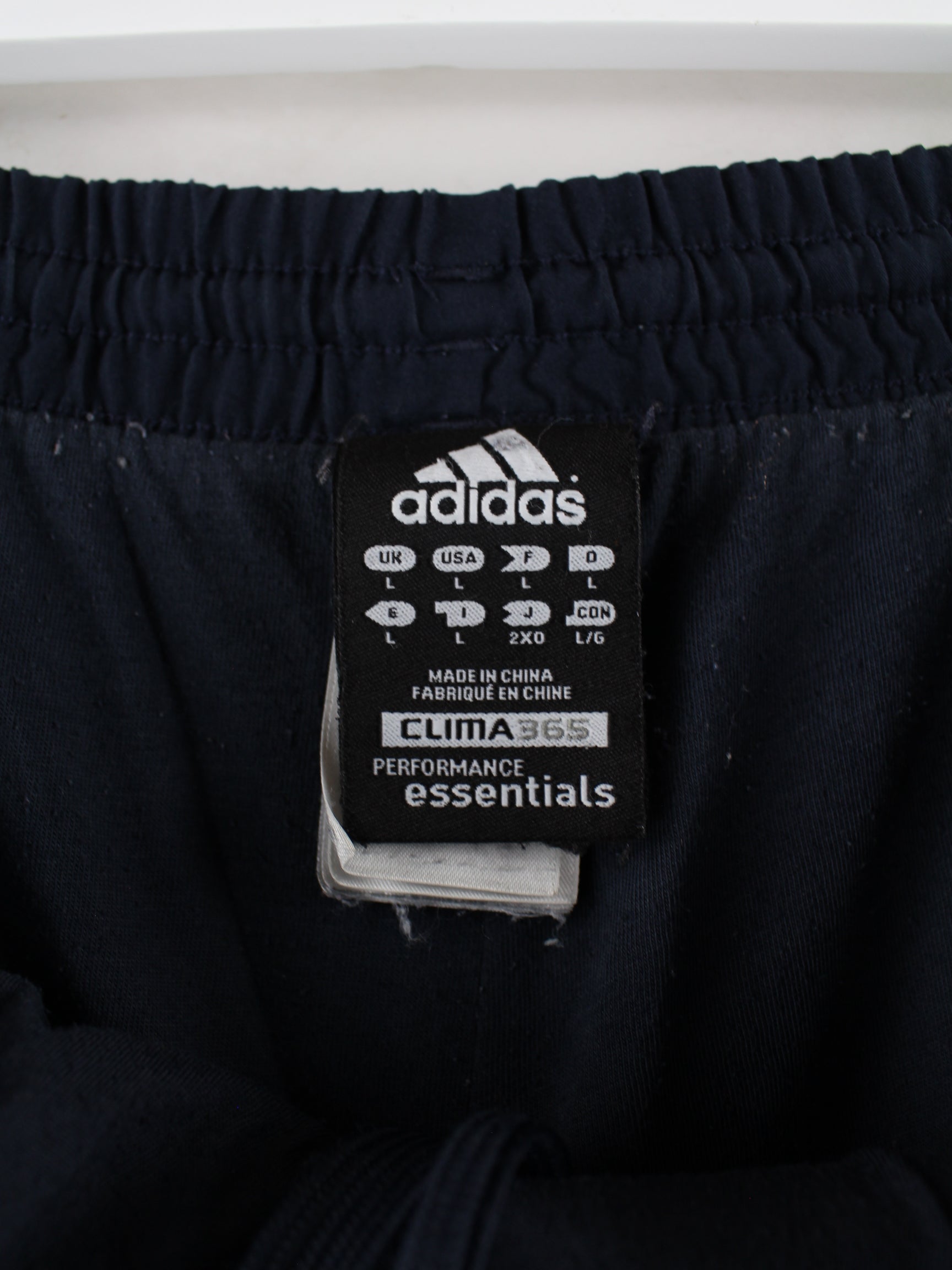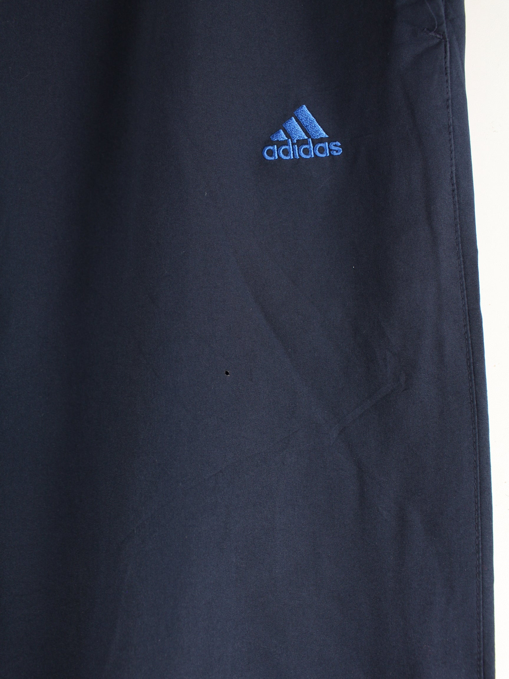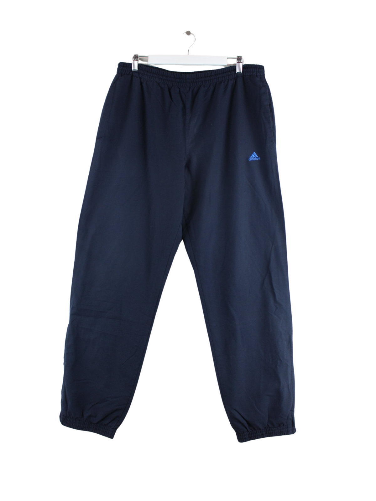 Blaue Track Pants von Adidas in Größe L. Sie sind aus Synthetik gemacht und in gutem Zustand bei uns zu bekommen.