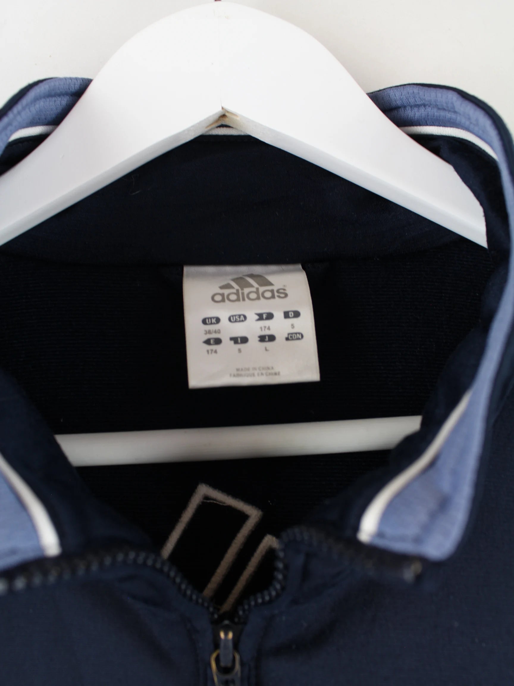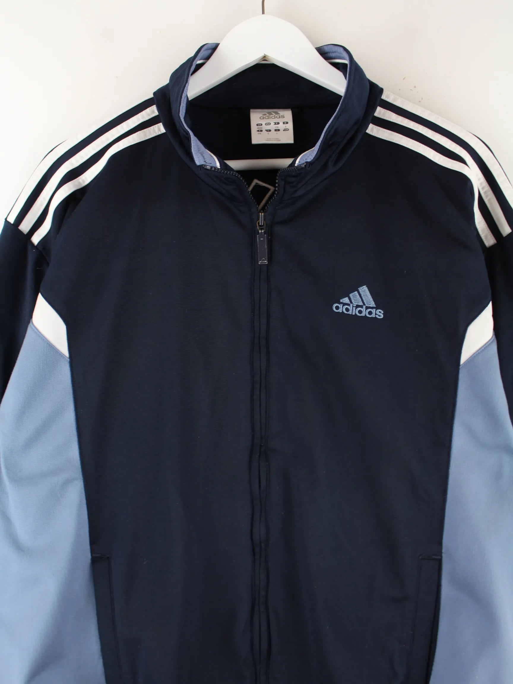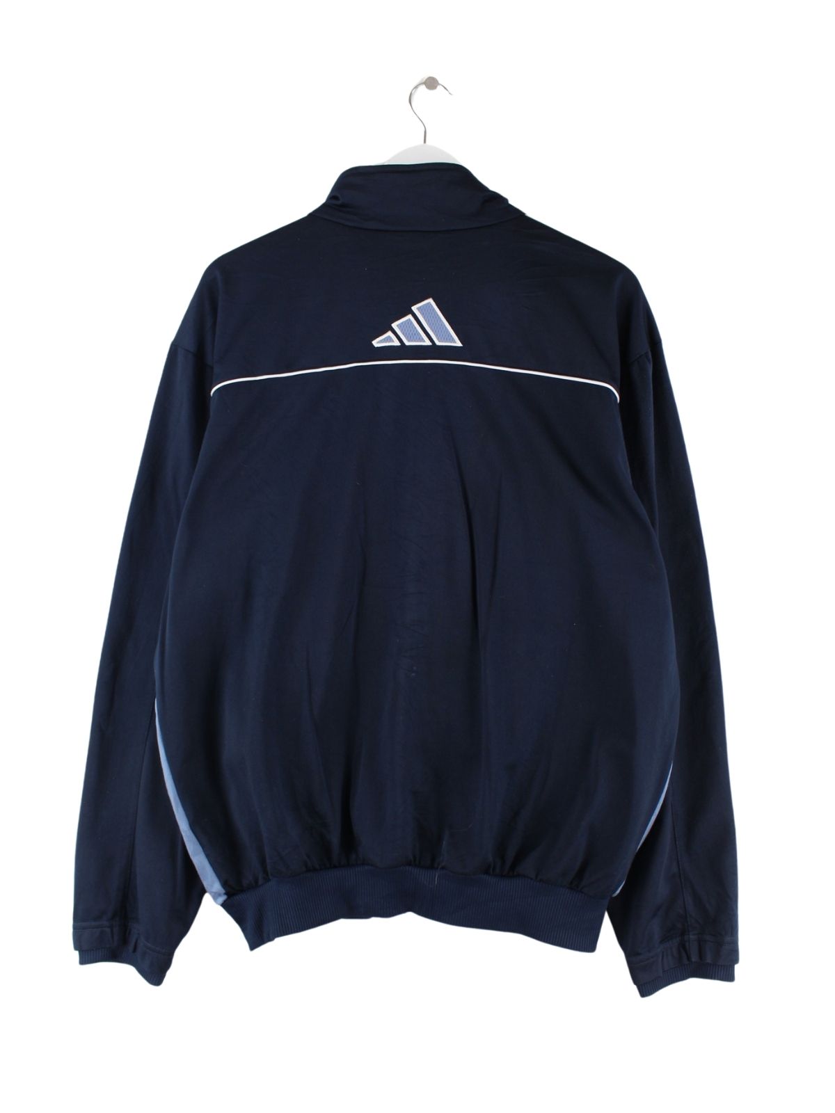 Trainingsjacke vom Label Adidas in Größe L. Sie ist aus Synthetik produziert und in Blau im Angebot.