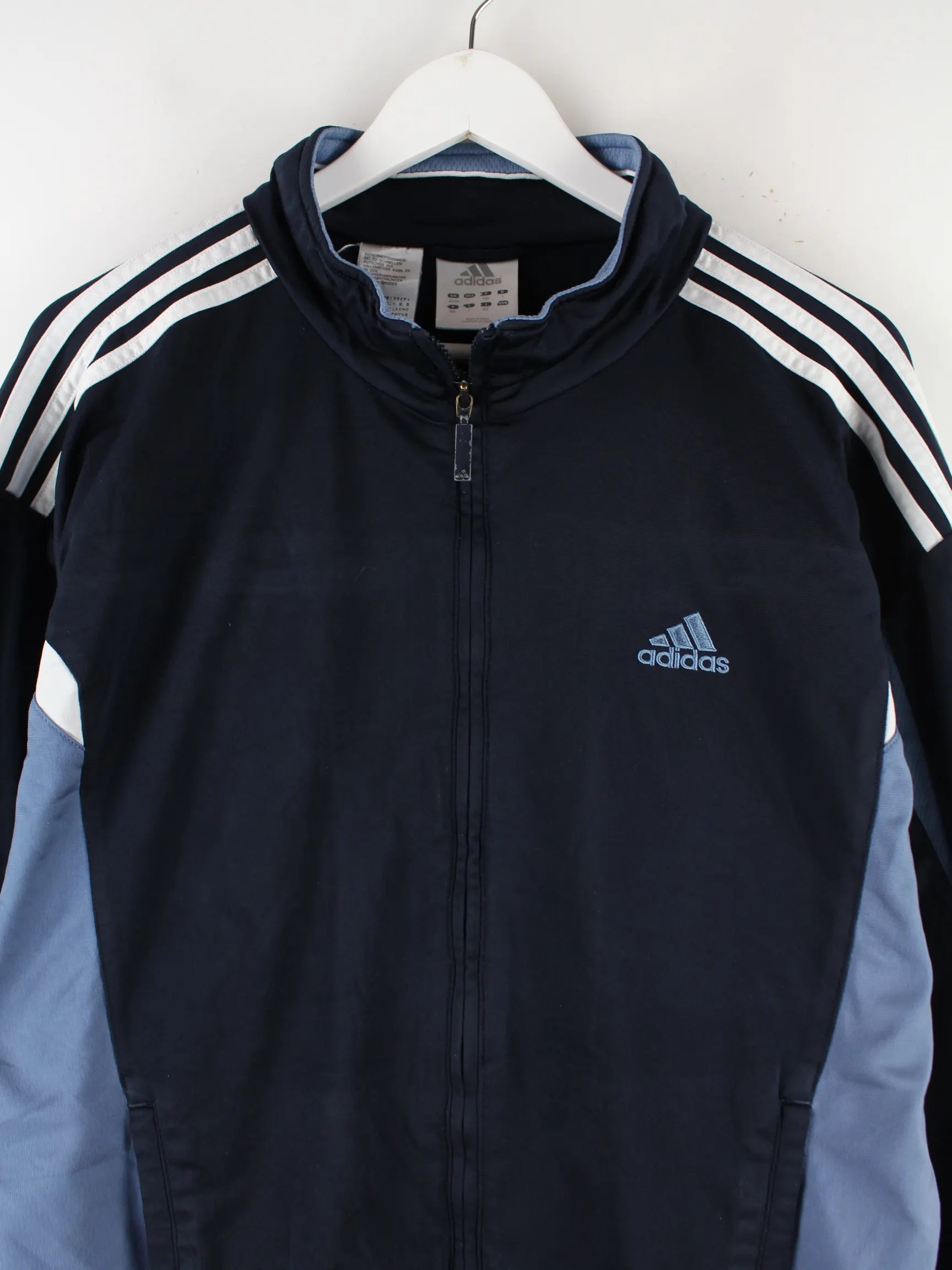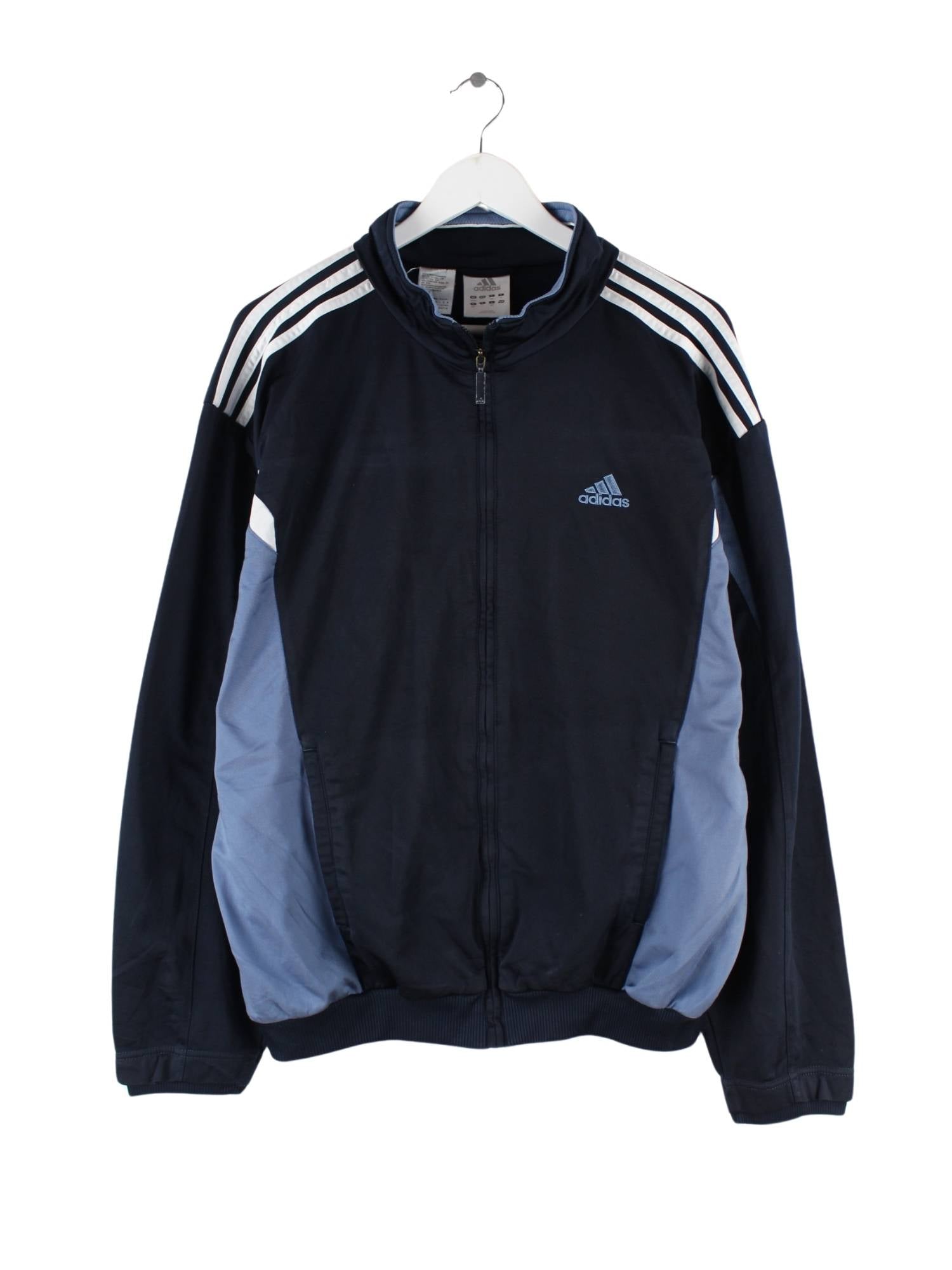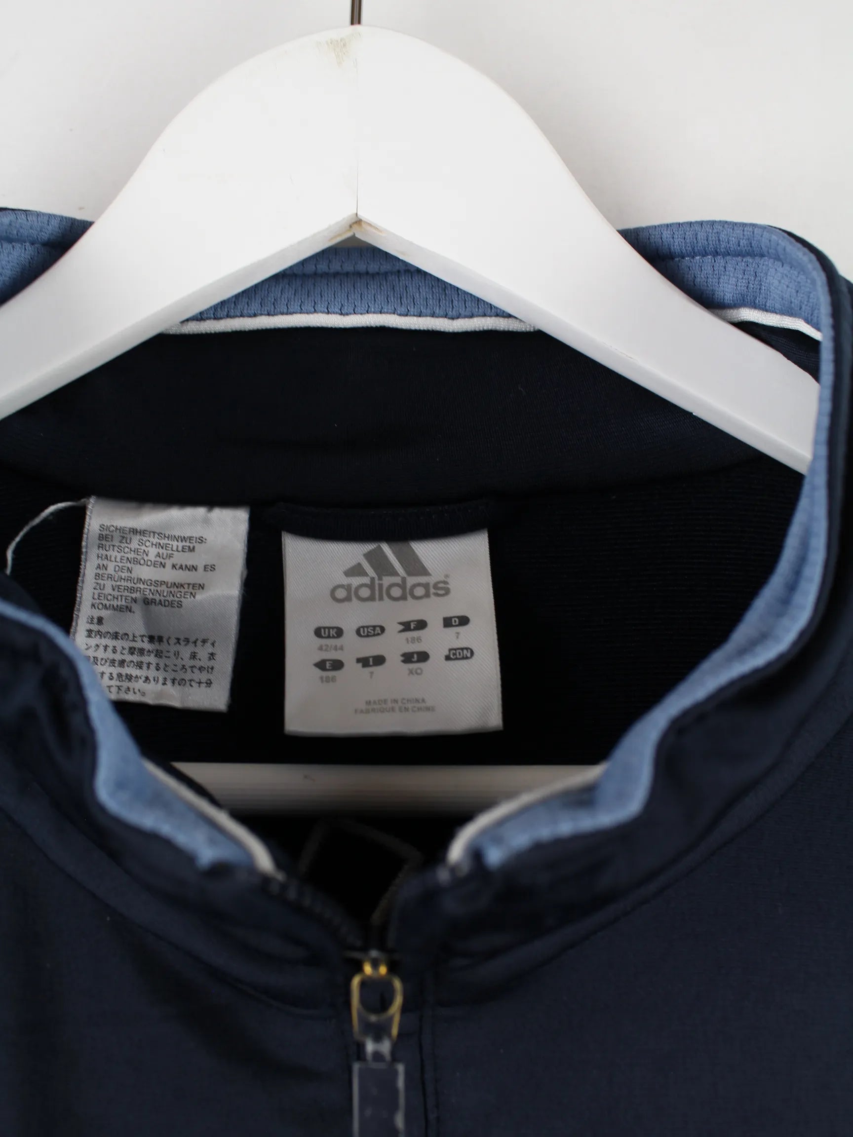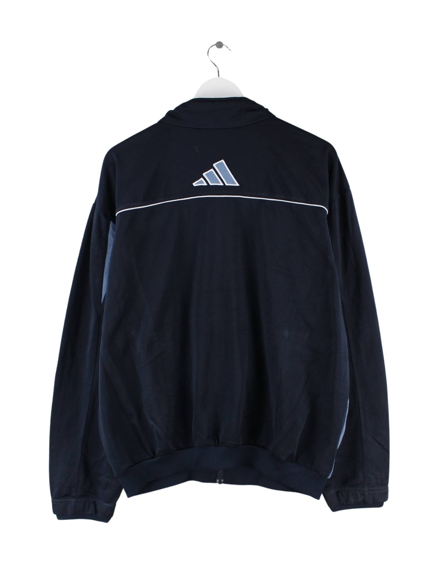 Trainingsjacke vom Brand Adidas in Größe XL. Sie ist aus Synthetik angefertigt und in Blau auf Lager.