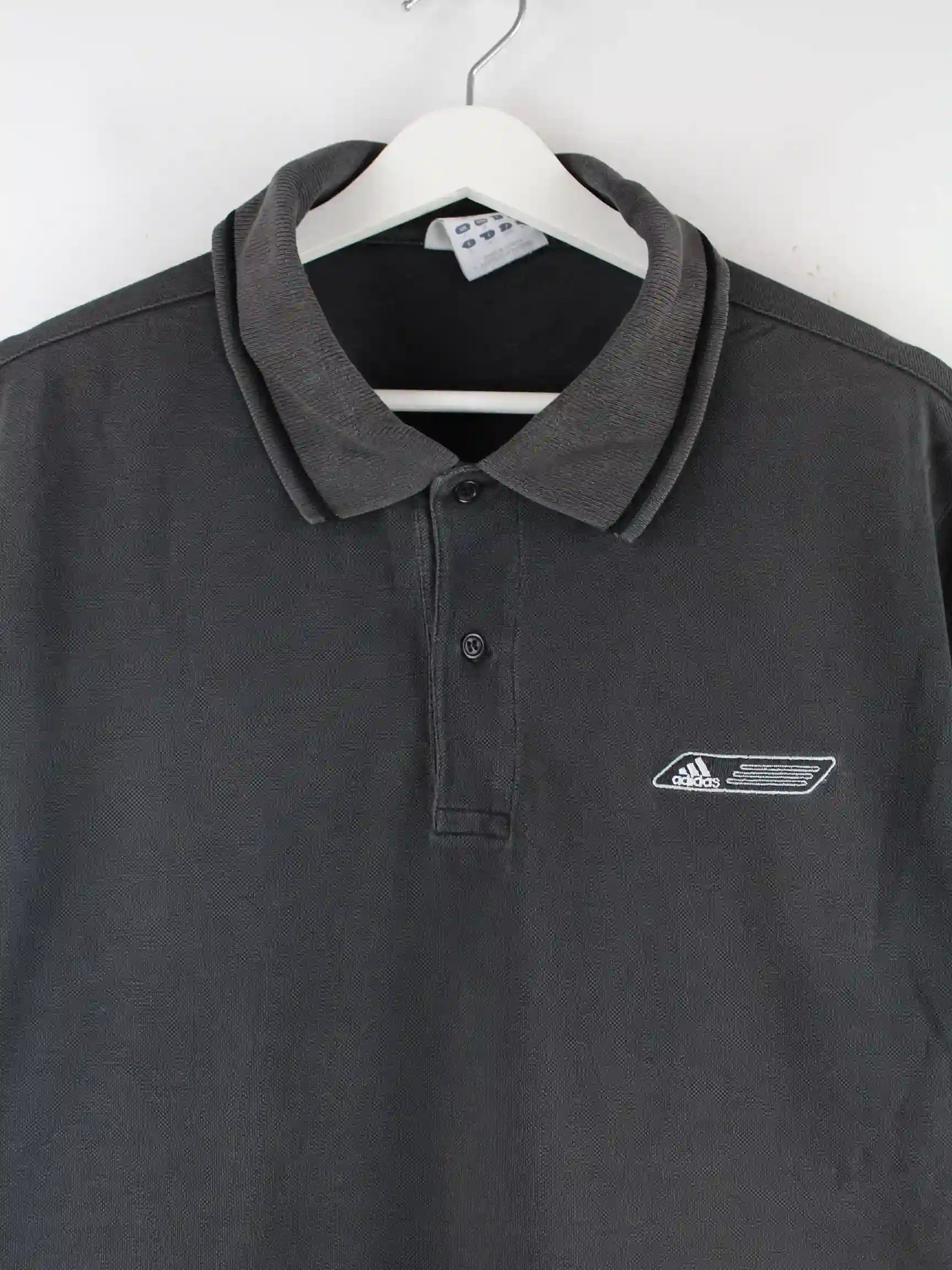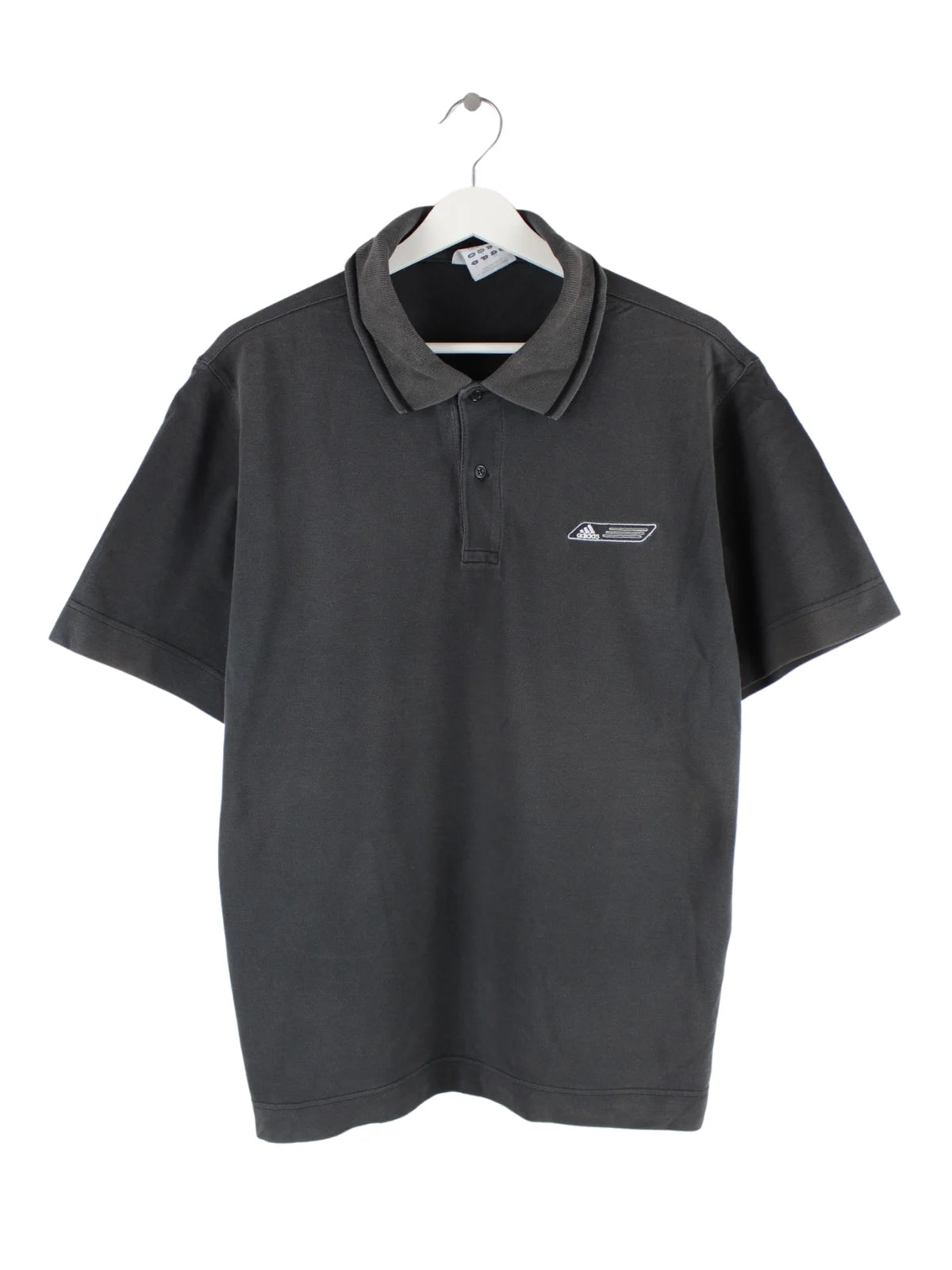 Poloshirt aus dem Hause Adidas in Größe L. Es ist aus Baumwolle gefertigt und in Grau in Stock.