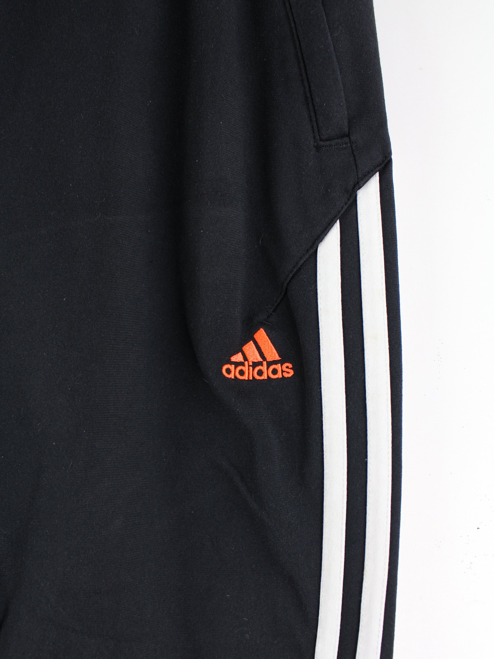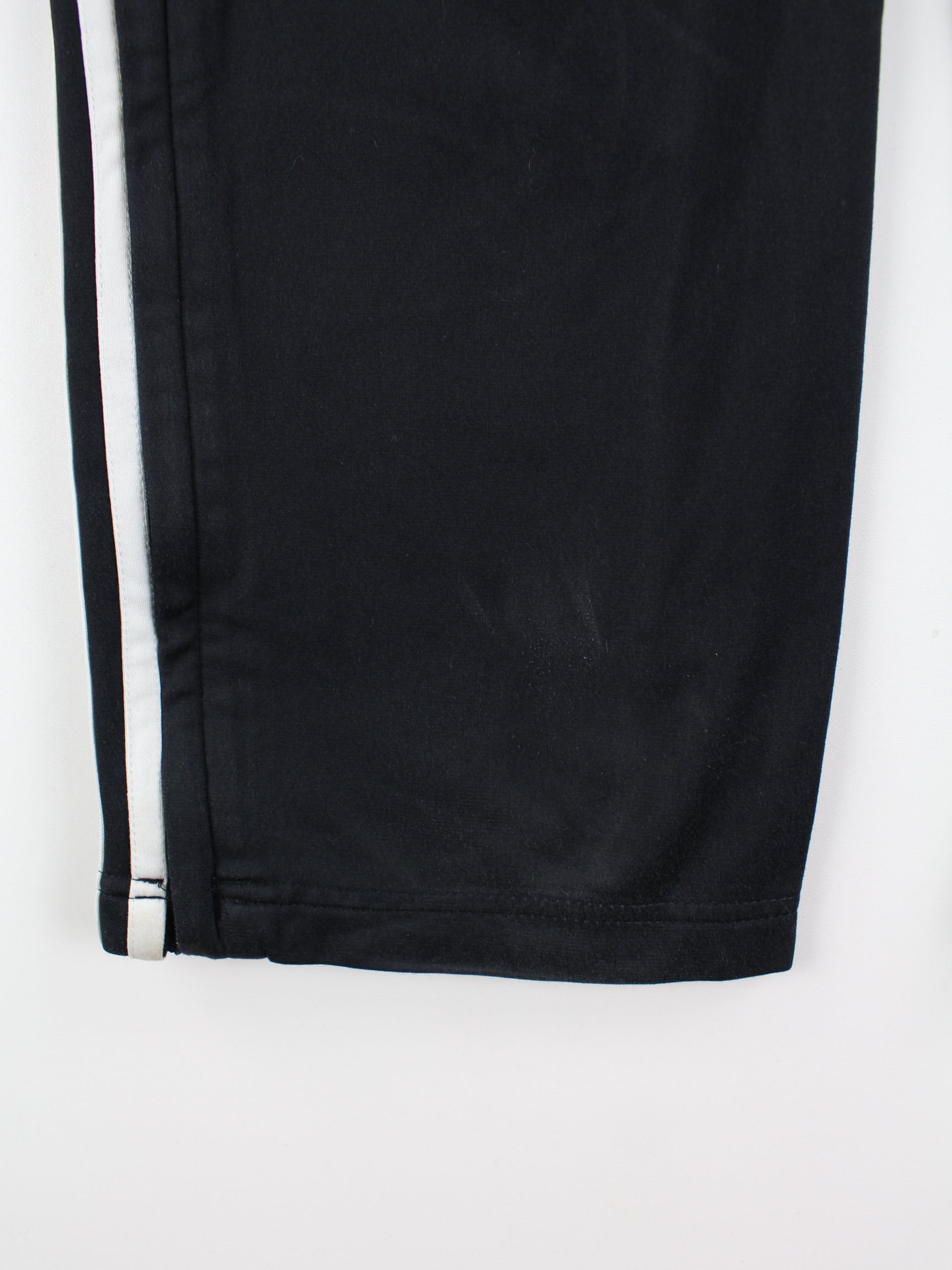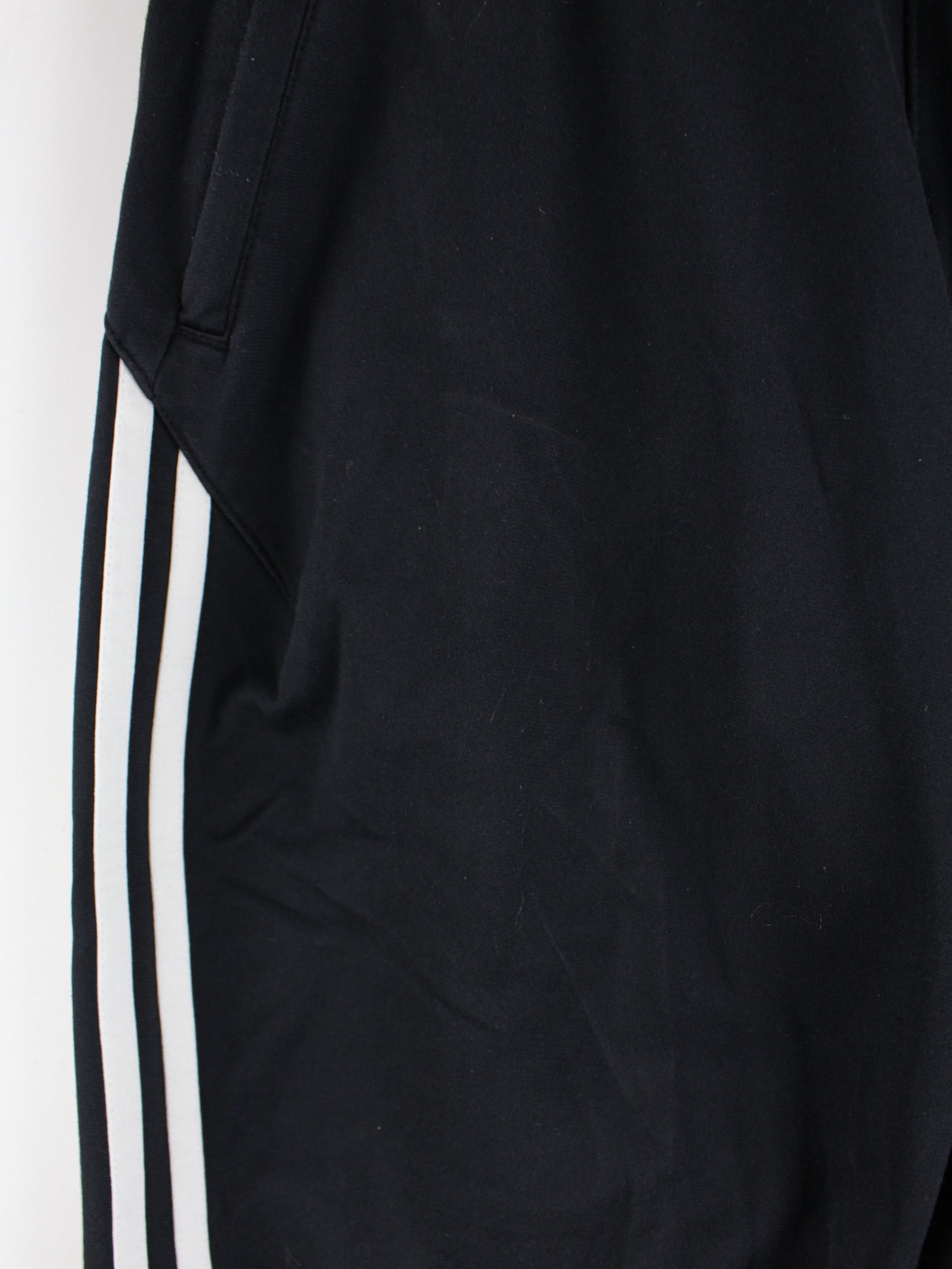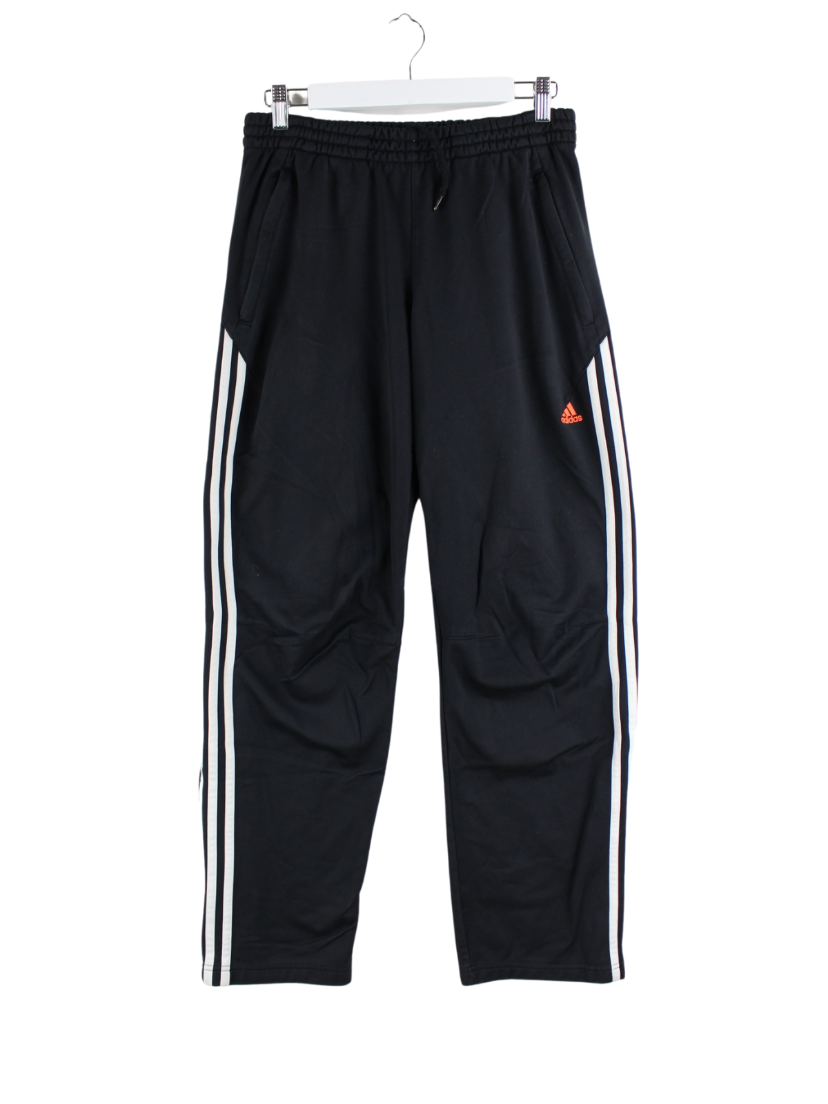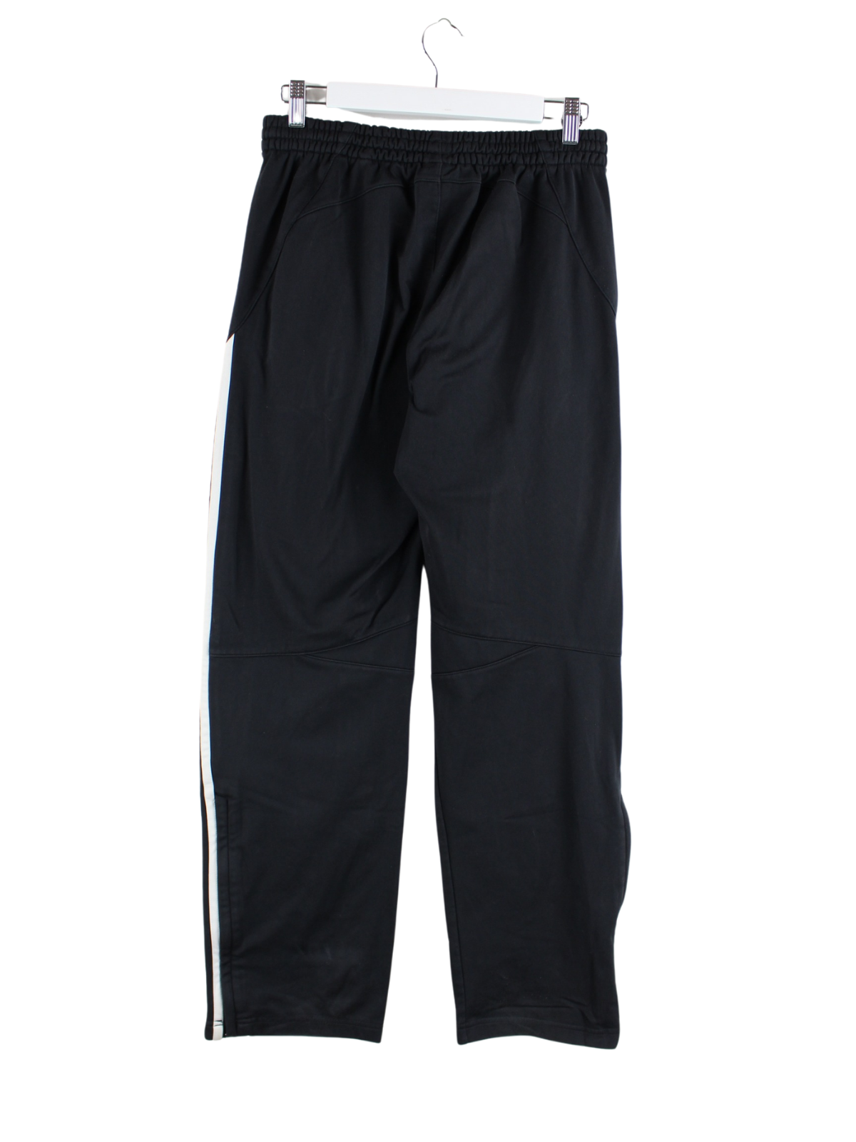 Black track pants from the label Adidas in size M. They are made of synthetic material and are in good condition.