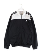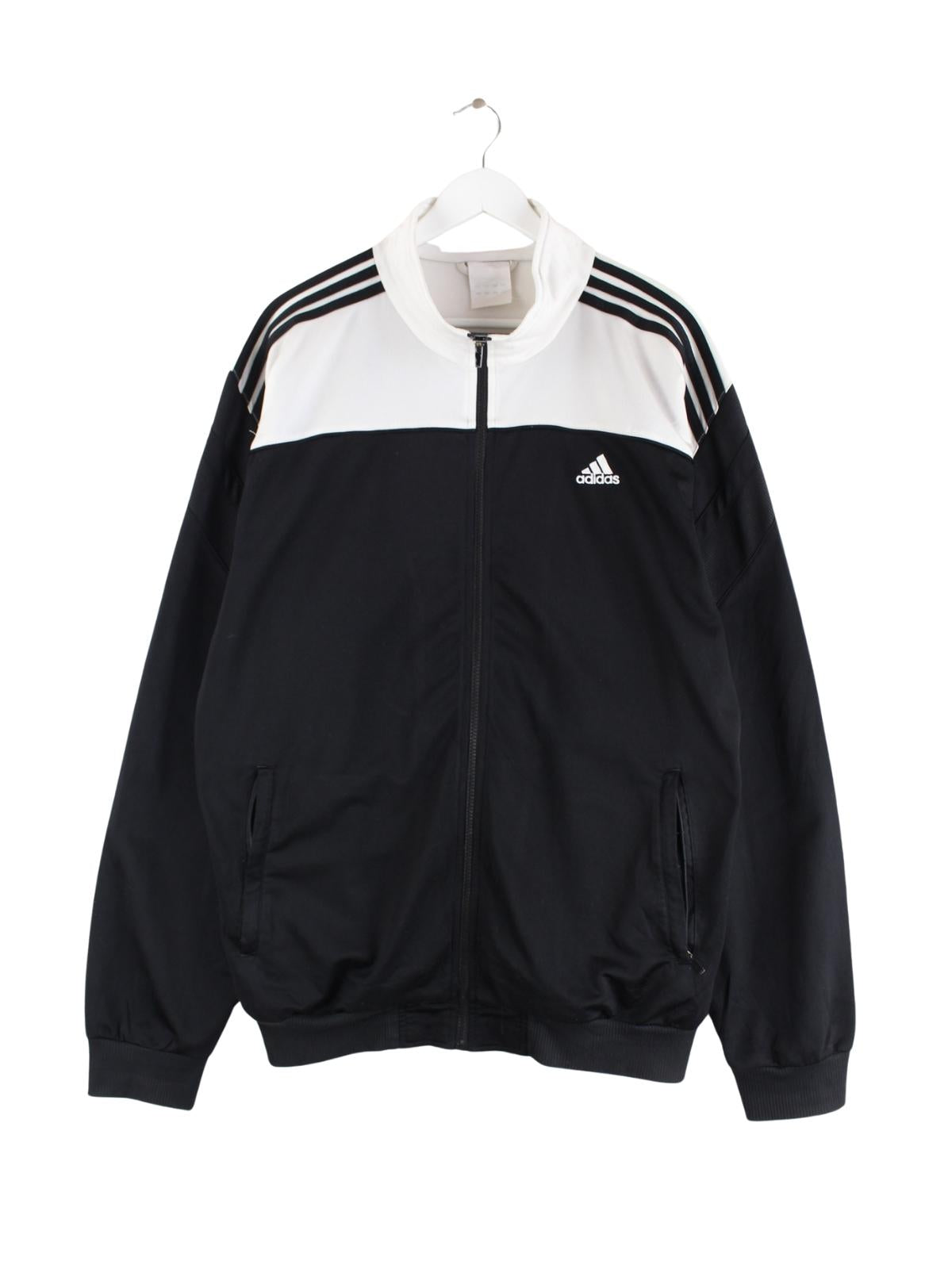 Schwarze Trainingsjacke der Marke Adidas in Größe XXL aus den 2000er Jahren. Sie ist aus Synthetik angefertigt. Den Zustand würden wir als 'In Ordnung' bezeichnen (vergl. Bilder).