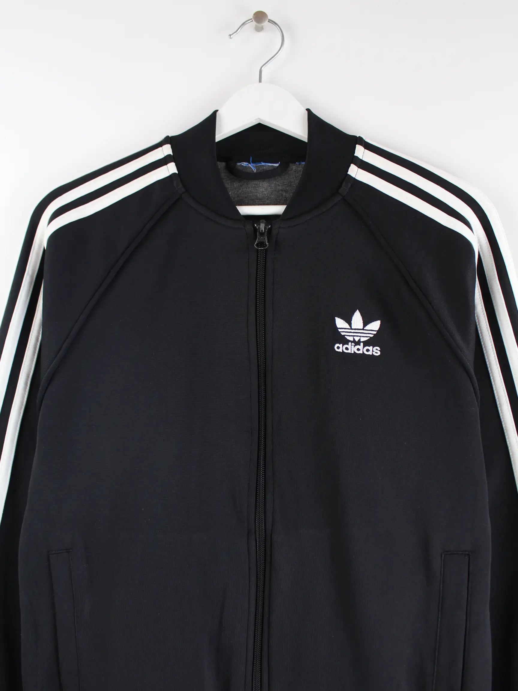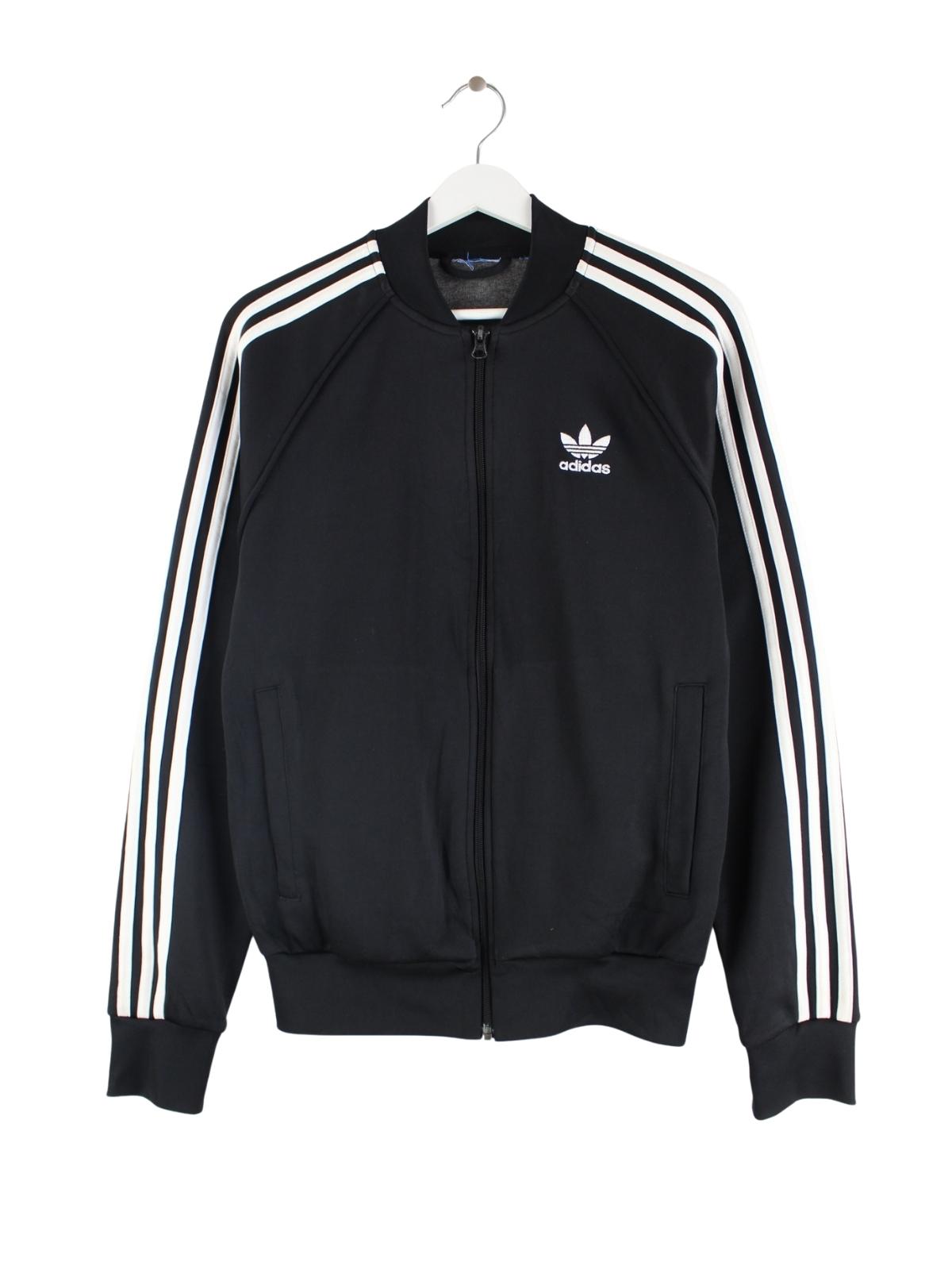 Schwarze Trainingsjacke von Adidas in Größe M. Sie ist aus Synthetik angefertigt und in sehr gutem Zustand zu bekommen.