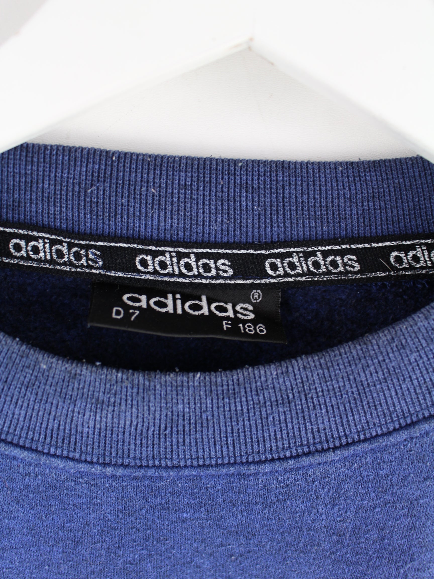 Blue sweater with embroidered logo from the brand Adidas from the 80's in size M. It is made of a cotton blend and is in very good condition.