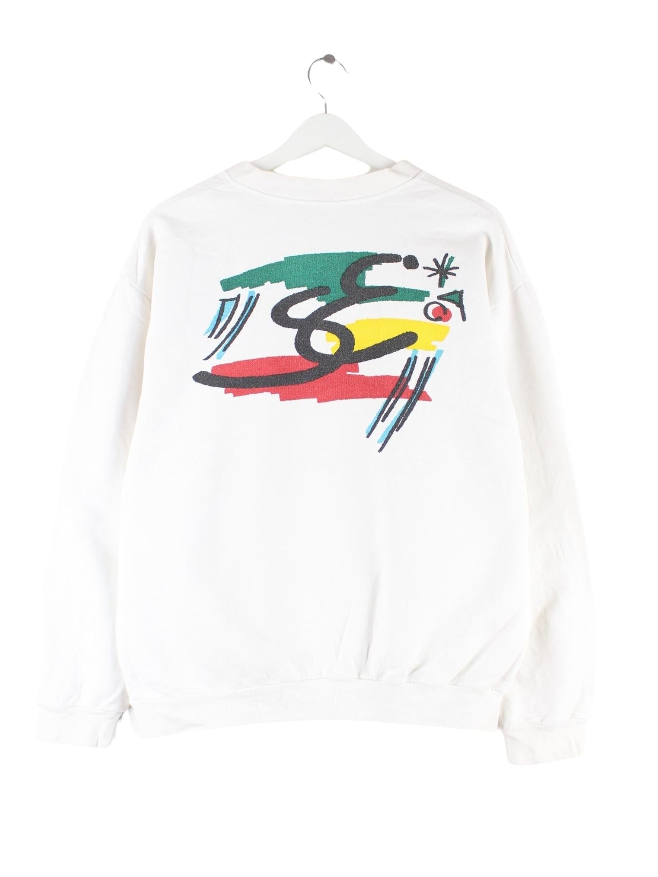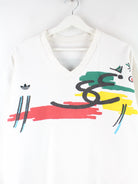 Weißer Sweater der Brand Adidas aus den 80'ern in Größe S. Er ist aus einer Baumwollmischung angefertigt und in sehr gutem Zustand bei uns zu bekommen. Mit tollem Crazy Print.