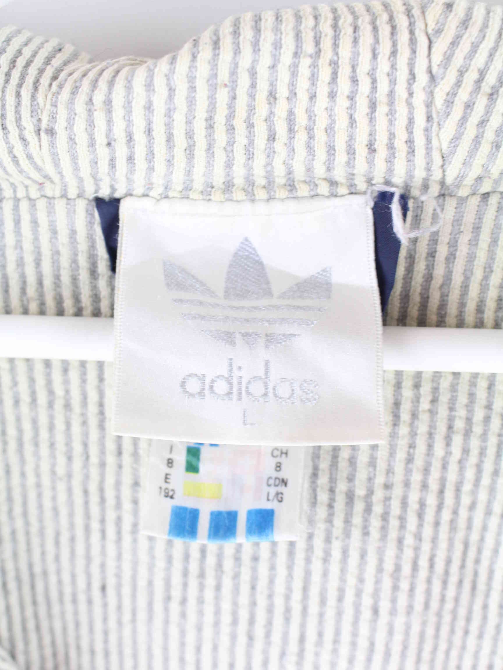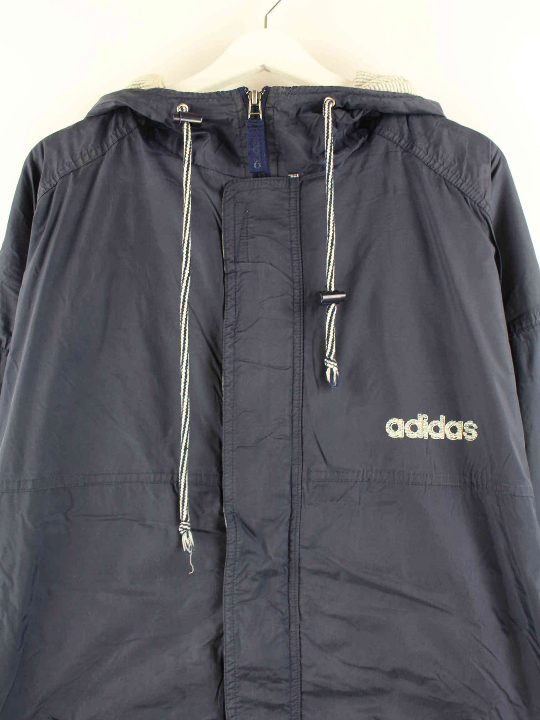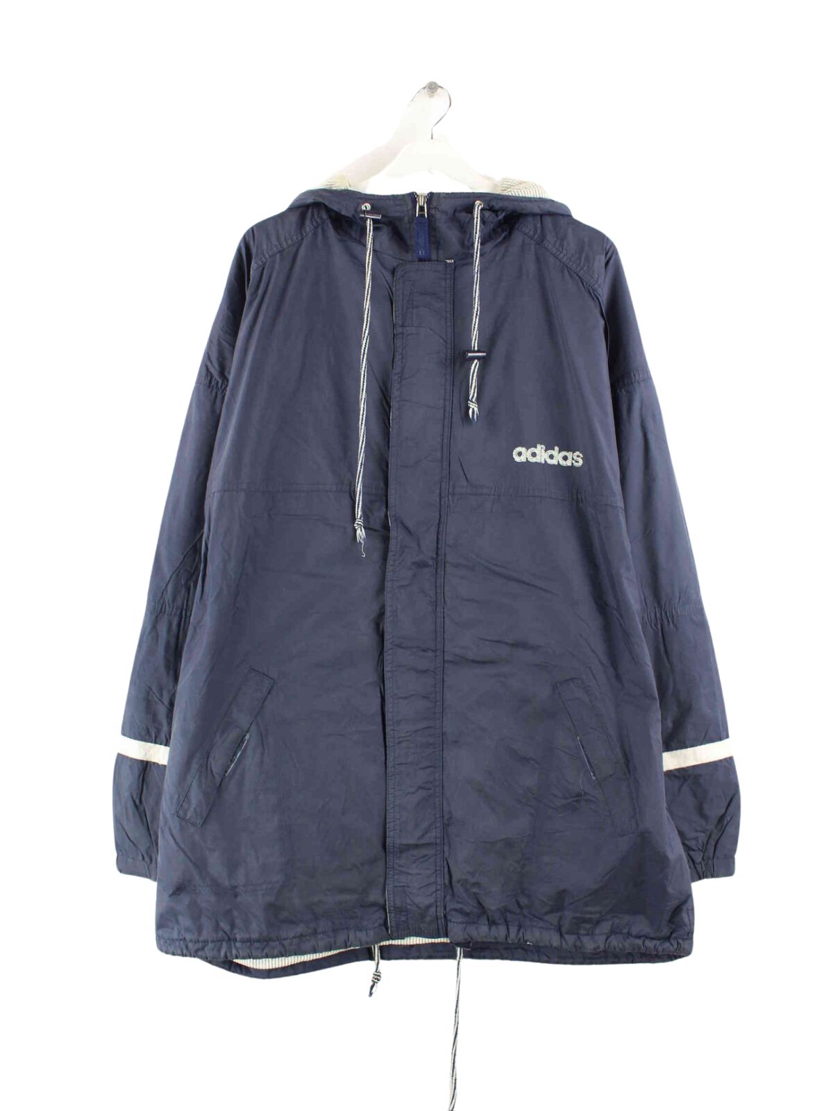 Blue light jacket from the Adidas label from the 80s in size XL. It is made of synthetic material and is in stock in very good condition.