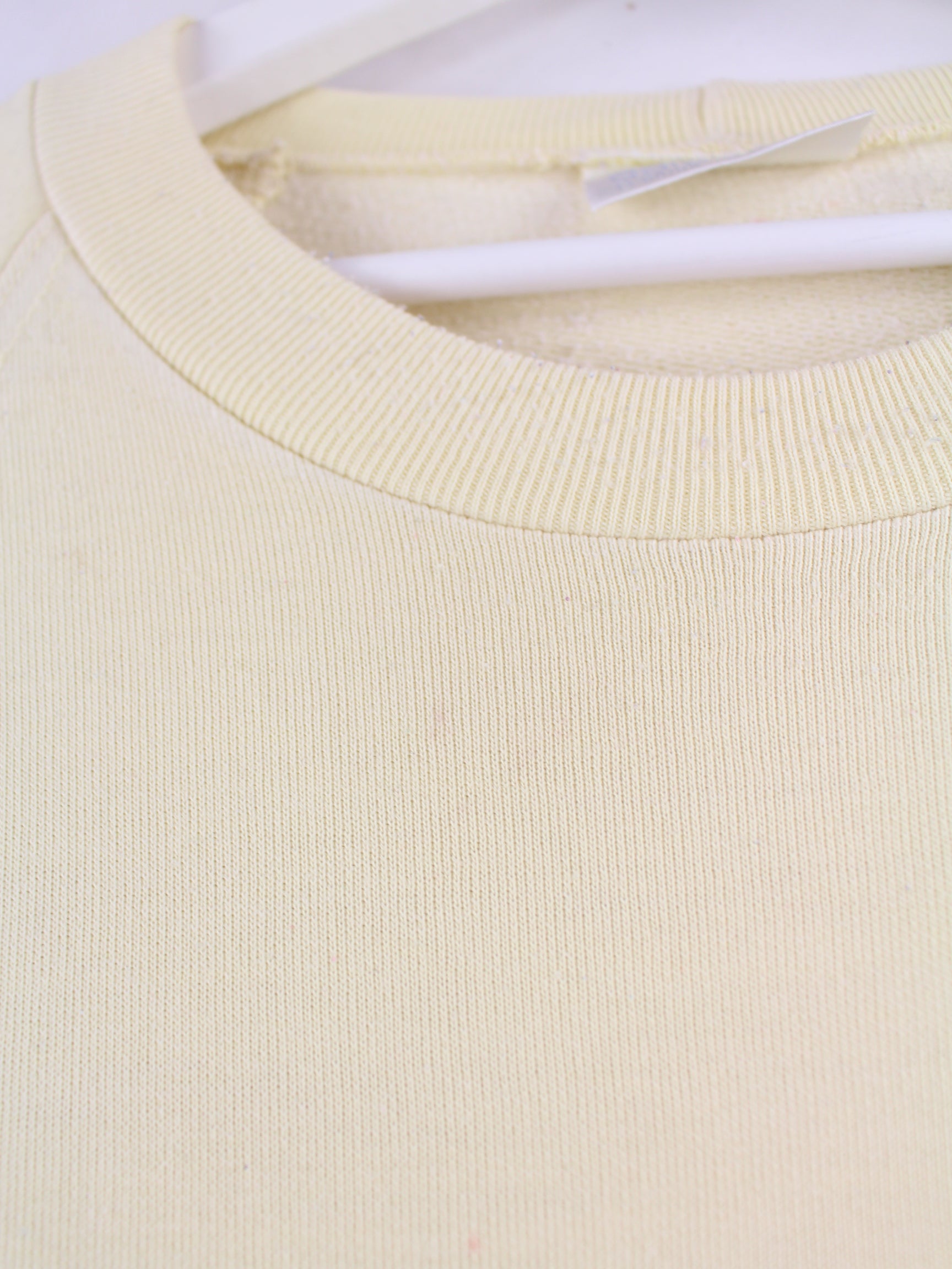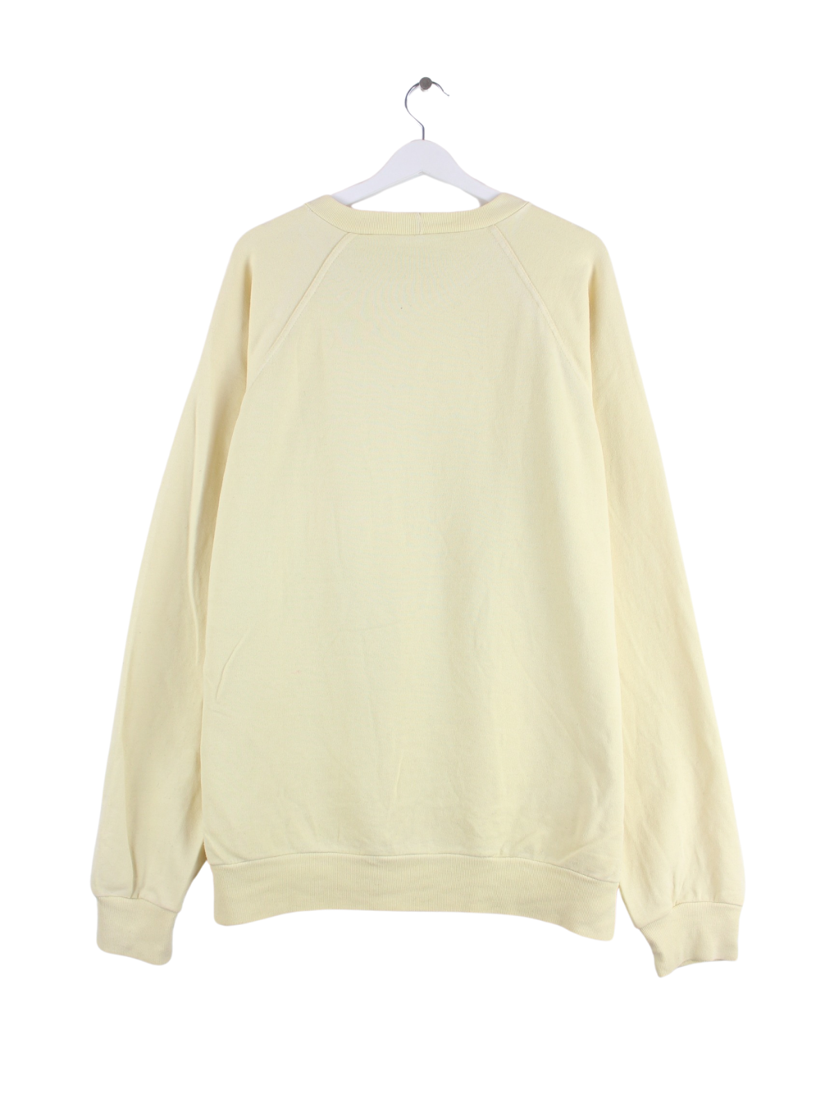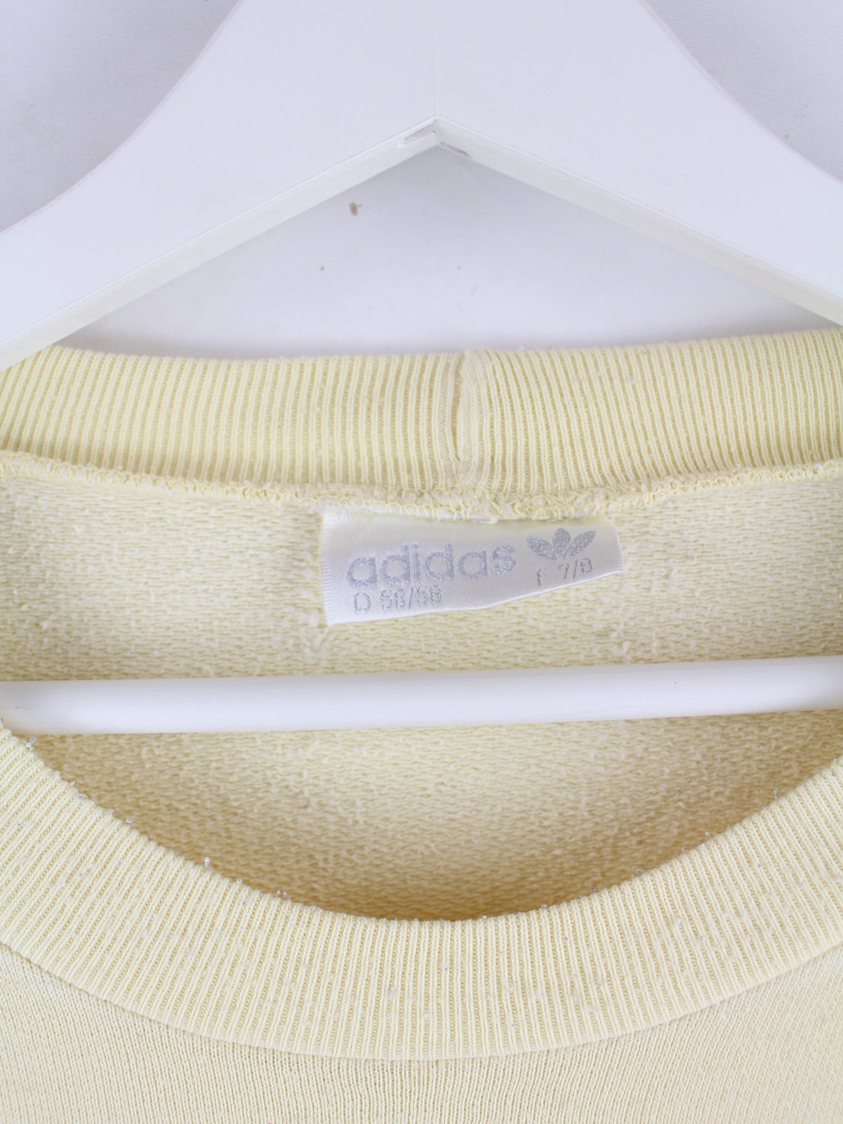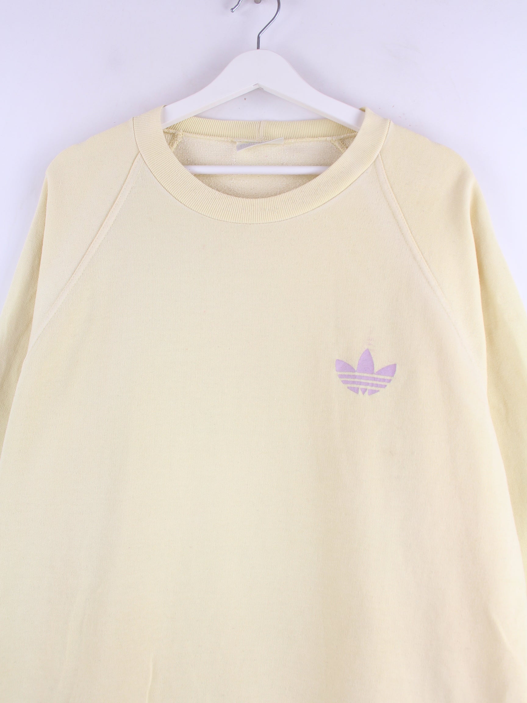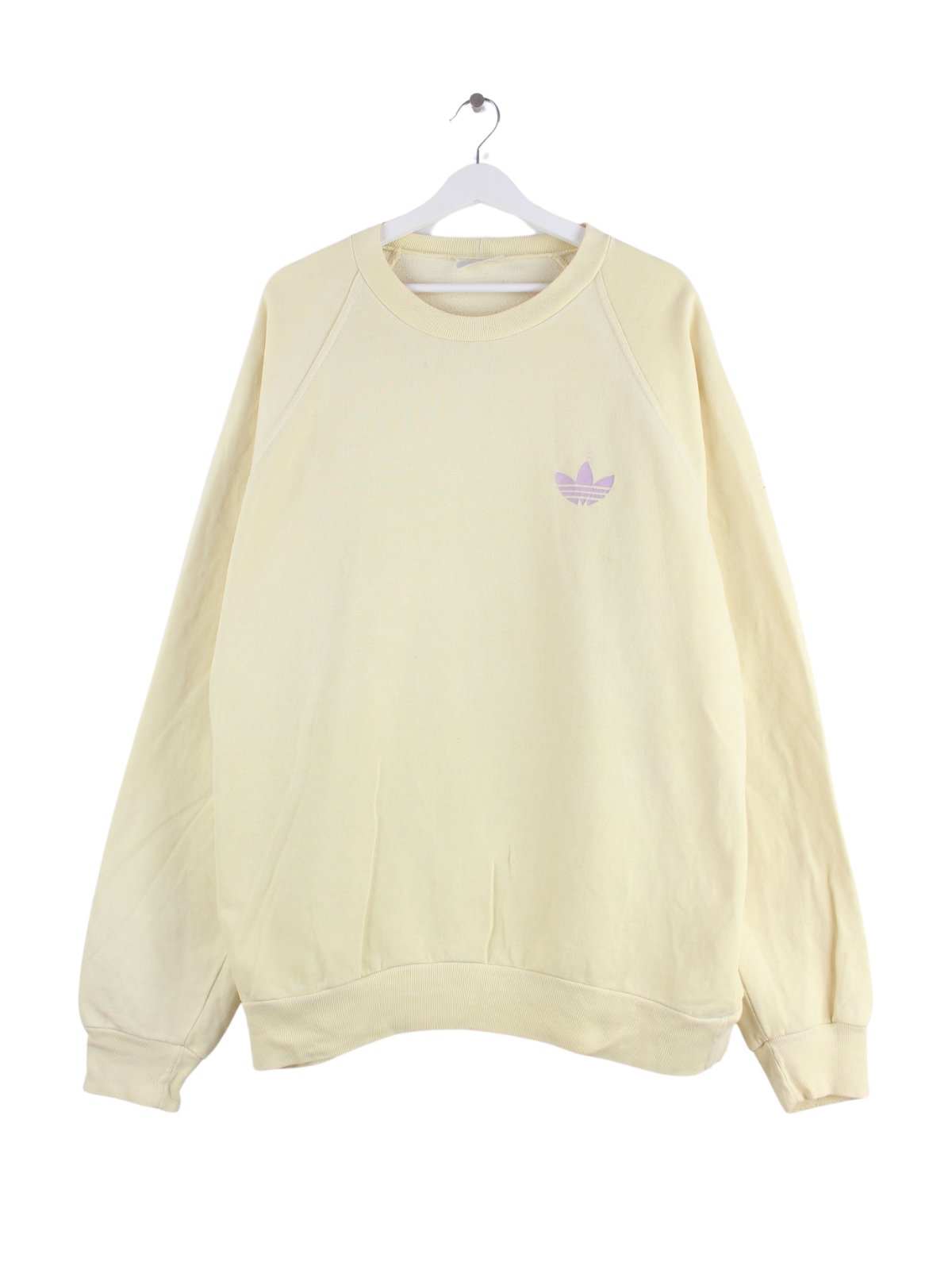 Adidas sweater in size XXL from the 80's. It is made from a cotton blend and is in stock in yellow. With a great Trefoil print.
