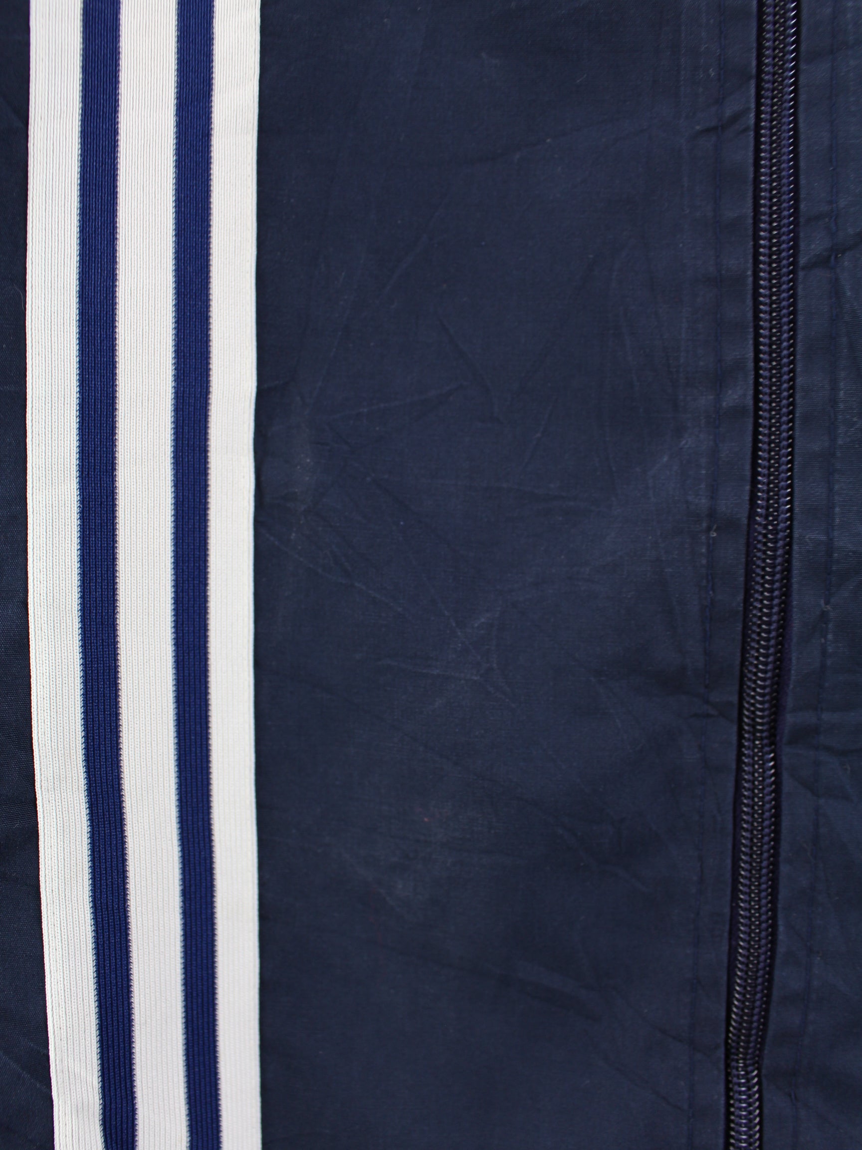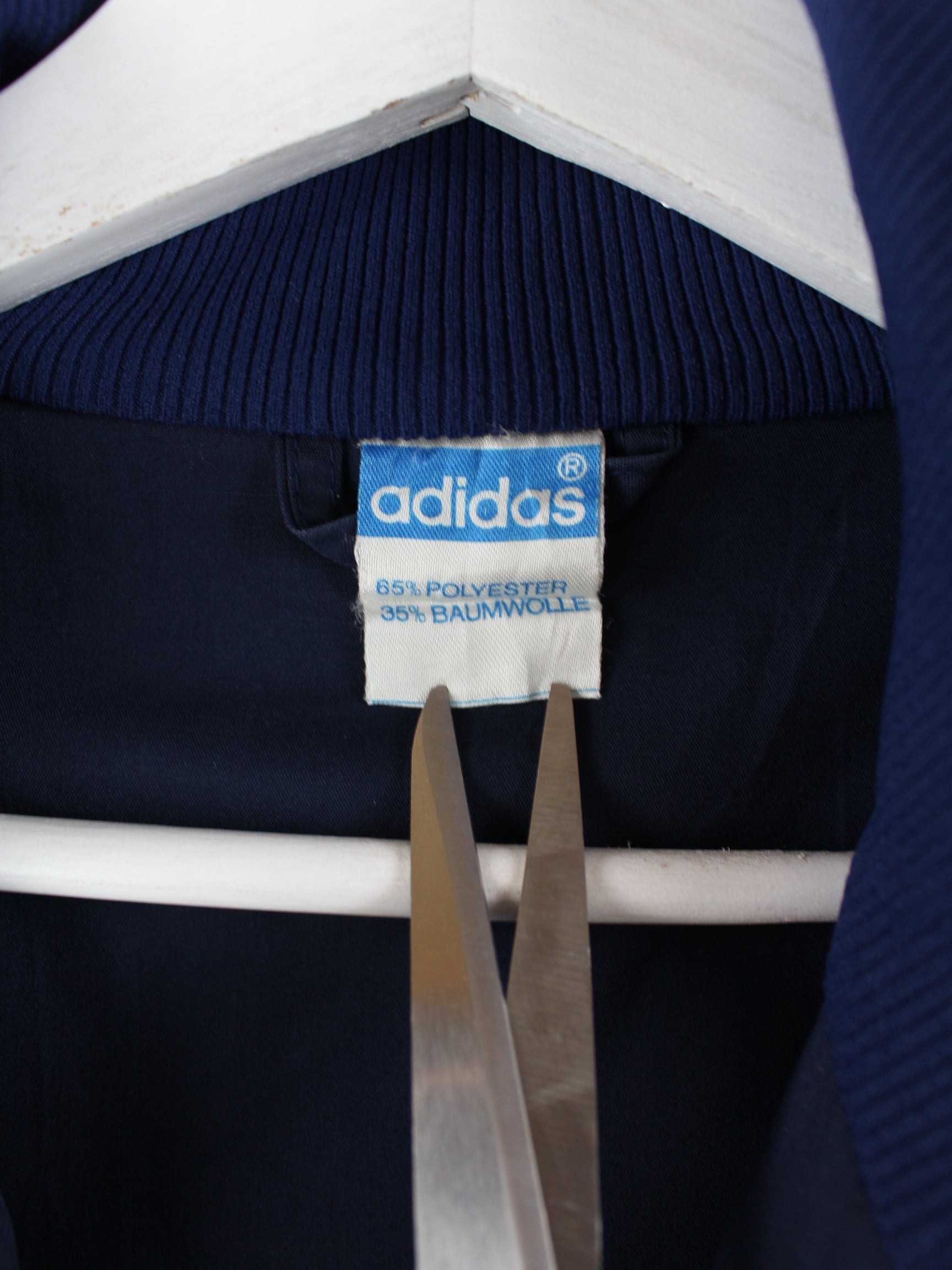 Training jacket from the Adidas brand in size L from the 80s. It is made of synthetic material and is available in blue.