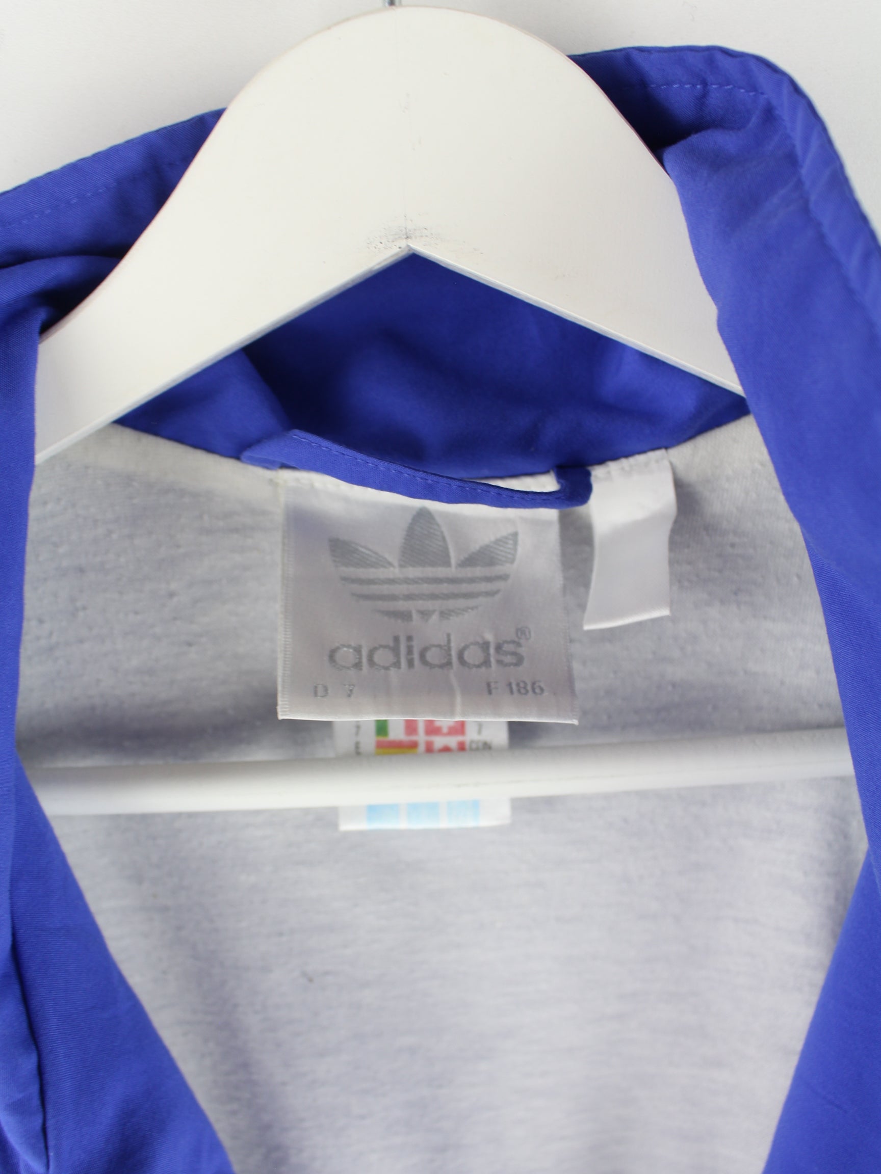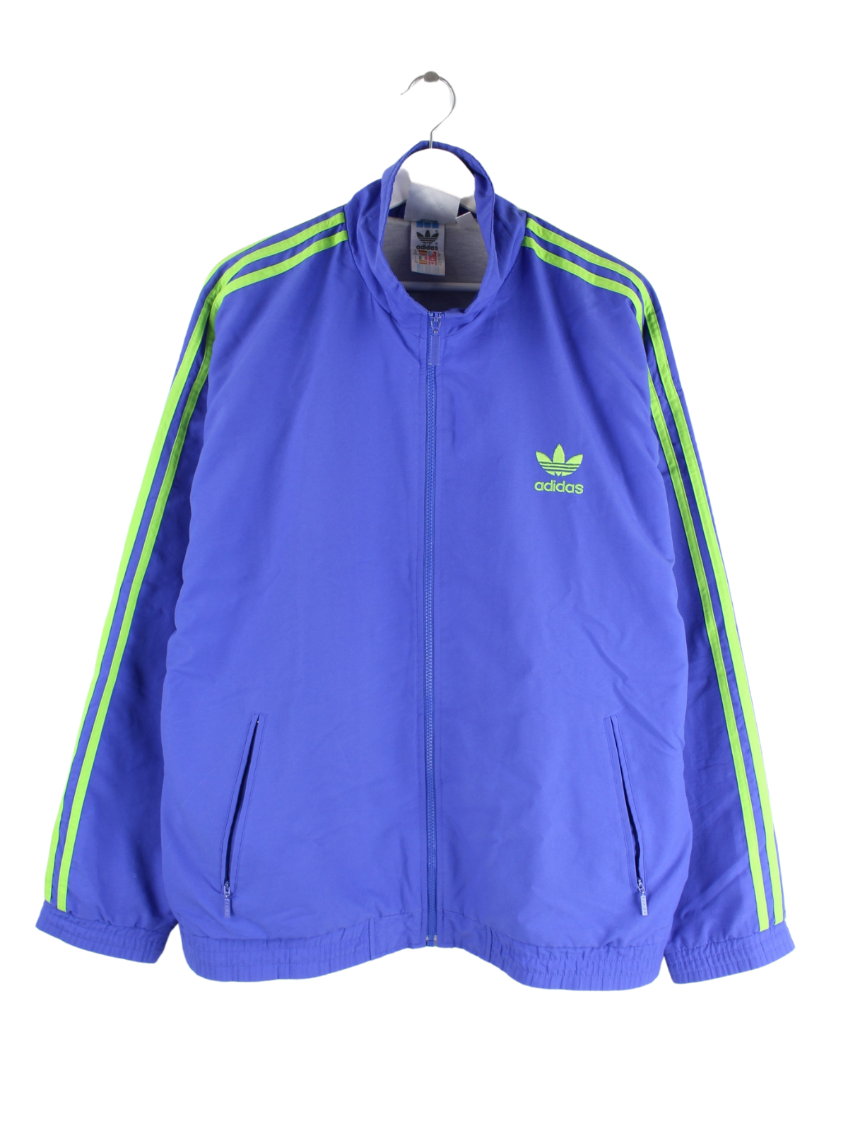 Trainingsjacke von Adidas in Größe XL aus den 90'ern. Sie ist aus Synthetik produziert und in Blau lieferbar.