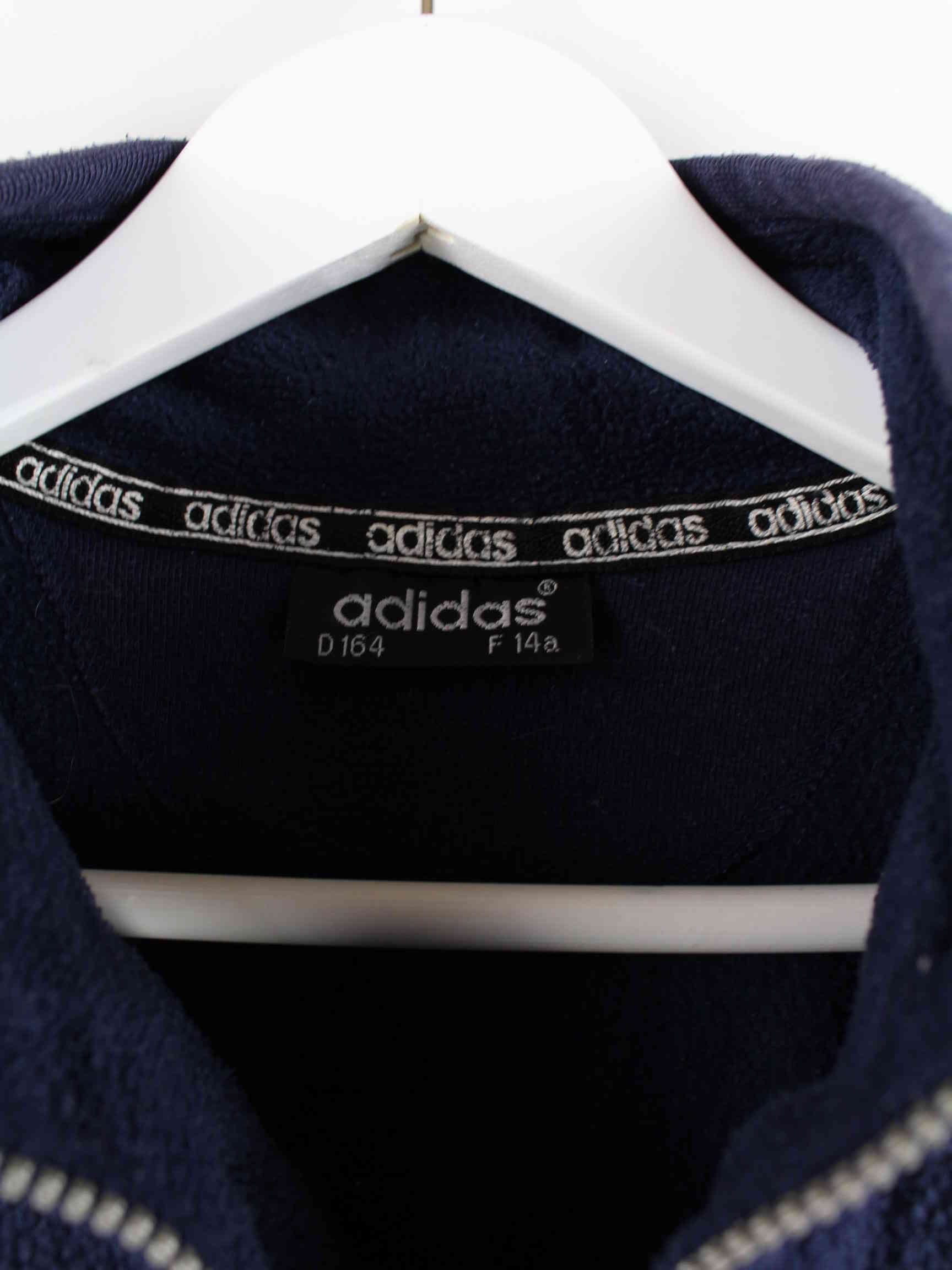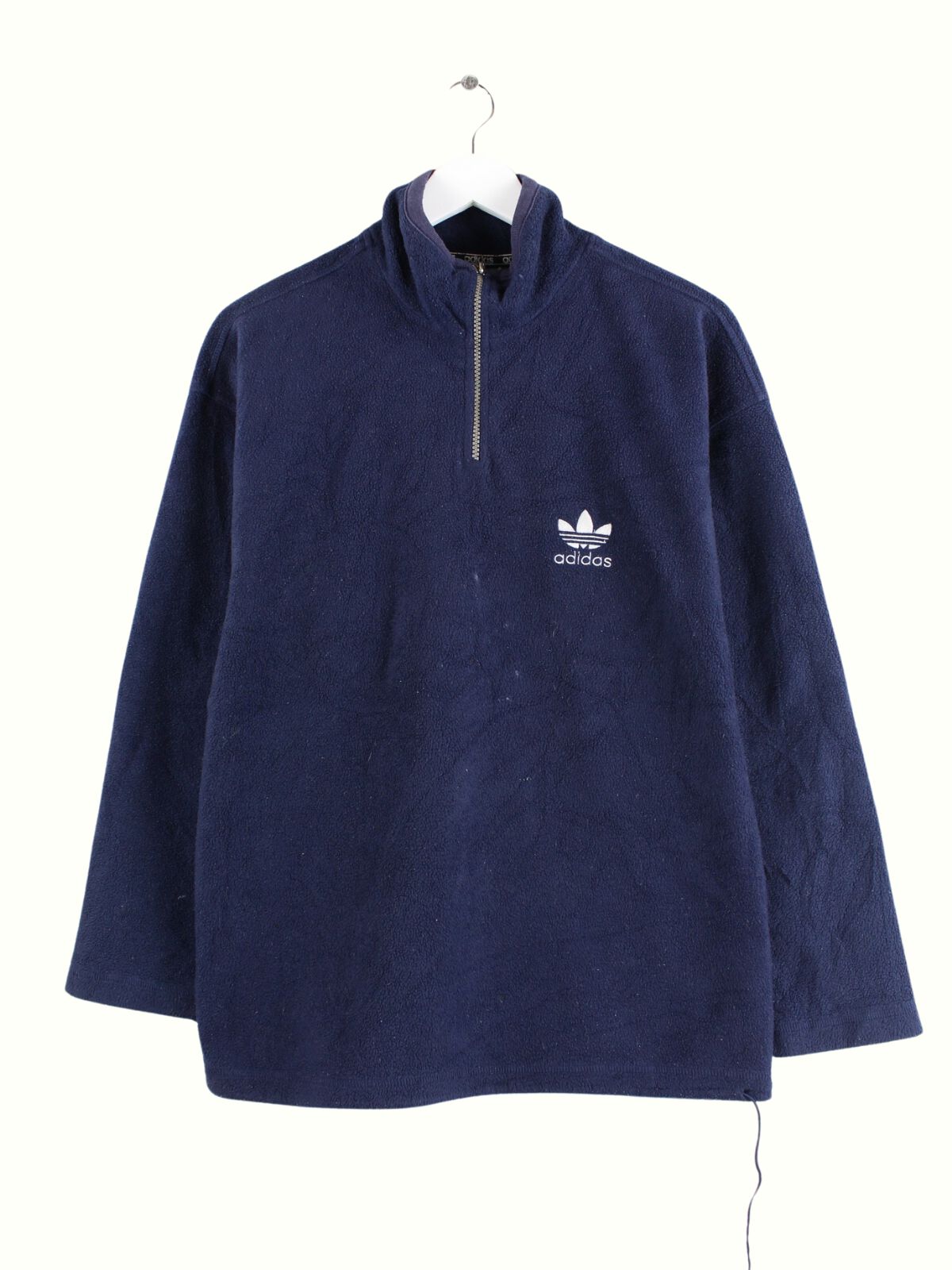 Adidas brand sweater with a short zipper in size M from the 90s. It is made of cozy fleece and is available in blue.