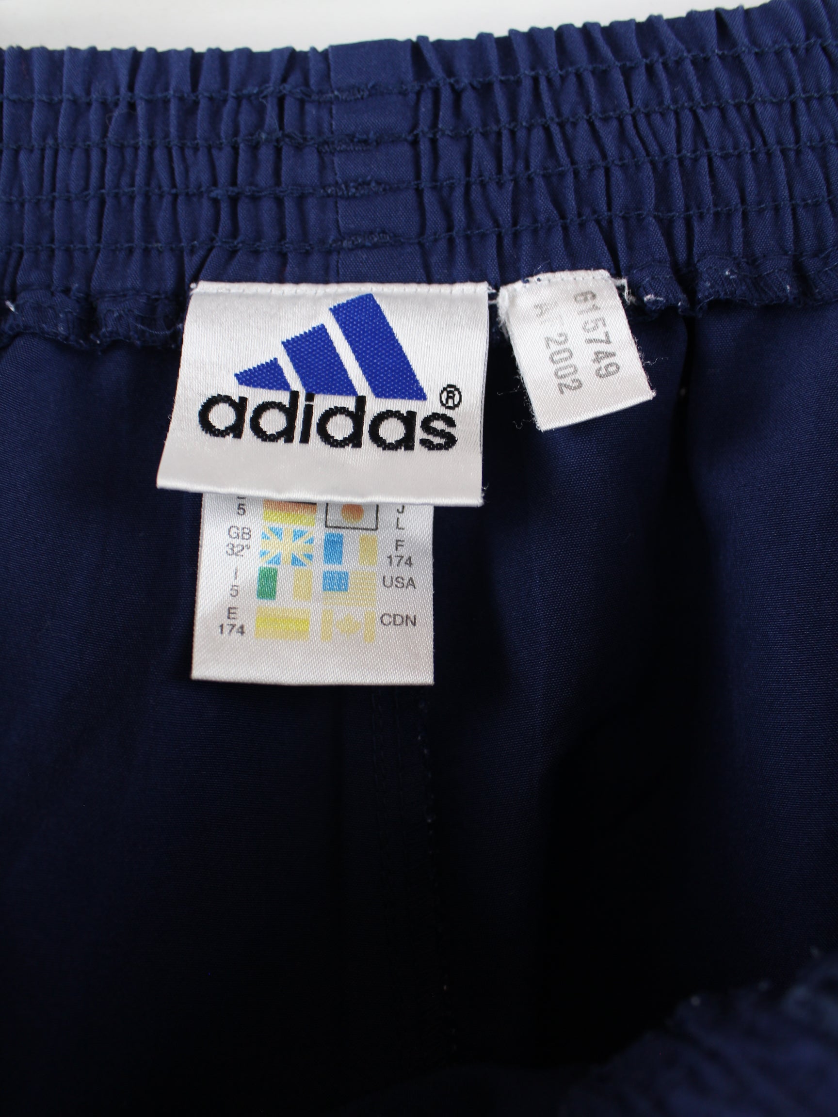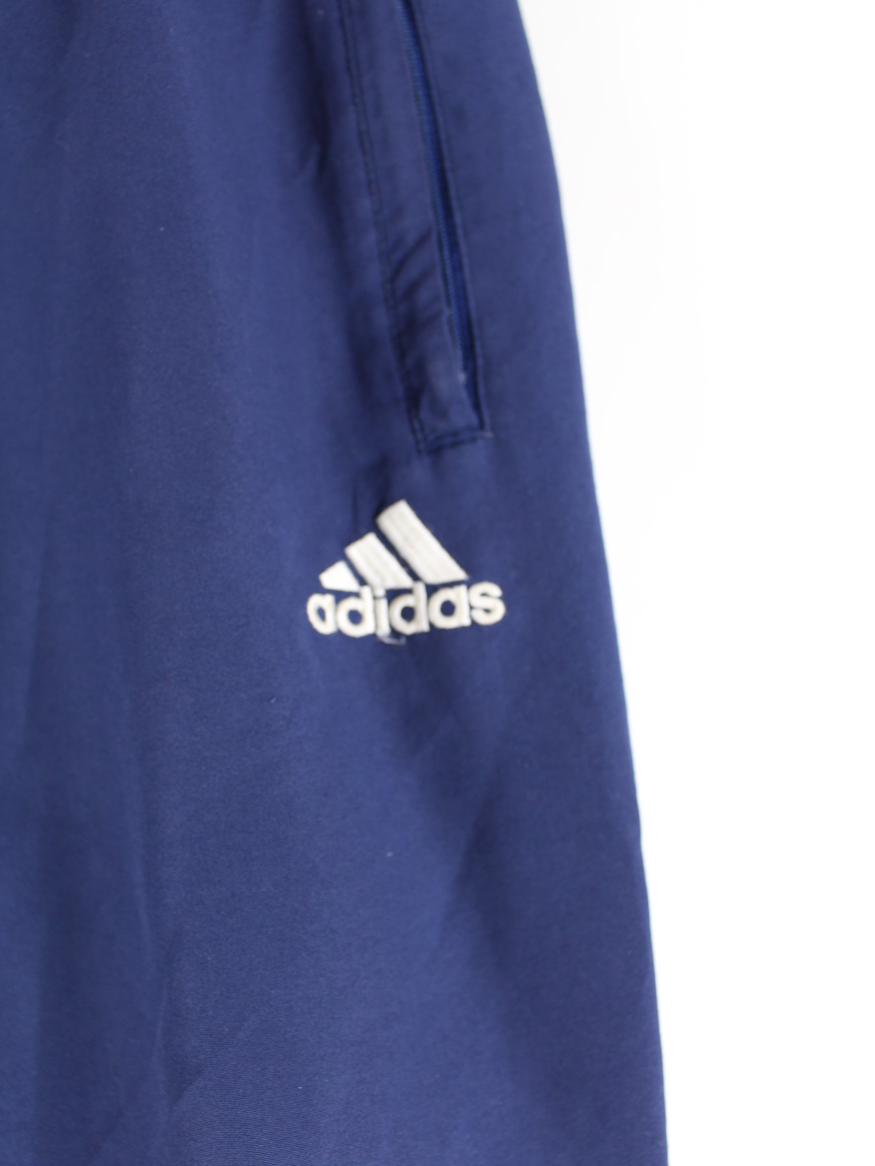 Track pants from the Adidas label in size S from the 90's. They are made of synthetic material and are in stock in blue.