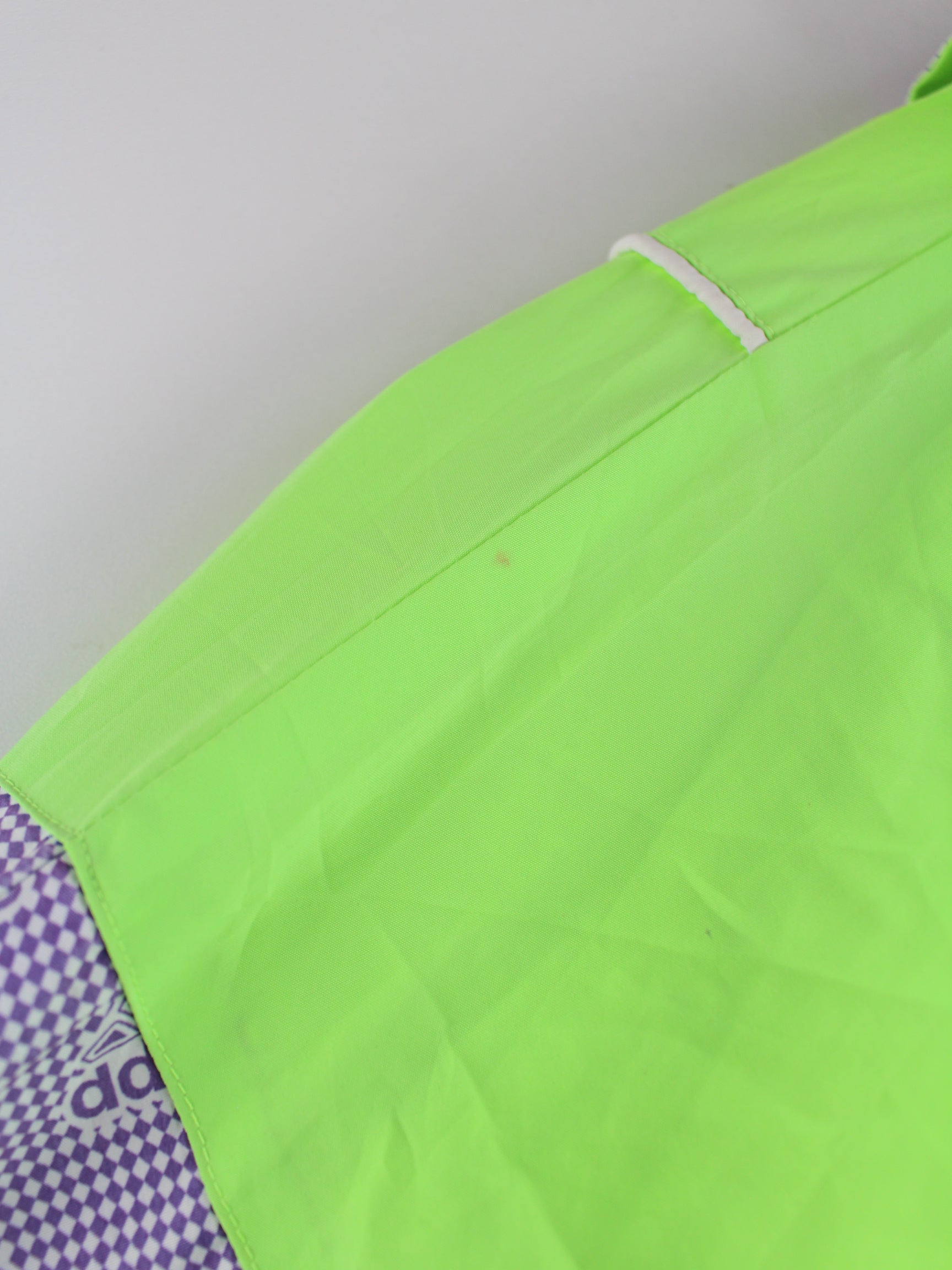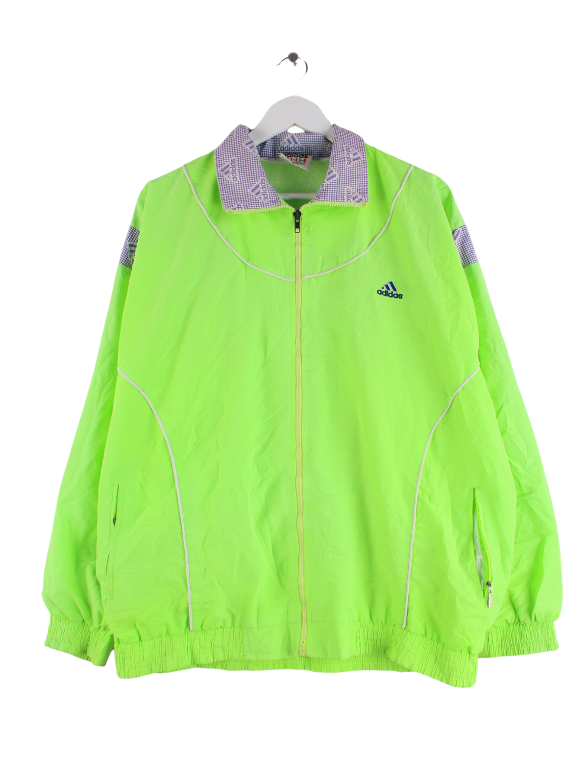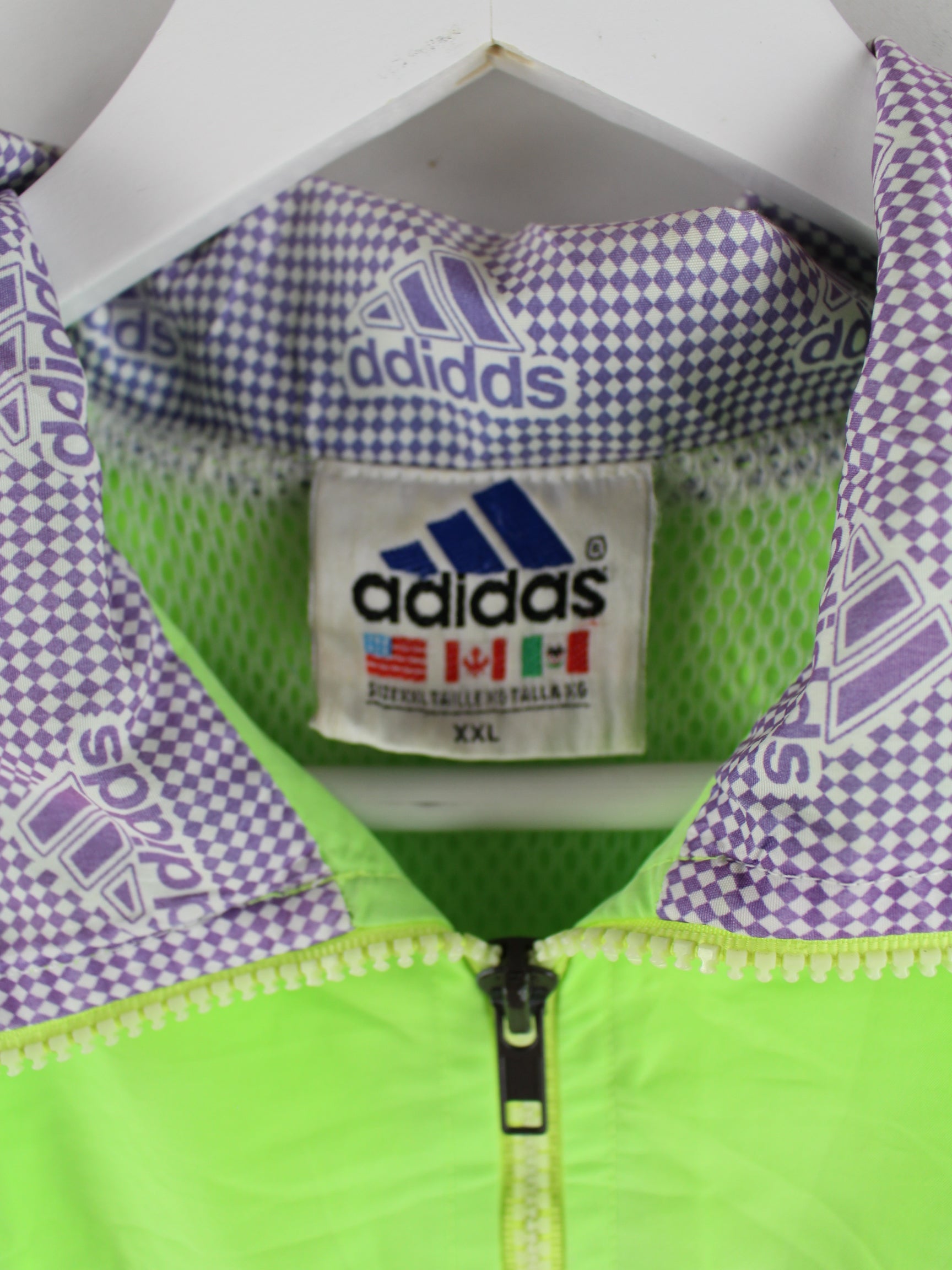Training jacket from the Adidas label in size XL from the 90's. It is made of synthetic material and is available from us in green.