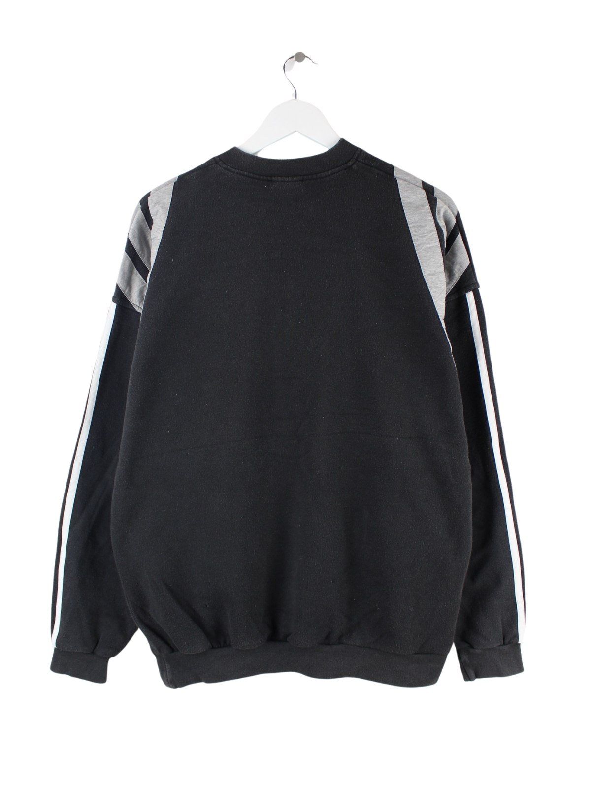 Sweater vom Brand Adidas in Größe XL aus den 90'ern. Er ist aus einer Baumwollmischung und in Schwarz zu haben.