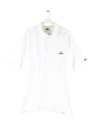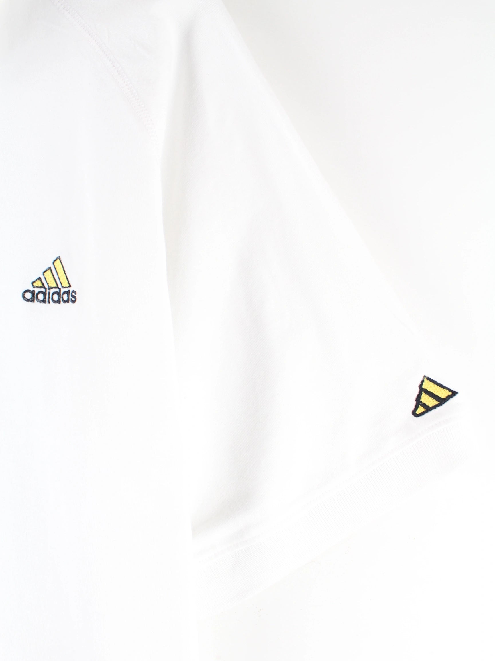 Poloshirt des Labels Adidas in Größe XXL aus den 90'ern. Es ist aus Baumwolle gefertigt und in Weiß in Stock.