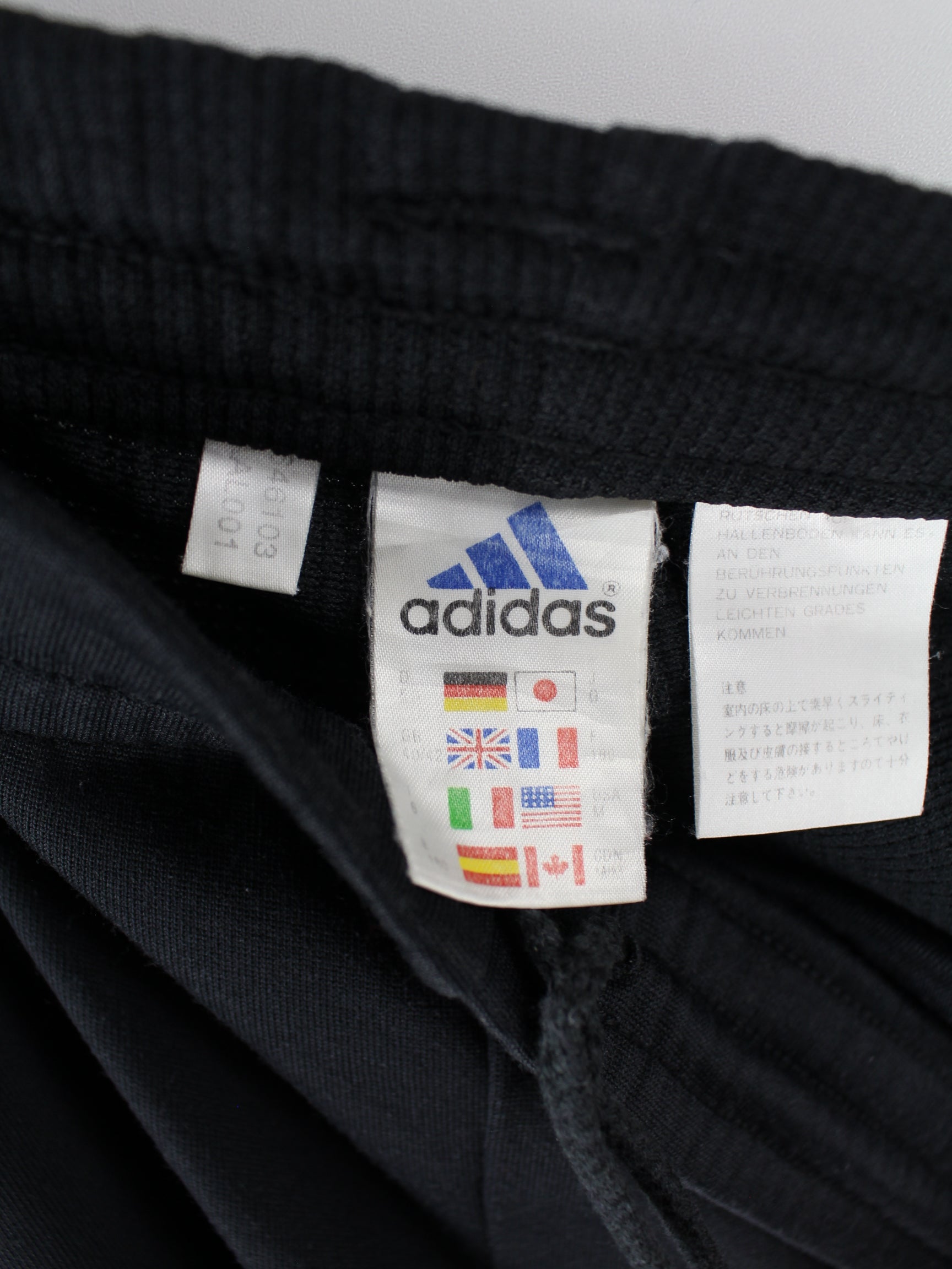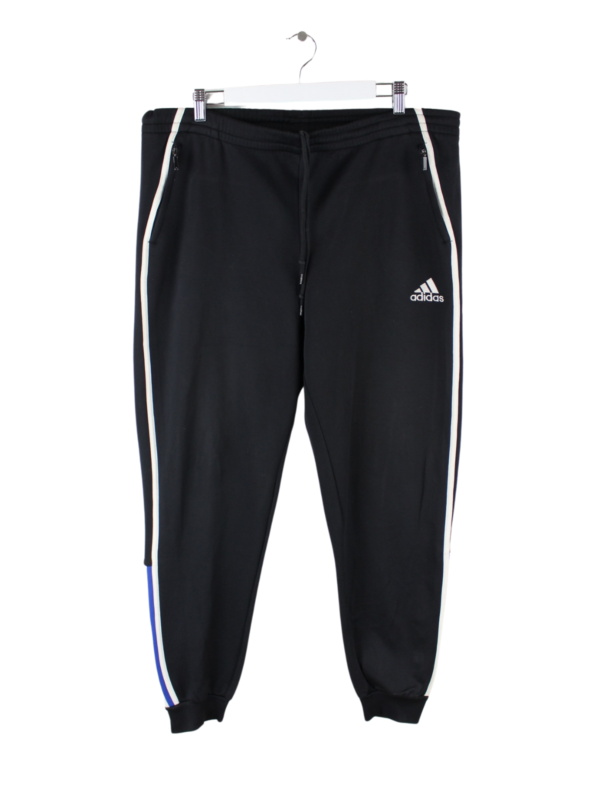 Schwarze Track Pants vom Label Adidas aus den 90'ern in Größe XL. Sie sind aus Synthetik hergestellt und in sehr gutem Zustand zu bekommen.