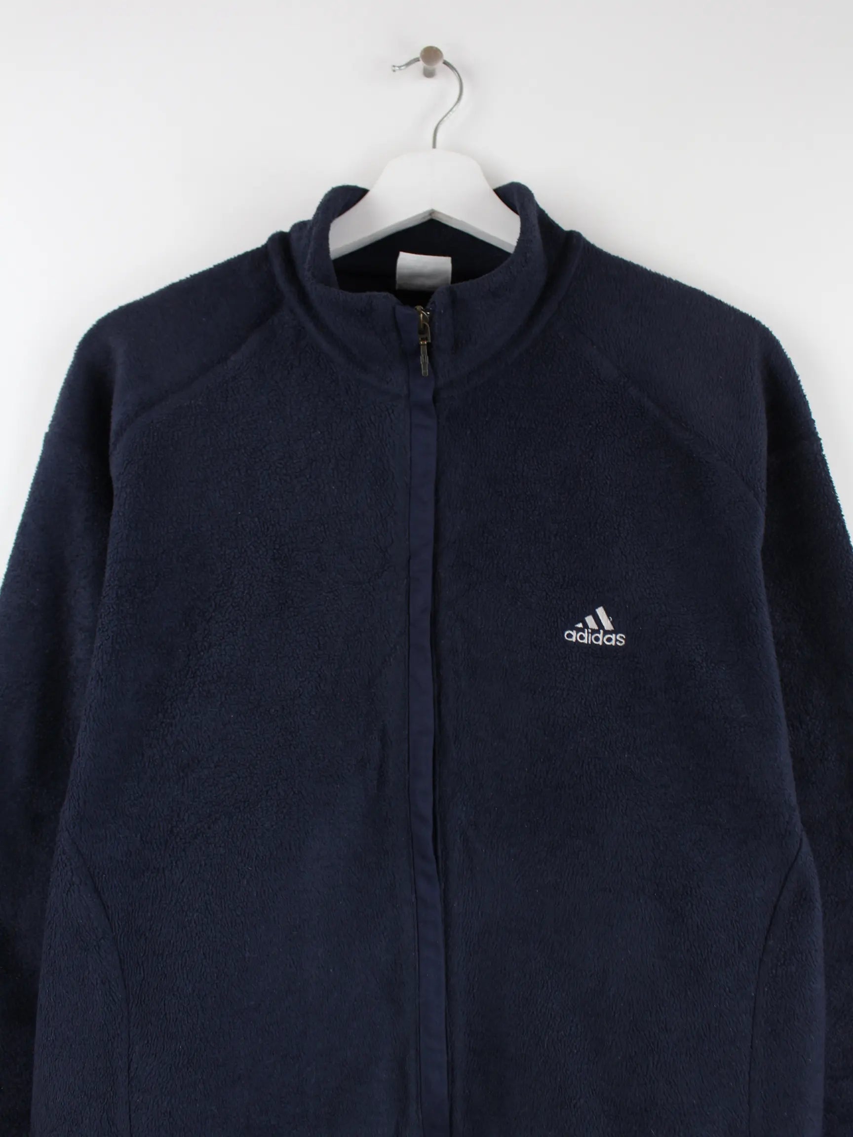 Leichte Jacke der Brand Adidas in Größe L. Sie ist aus behaglichem Fleece gefertigt und in Blau bei uns zu bekommen.