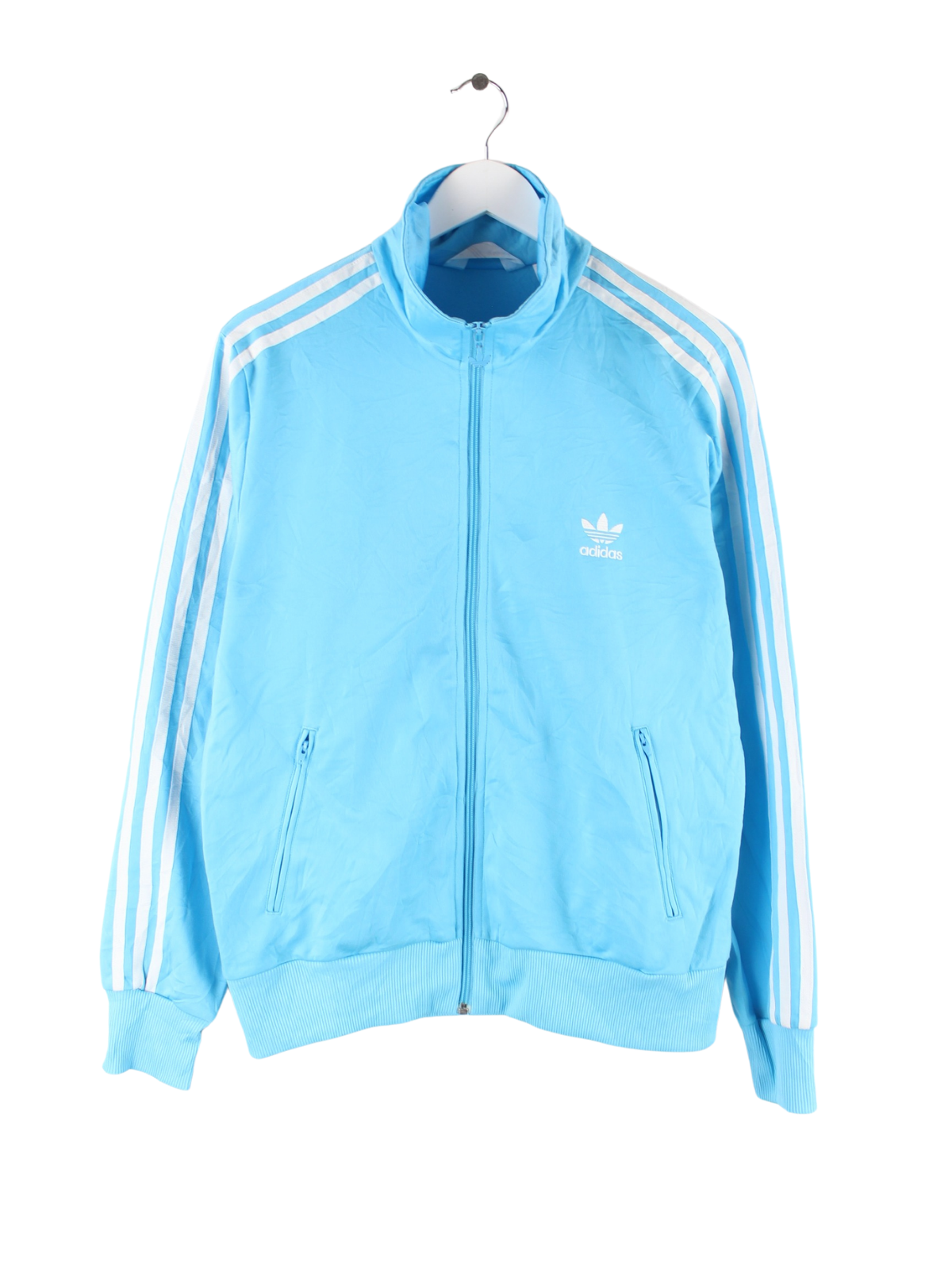 Trainingsjacke des Labels Adidas in Größe L. Sie ist aus Synthetik und in Blau in Stock.