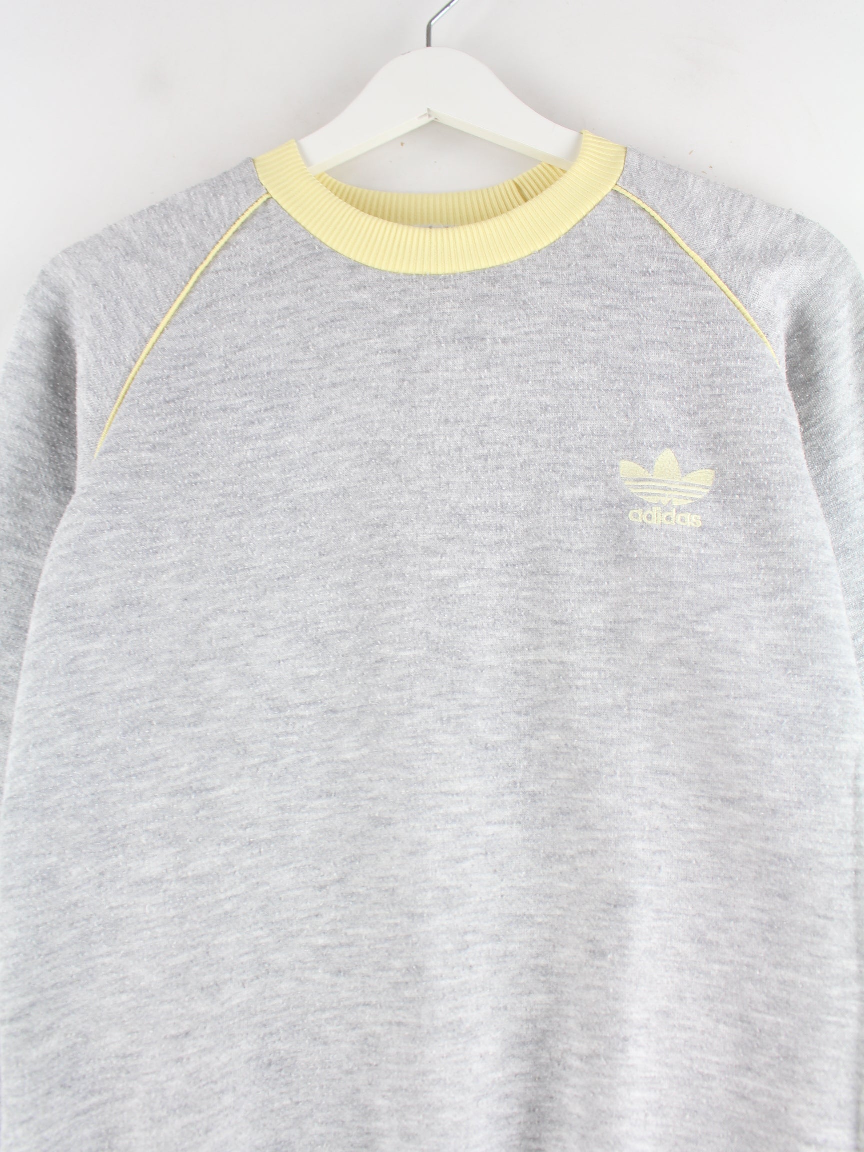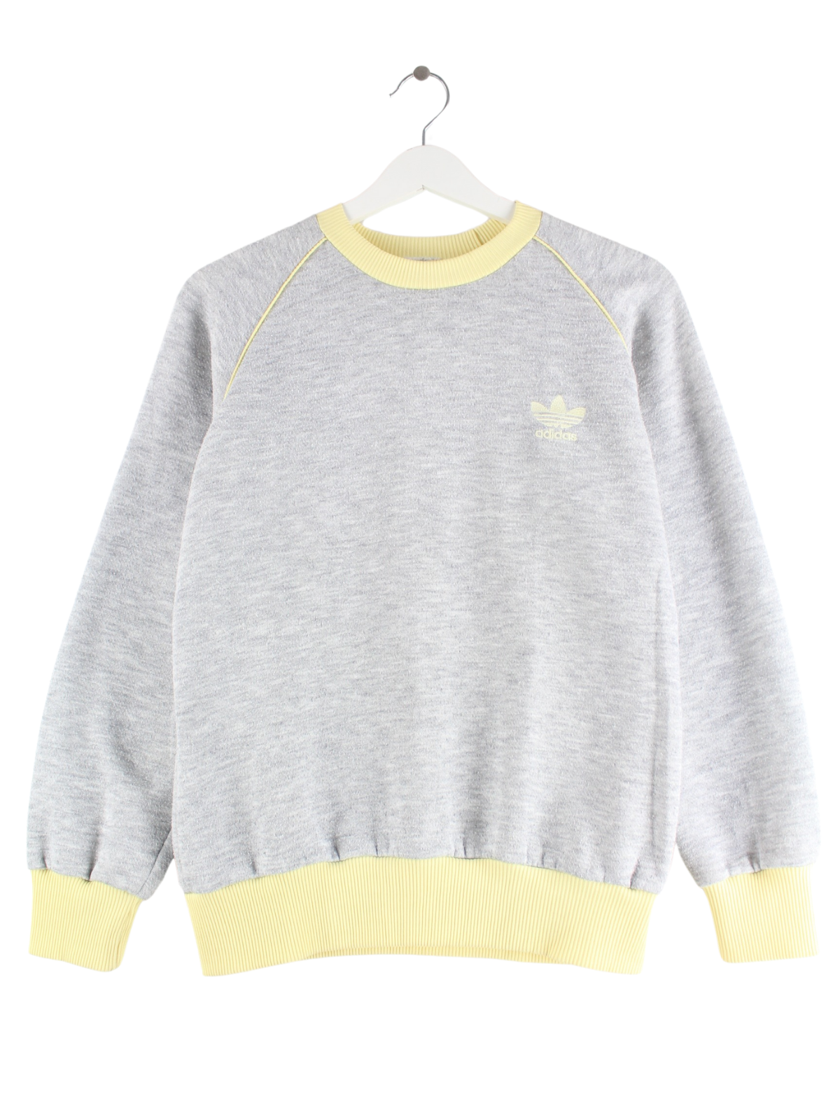 Grauer Sweater aus dem Hause Adidas aus den 80'ern in Größe XS. Er ist aus einer Baumwollmischung gemacht und in gutem Zustand zu bekommen.