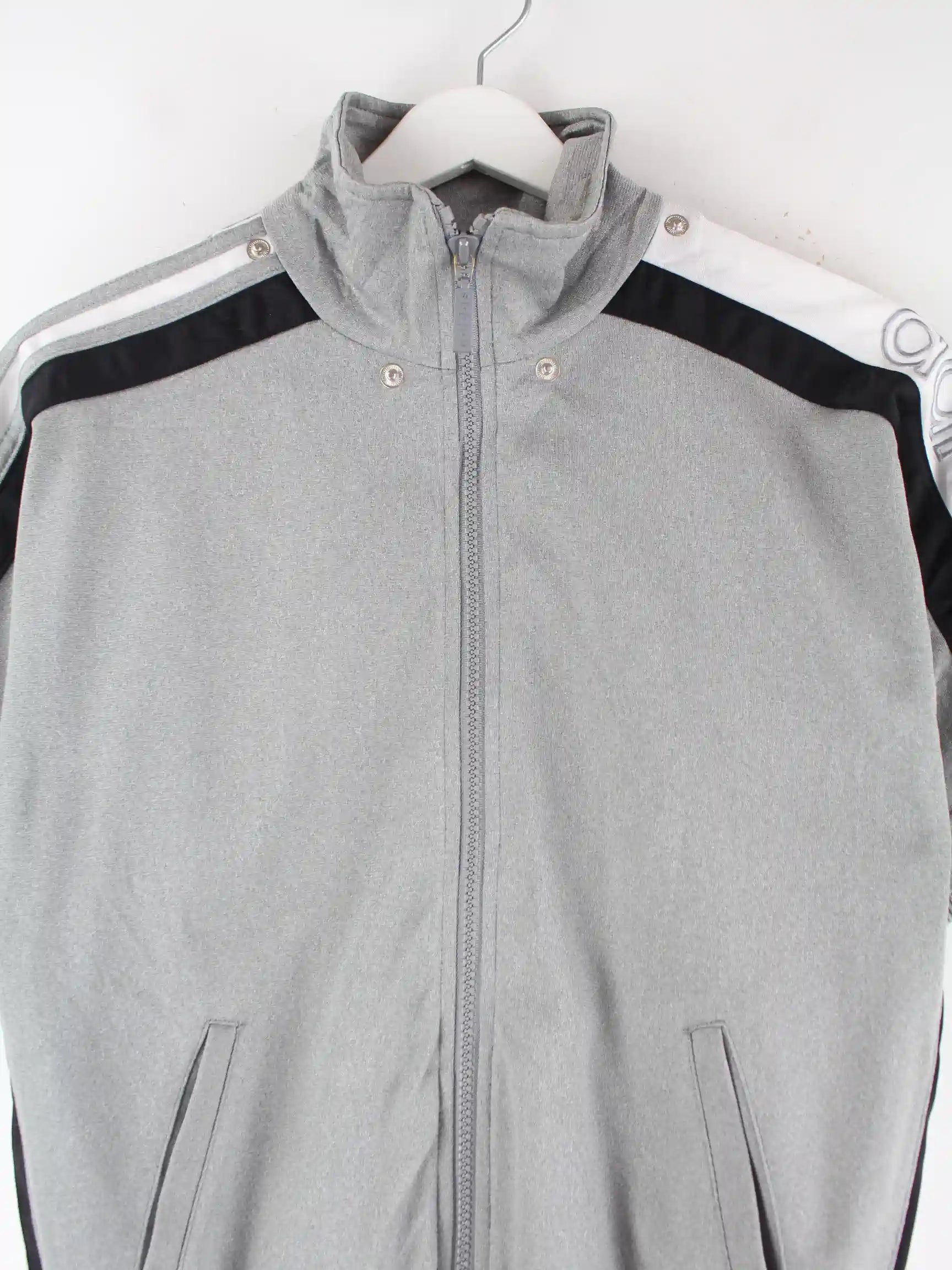 Trainingsjacke aus dem Hause Adidas in Größe S aus den 90'ern. Sie ist aus Synthetik und in Grau bei uns vorrätig.