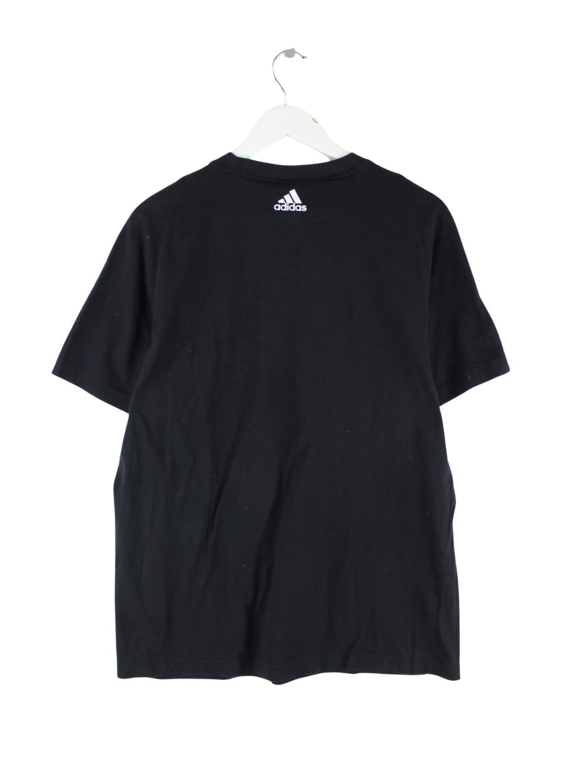 T-Shirt aus dem Hause Adidas in Größe L. Es ist aus Baumwolle angefertigt und in Schwarz im Angebot. Mit tollem Logo Print.