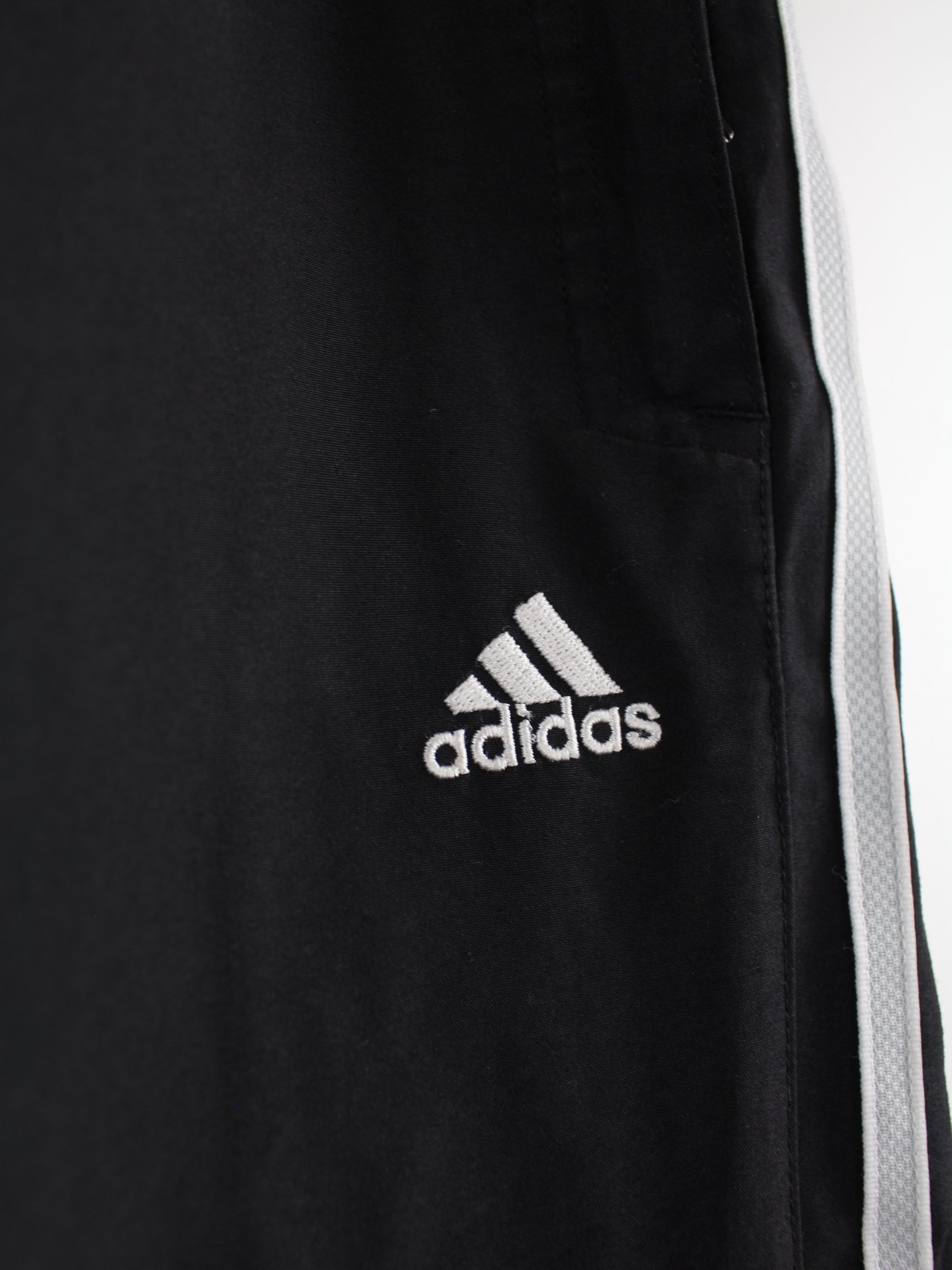 Track pants from Adidas in size L. They are made of synthetic material and come in black.
