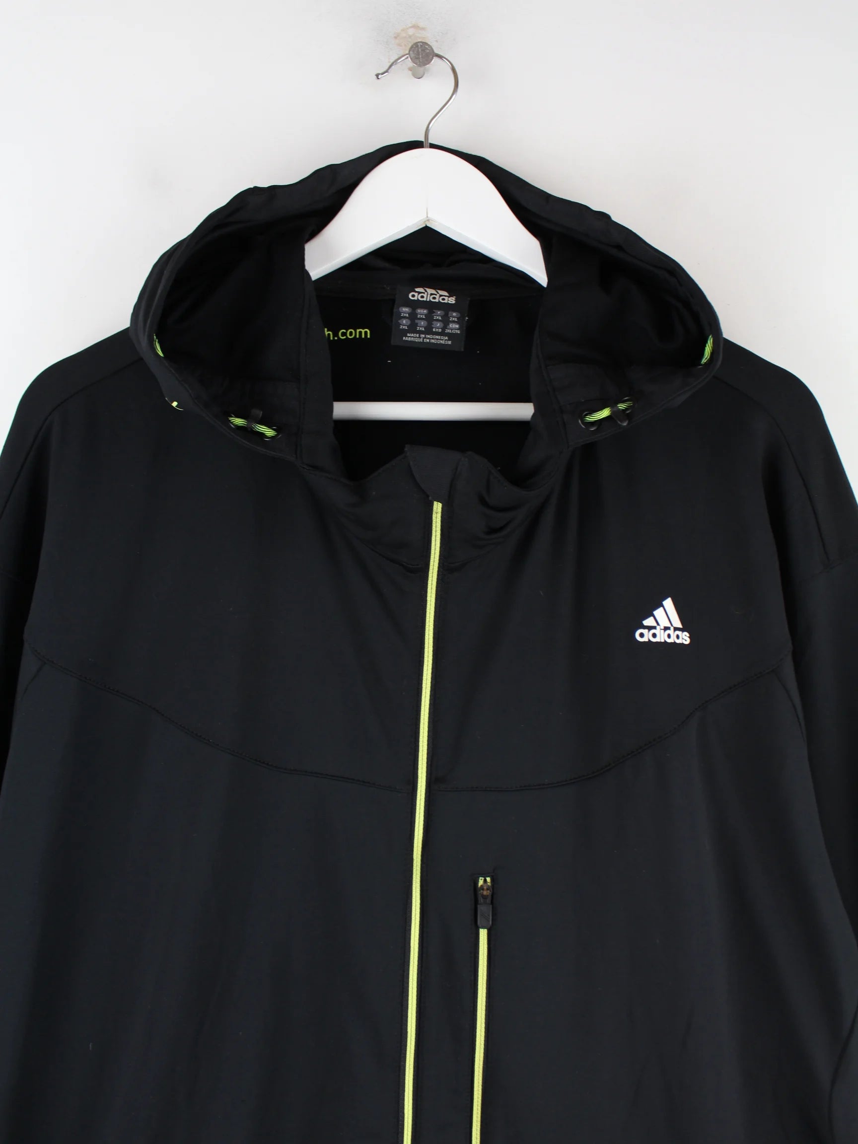 Trainingsjacke vom Brand Adidas in Größe XXL. Sie ist aus Synthetik hergestellt und in Schwarz im Bestand.