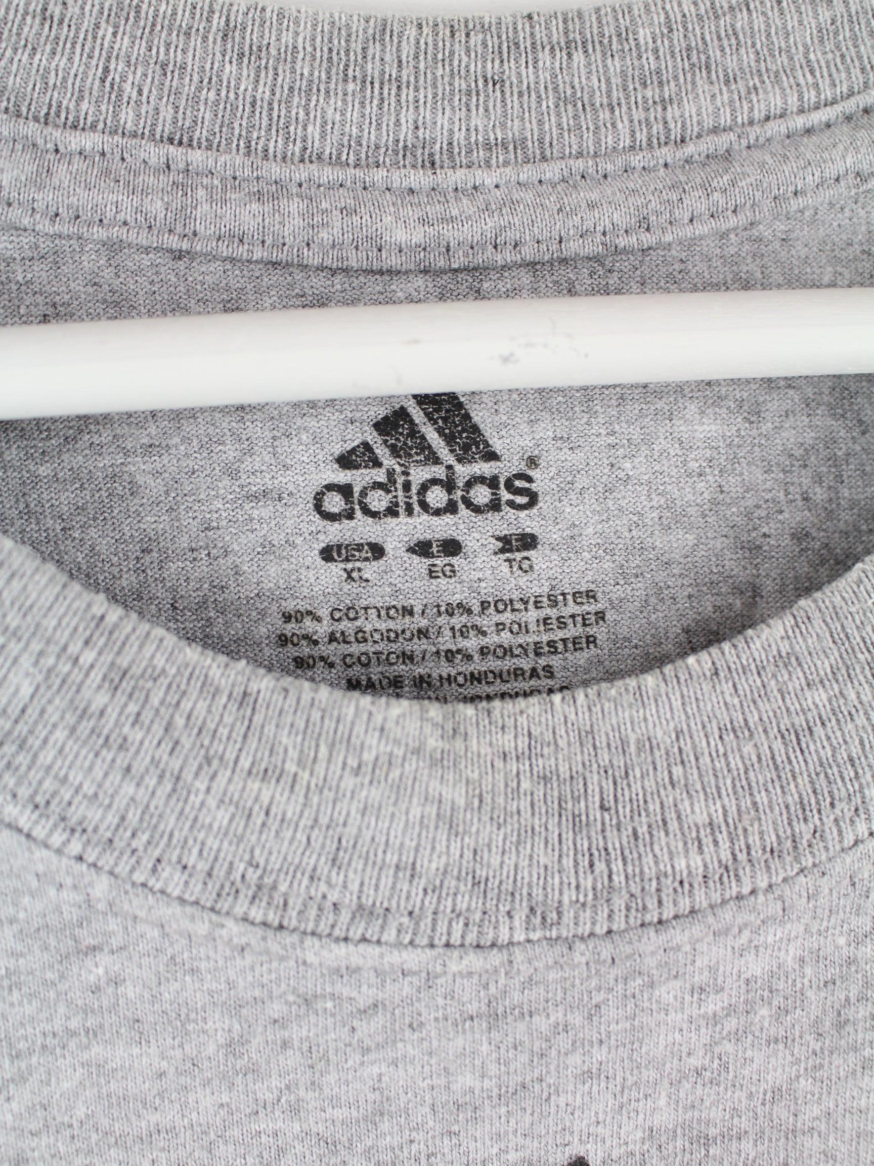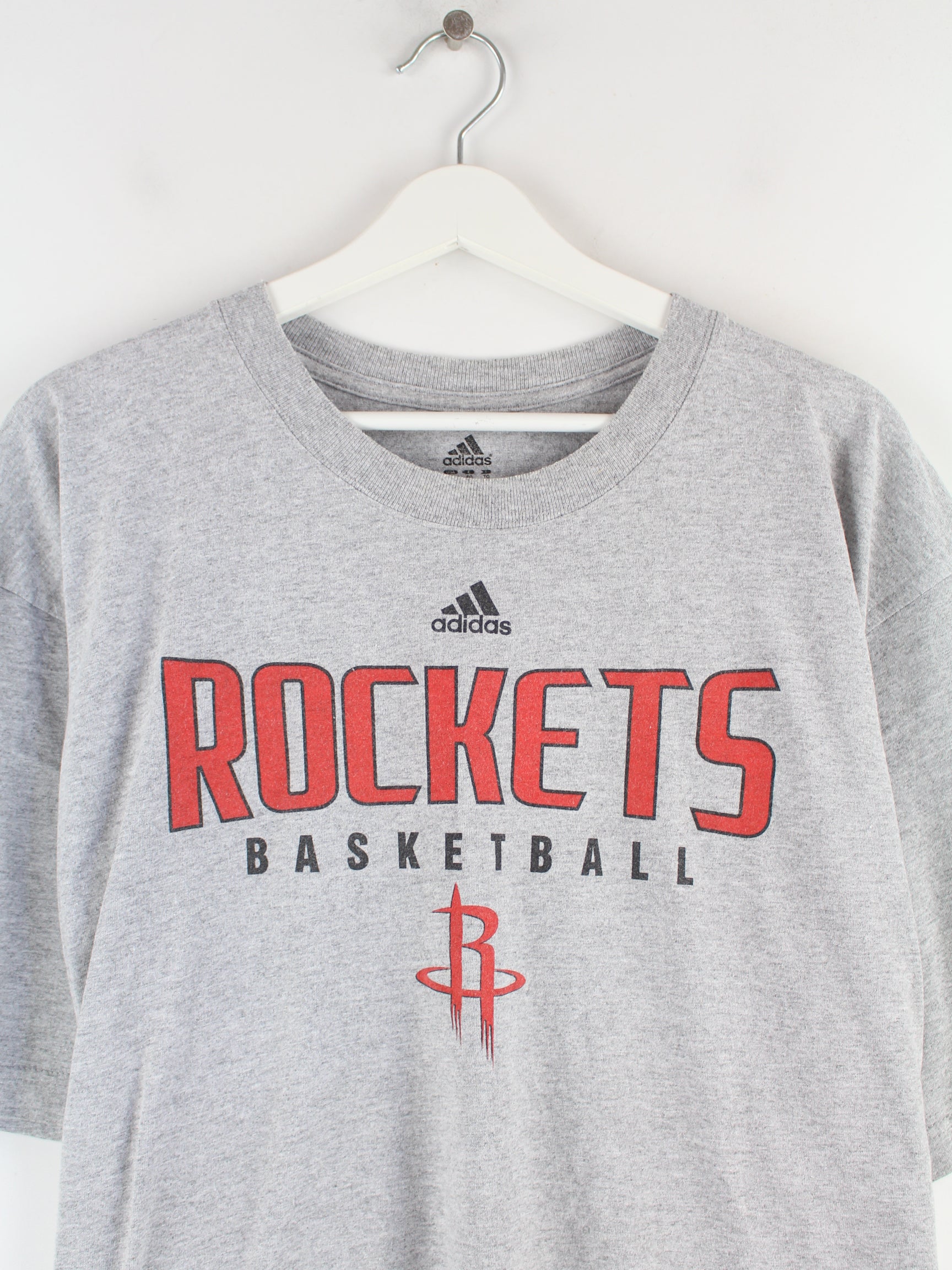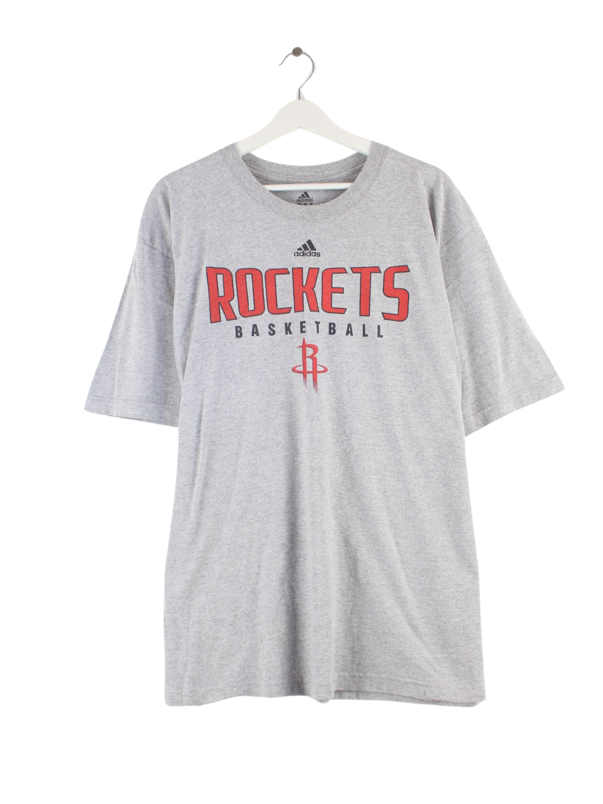 Grey T-shirt from the brand Adidas in size XL. It is made from a cotton blend and is in very good condition. With a chic Rockets print.