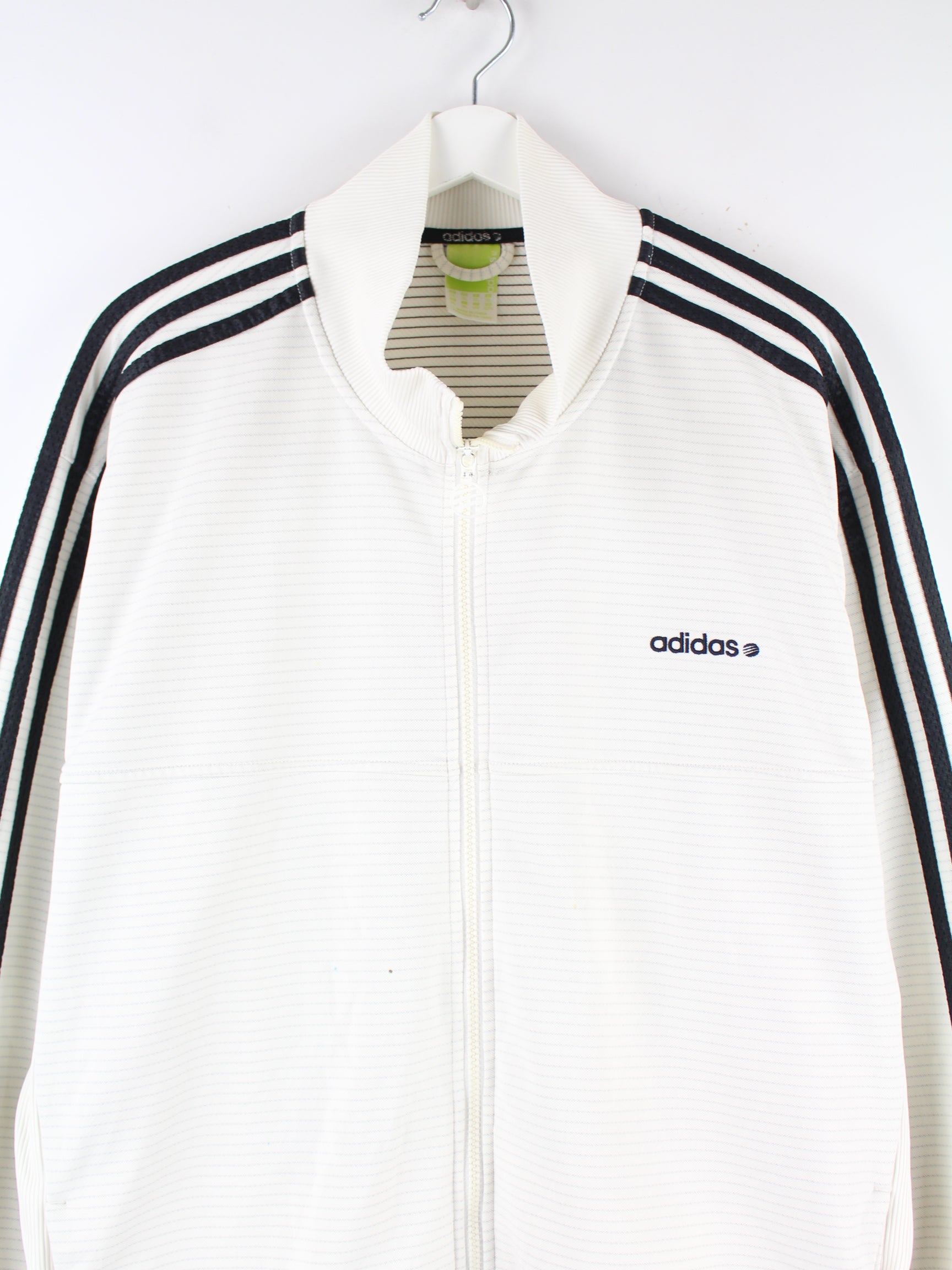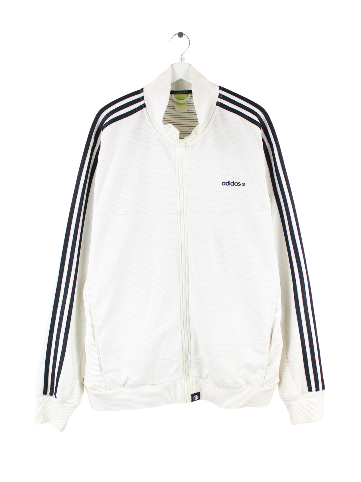 Beigefarbene Trainingsjacke der Marke Adidas in Größe XXL. Sie ist aus Synthetik produziert. Den Zustand würden wir als 'In Ordnung' bezeichnen (vergl. Bilder).