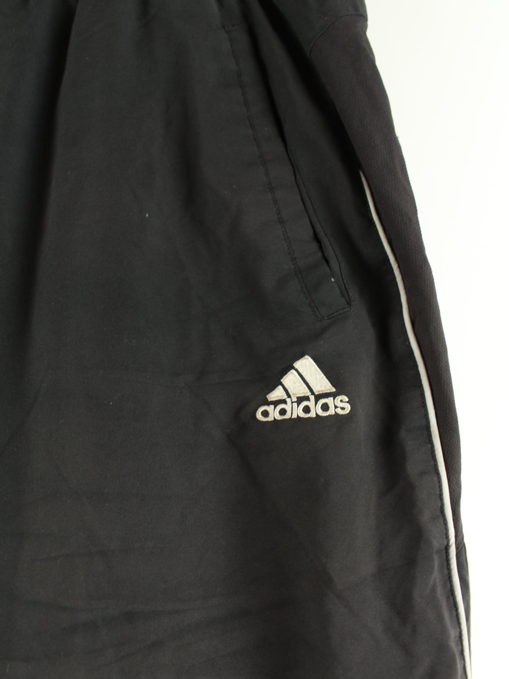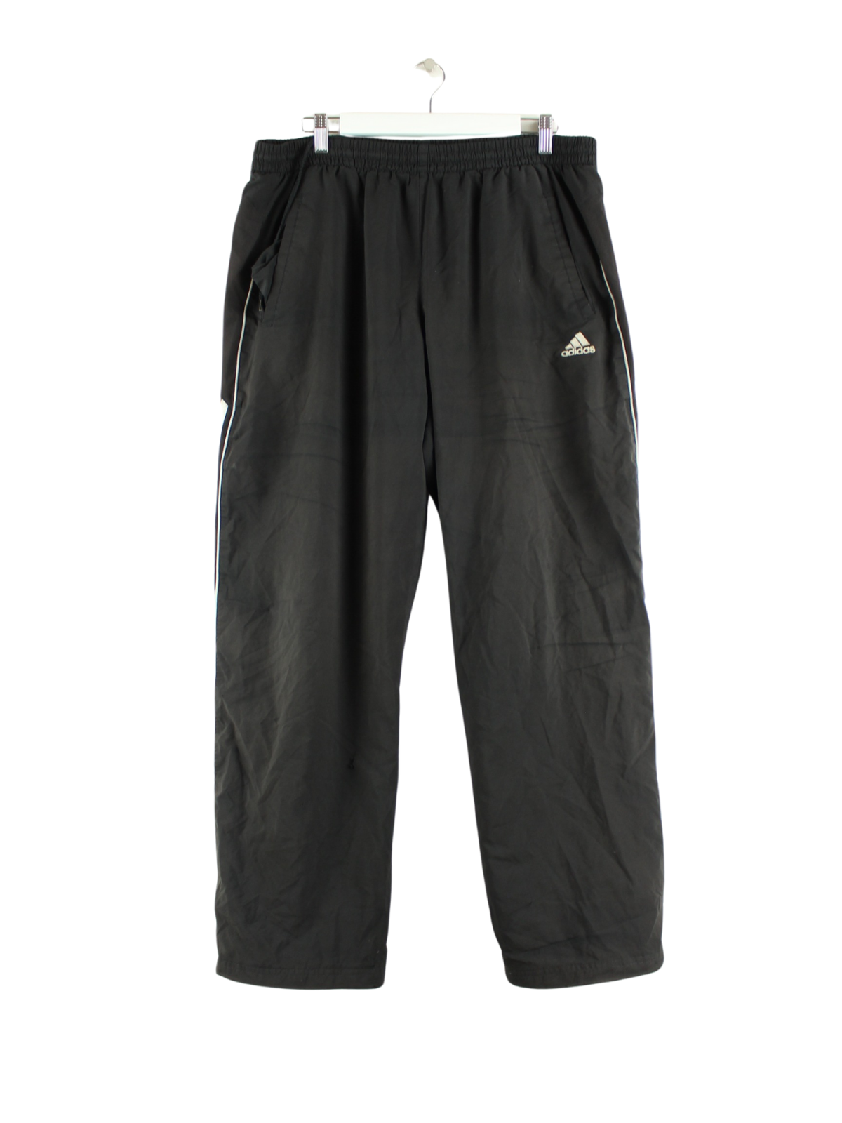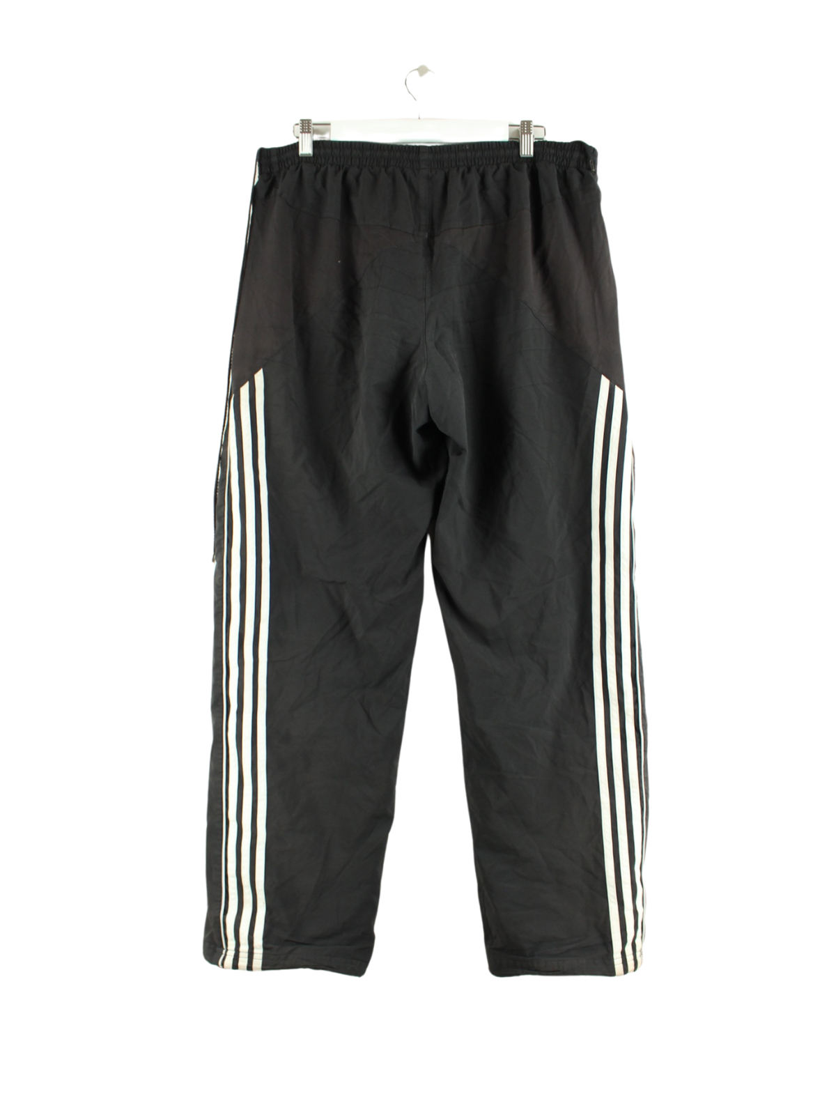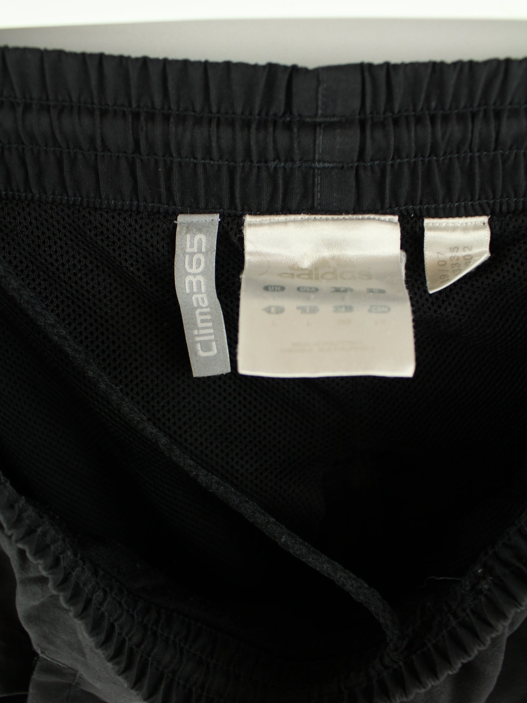 Black track pants by Adidas from the early 2000s in size L. They are made of synthetic material and are in good condition.